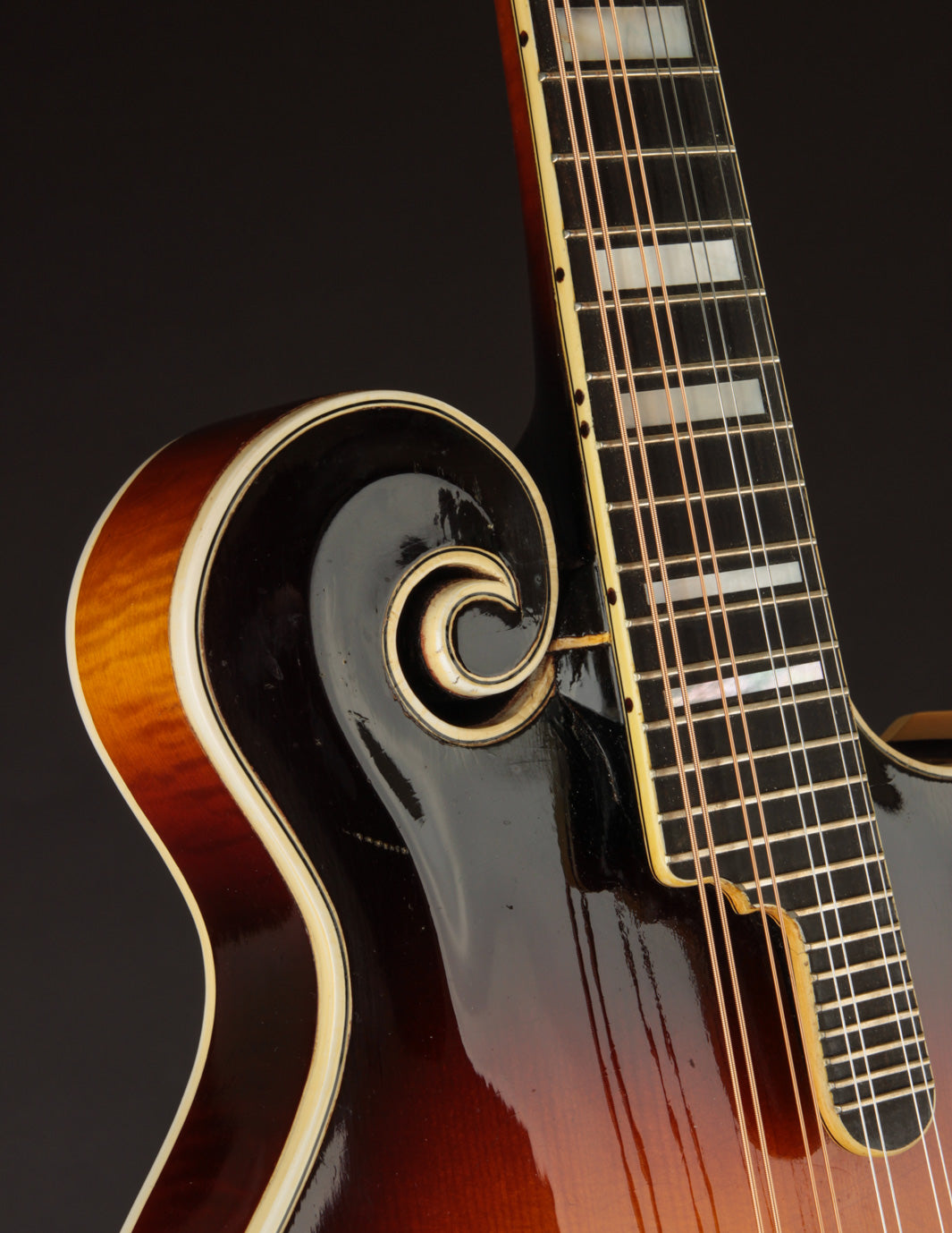 The condition is absolutely stunning. There is some light checking to the top, but that finish looks to be original. The back finish could be original as well, or may have had a light overspray. If the latter, it would have been decades ago, and likely at Gibson. In any case, the only confirmed work done has been a recent, professional neck reset and period-correct refret. To be sure, the mandolin sets up very nicely and plays very comfortably. Fans of a little wider neck will appreciate the 1 3/16" nut width, which allows a touch more room for the left hand fingers. To be sure, this one is an absolute blast to play!