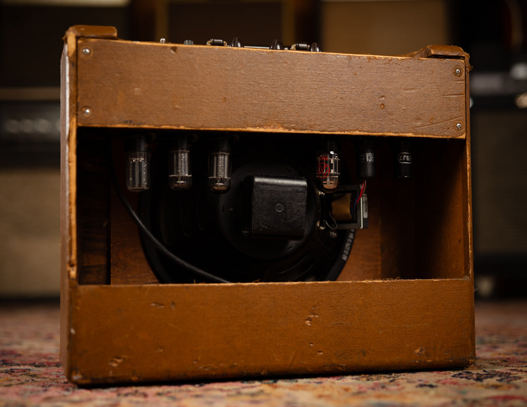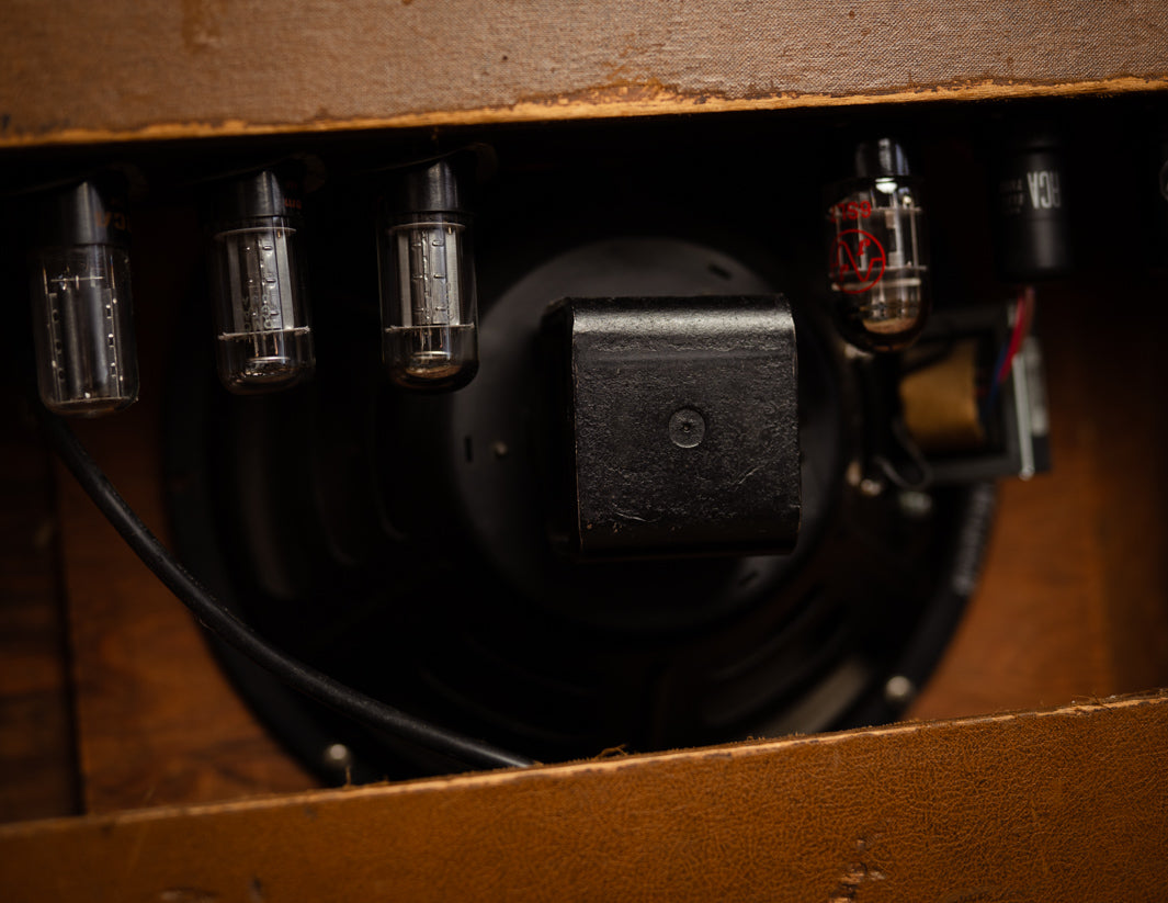 The amp was just serviced by our friend Stan Day, who swapped out a couple of tired preamp tubes and gave it typical vintage TLC. It's loaded with a vintage Jensen P12Q from 1953 that sounds amazing.