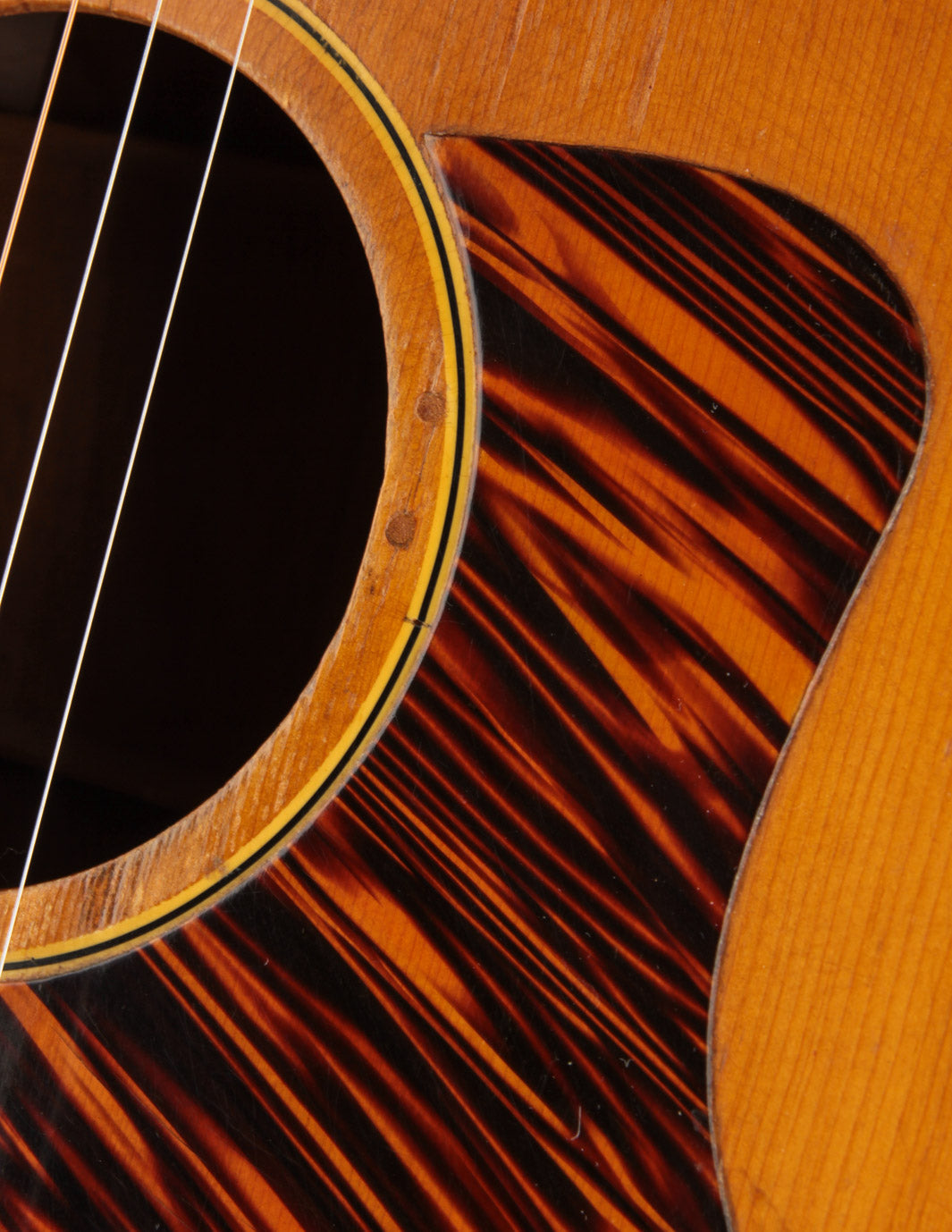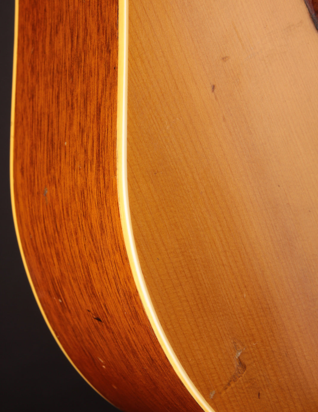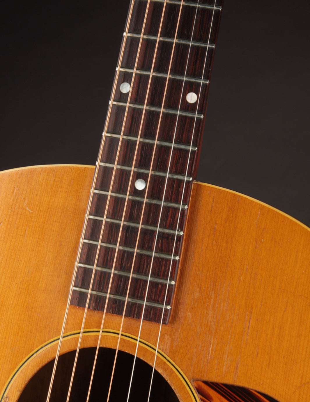 As one would expect, this 1941 Gibson J-35 is a lightweight instrument that responds immediately -- and it rewards a traditional flatpicker's attack with thick, well-defined projection from every inch of the fingerboard.