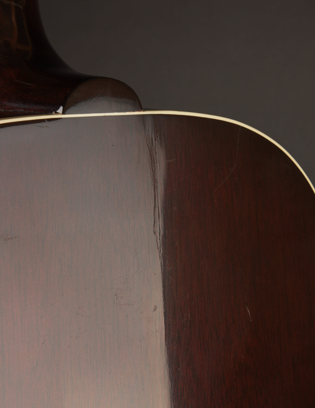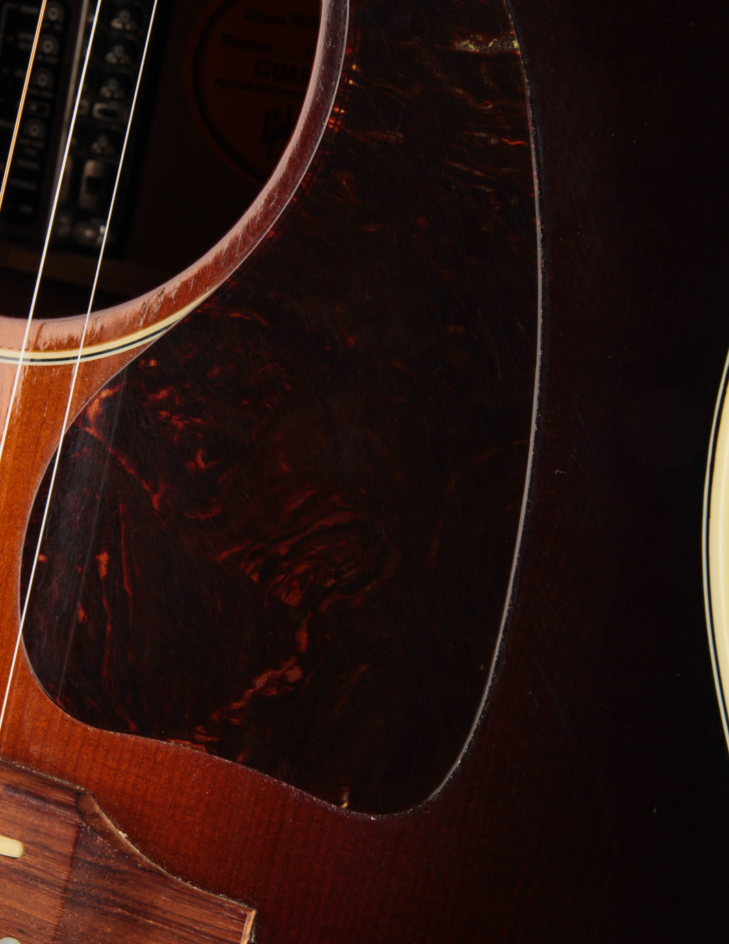 Condition: we rate this guitar in "very good" overall condition, meaning it bears the expected signs of handling and usage consistent with a pre-owned instrument. The top shows light pick scratches across its surface (most noticeable near the treble edge pf the pickguard). The back shows shirt button scratches, and a few minor dings. There's also a small repaired back crack near the bass side of the neck heel. Priced with its original hard case.