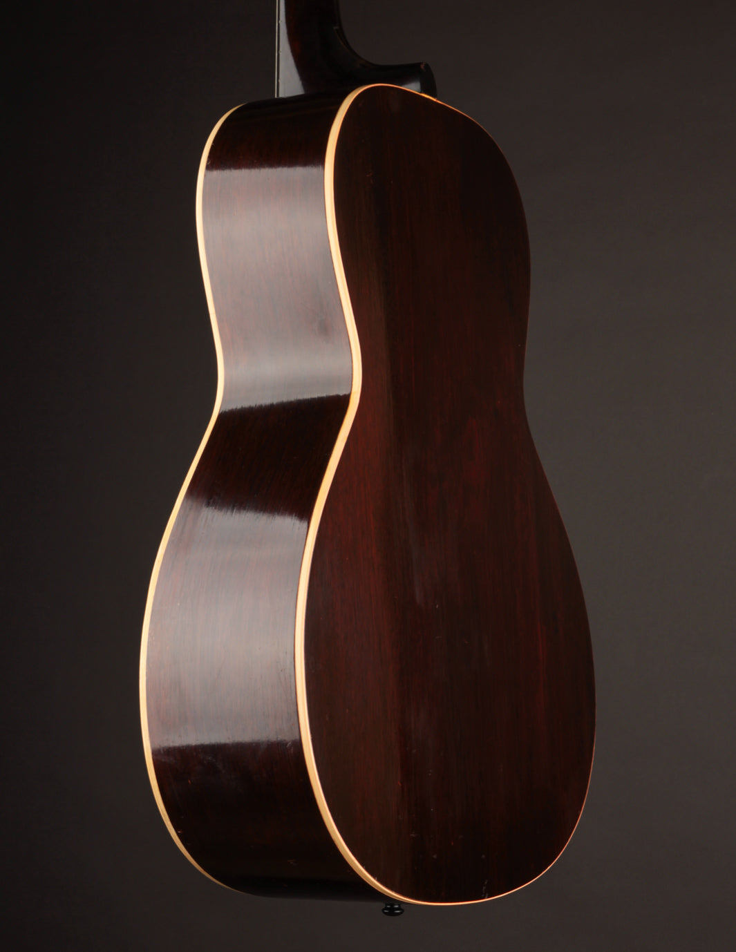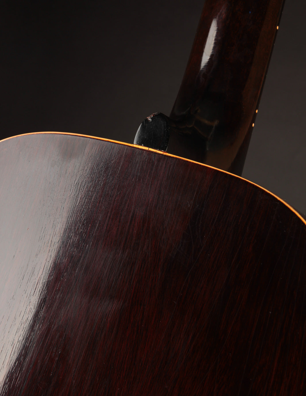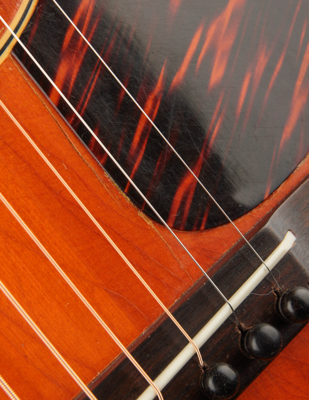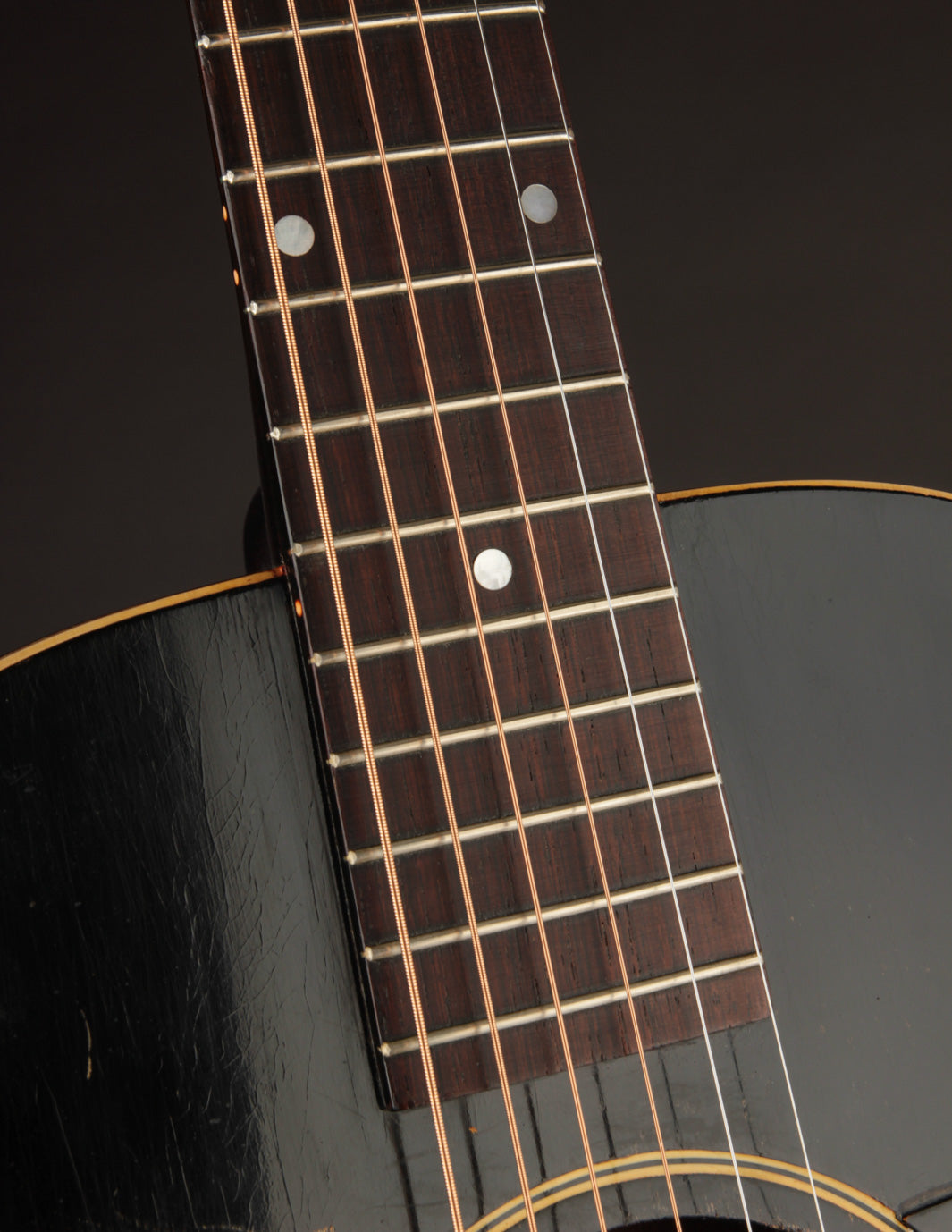 We'd call this guitar's overall vintage condition "very good." The aforementioned repaired top crack has localized finish touch up; and it's stable as can be. The saddle and tuner buttons have been replaced. The neck has likely been reset once in the past -- the work is clean, and the angle remains healthy. Price includes a Cedar Creek hardshell case (sporting its fair share of stickers).