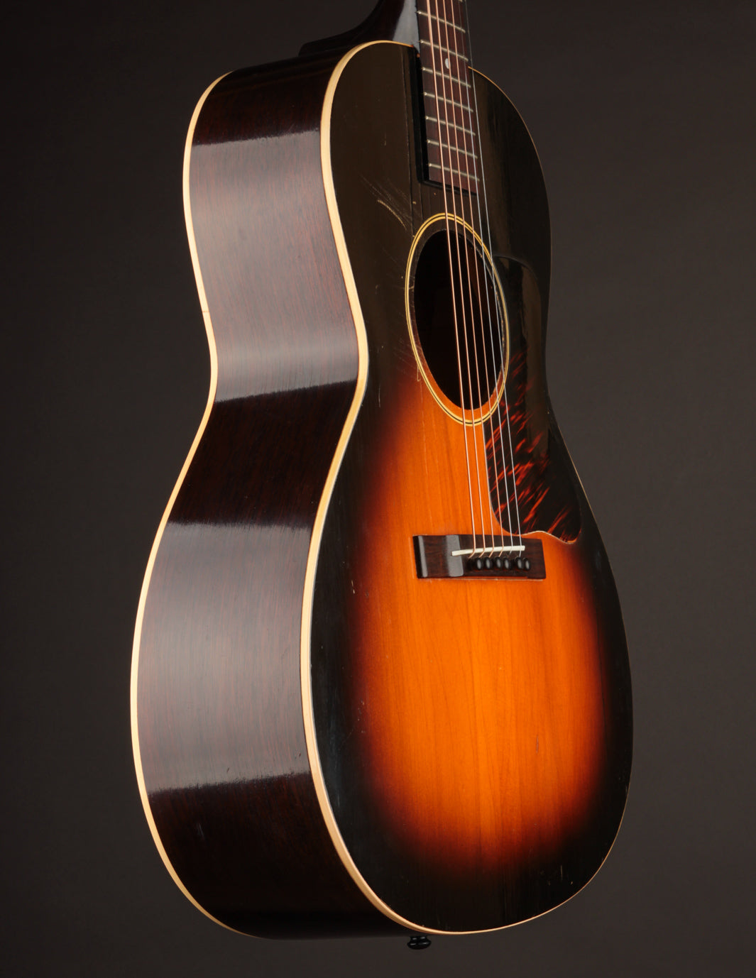 This c. 1936 Gibson L-00 is as nice as player-grade examples of the model get! And really, that description almost doesn't apply. The guitar has one repaired top crack, which is noticeable, but the rest of its structure is in lovely condition. It's an especially nice flatpicker's L-00, with a throaty, open growl, and a snappy high end -- even with low action. If you've had a 30's L-00 in your sights, and you've been waiting for a great-sounding one with some minor blemishes to surface, give us a call before this one's gone!