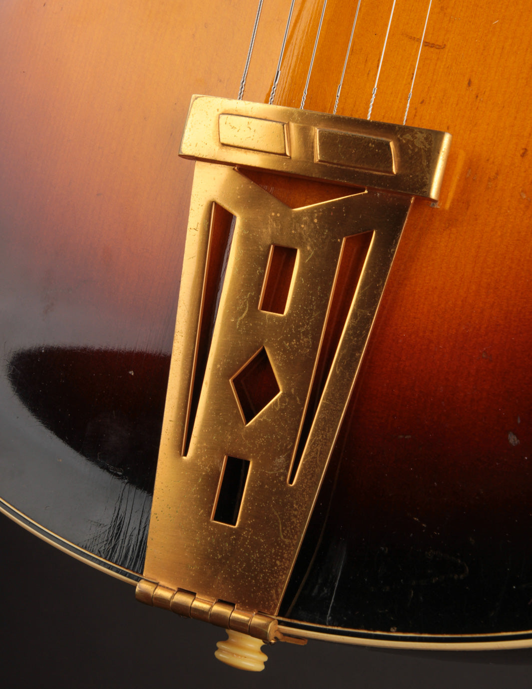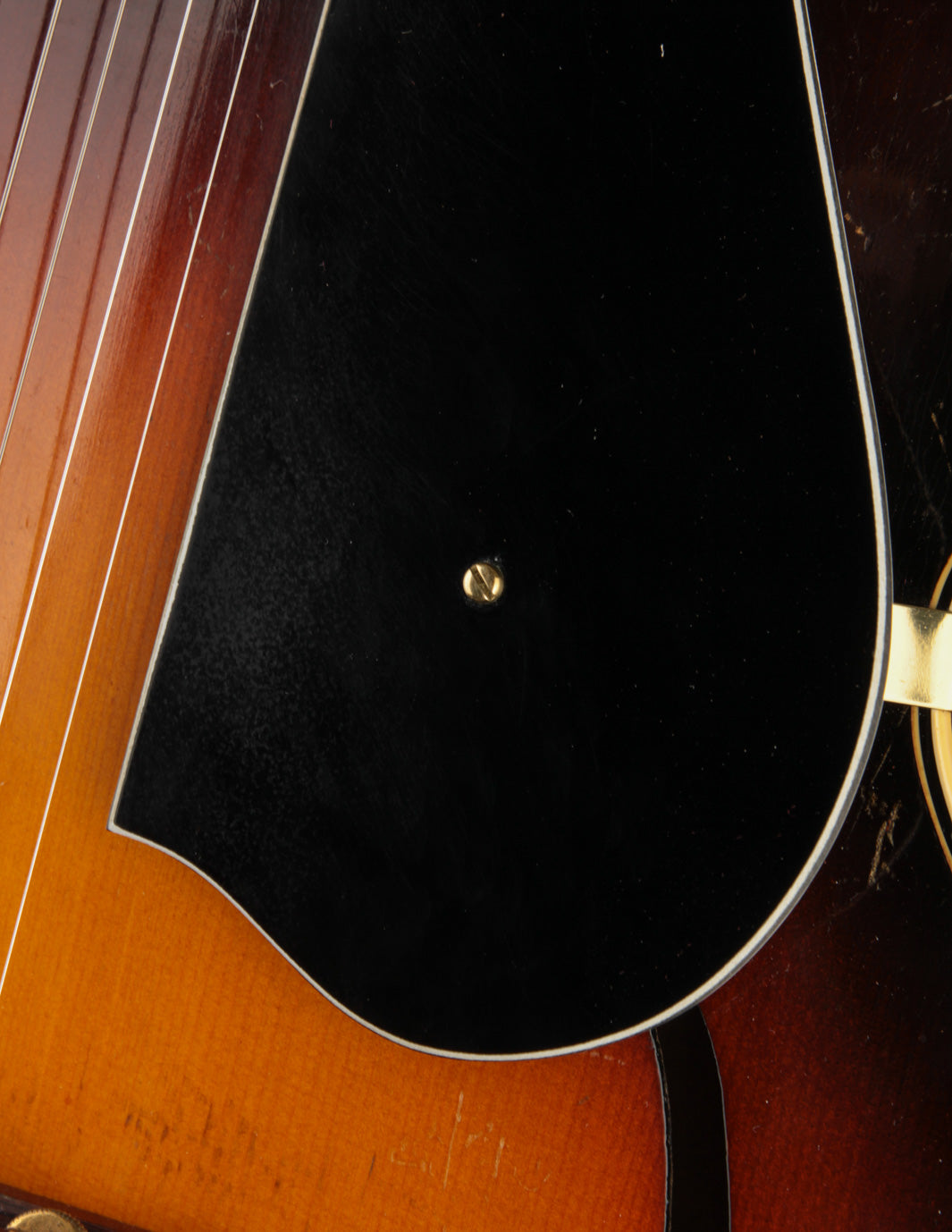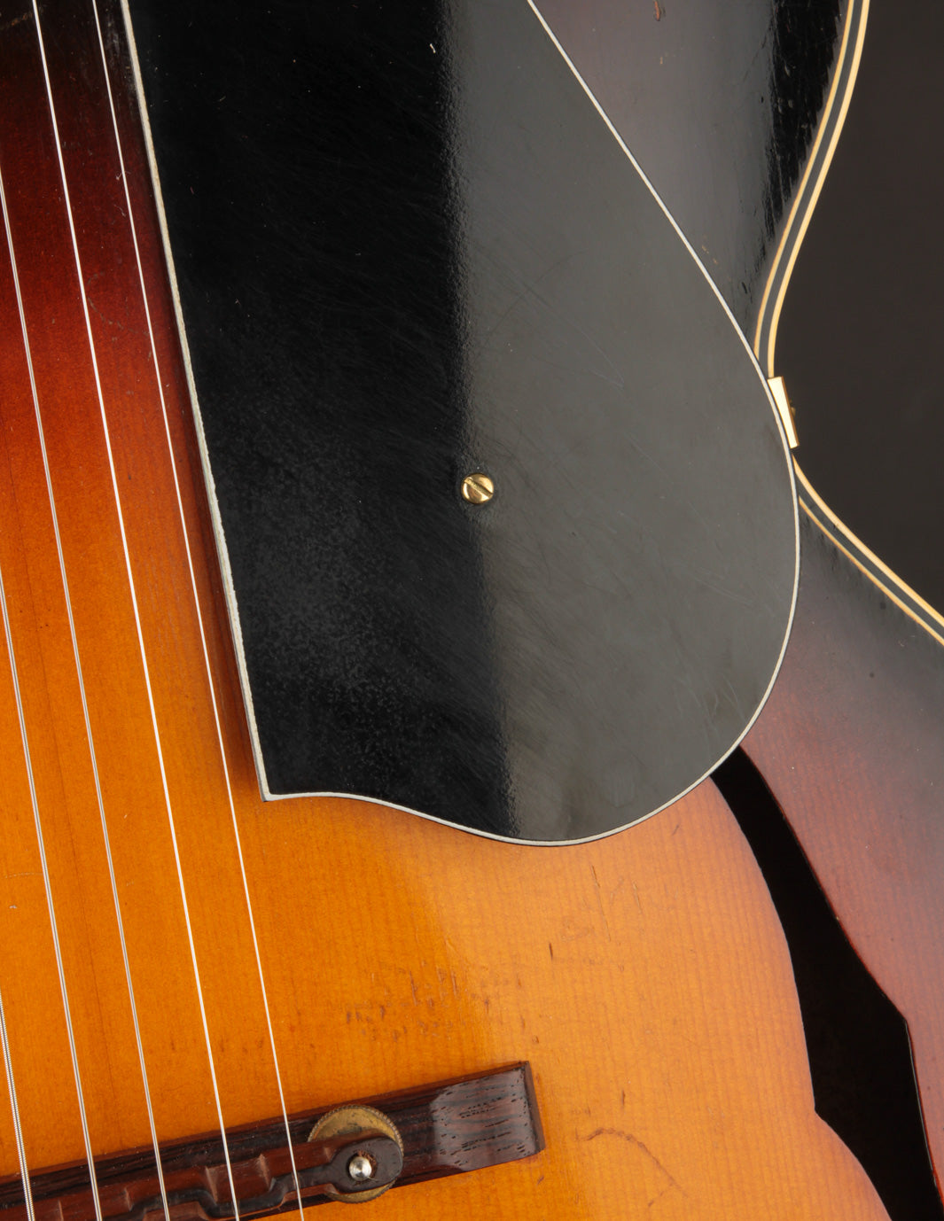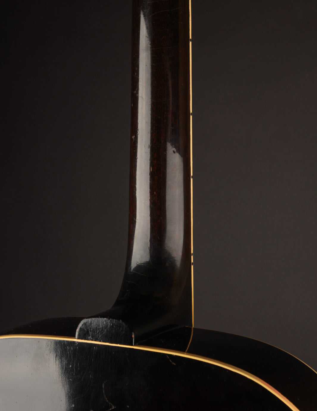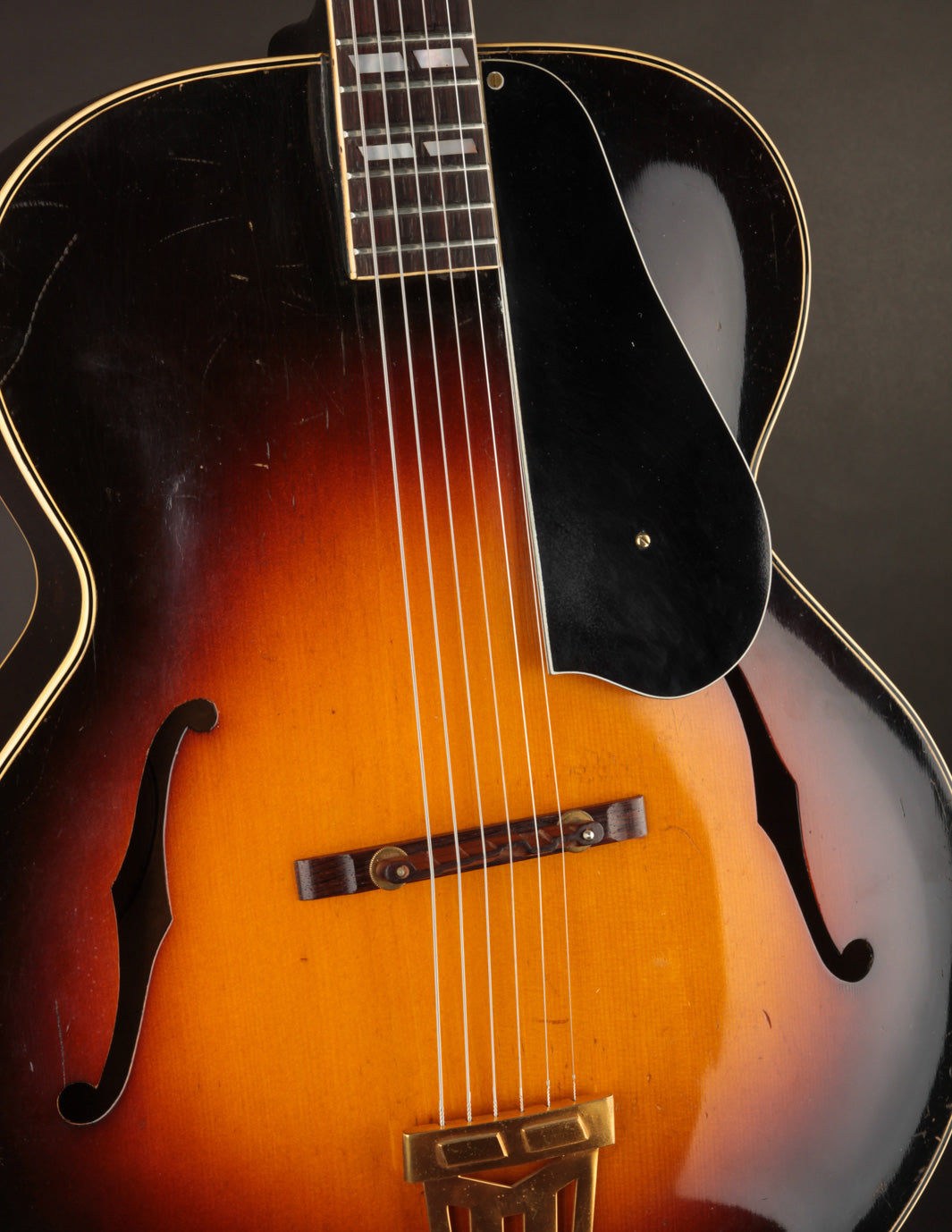 This Pre-War era Gibson shares lineage with the L-5 and is one of the premier acoustic archtops that Gibson was offering at the time. It was owned by local professional musician Joe Aprea as noted on the custom-made truss rod cover. This particular L-12 was built in the early part of 1939 and still exhibits the desirable X-bracing that was abandoned shortly thereafter in favor of parallel bracing.