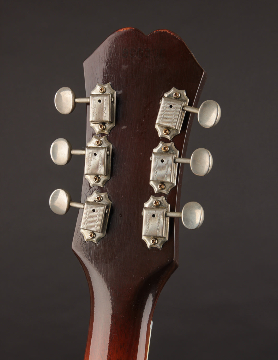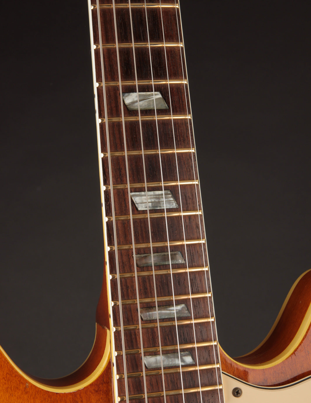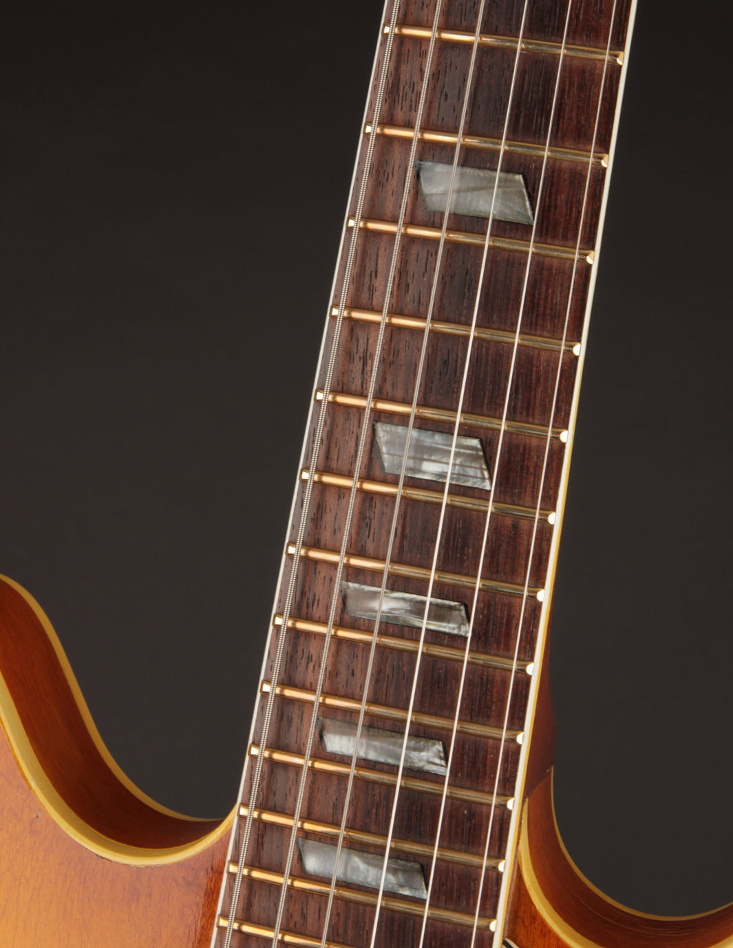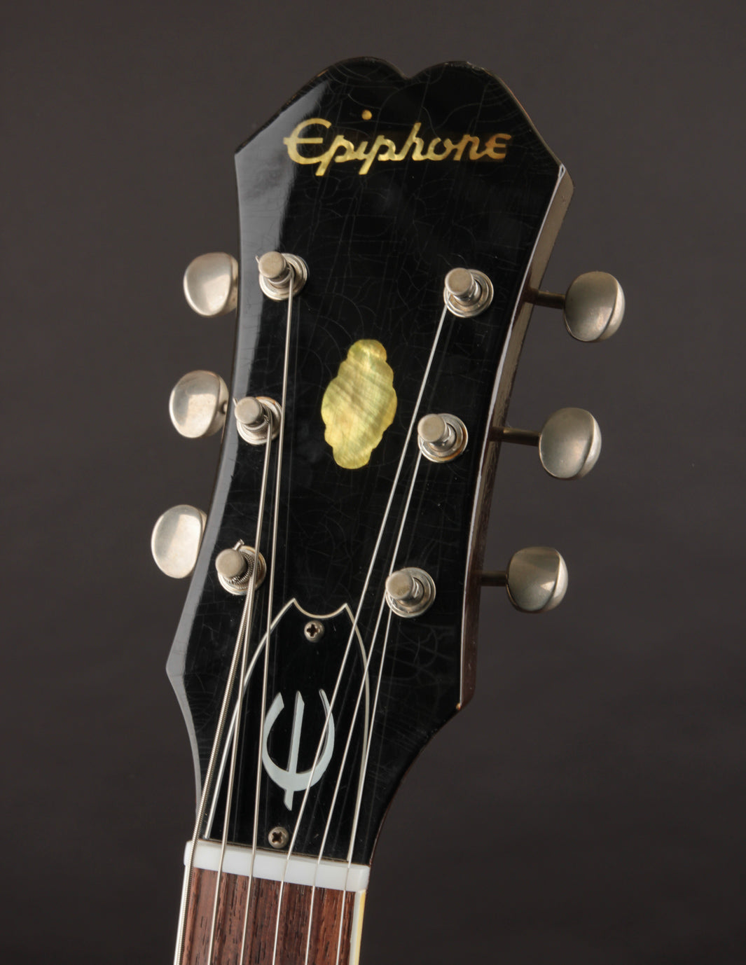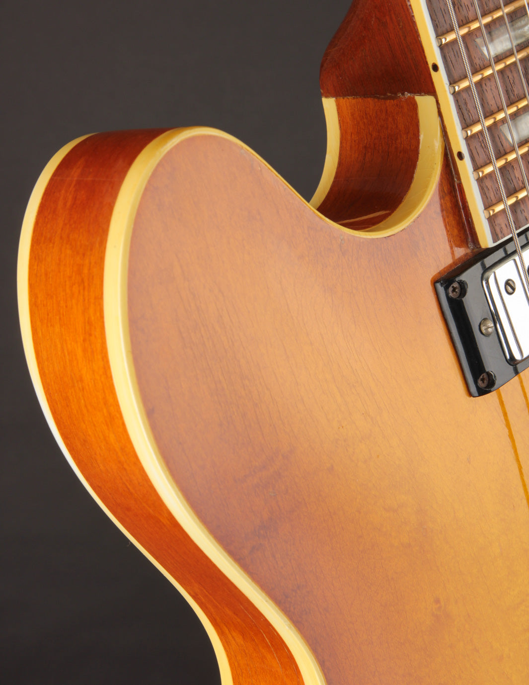 Epiphone's Royal Tan finish - a favorite of ours across all vintage finishes - shines brightly on this guitar. Faded out slightly over the years but still quite vibrant, it's a refreshing take on the darker sunburst variants that could be found on many Gibsons and Fenders from the same period.