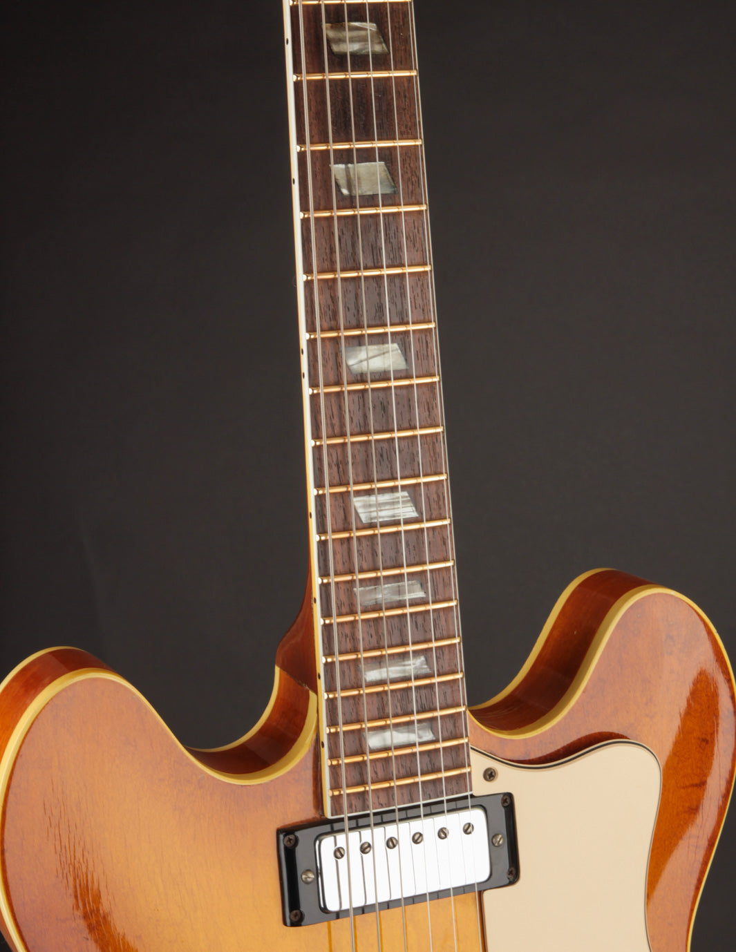 The original mini-humbuckers sound fantastic in this guitar, with a clear, focused tonality that has made these very popular with blues and jazz players alike. Leaner in the bass and mids, they excel into a clean amp, but also provide some nice sizzle in more of a rock-based context, effortlessly cutting through a band mix while still retaining that semi-hollow airiness.