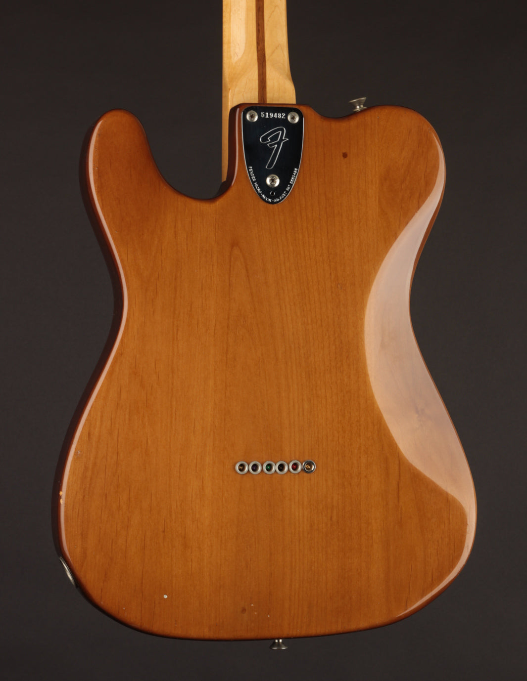 This first-year 1973 Fender Telecaster Deluxe is one of the finer versions of the 70s classic, featuring the newly adapted Walnut finish along with a pair of high output Seth Lover designed Wide Range humbucking pickups. The large Stratocaster-style headstock and rear-contoured body combine with a Telecaster shape and Gibson-esque electronics to yield a much different vibe than the guitars that came before it, yet there's no denying that it's very much a Telecaster. The string-through hardtail bridge, Alder body, and Maple neck are in keeping with the core of the original T design, but those pickups bring a different energy and are certainly more rock-leaning than the single coils that outfit the traditional model.