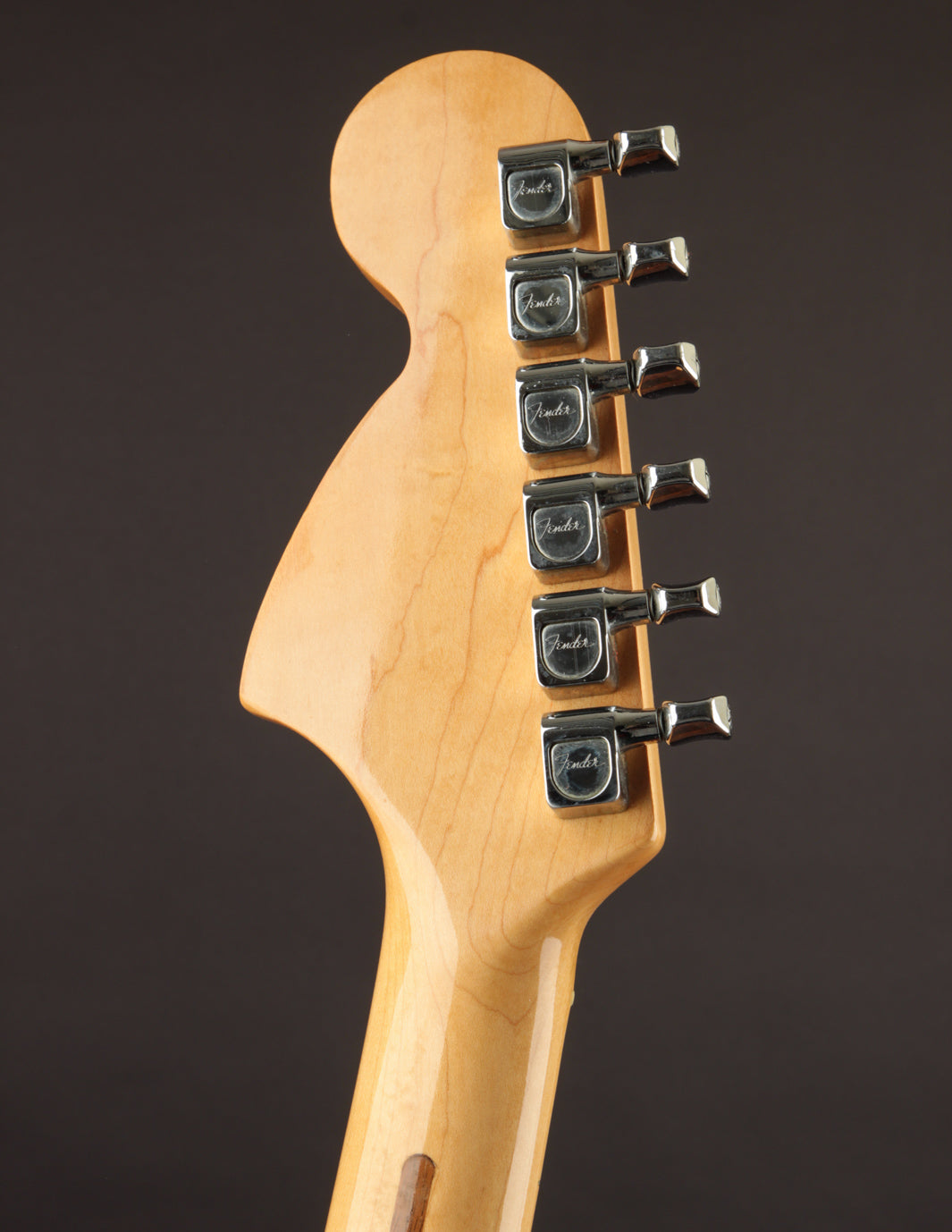 This guitar has survived the mod-heavy 70s and 80s without so much as string changing, which is a rare feat in and of itself! Completely stock, from the Fender branded Schaller tuners to the pickups and wiring, down to the large pickguard and amplifier knobs. The poly finish has aged quite gracefully, with just minor signs of handling and play wear throughout. The pickups have loads of chime with great fatness that surrounds each note - this guitar sounds fantastic with just a touch of gain or hair either from a light overdrive or an amp that's just starting to break up.