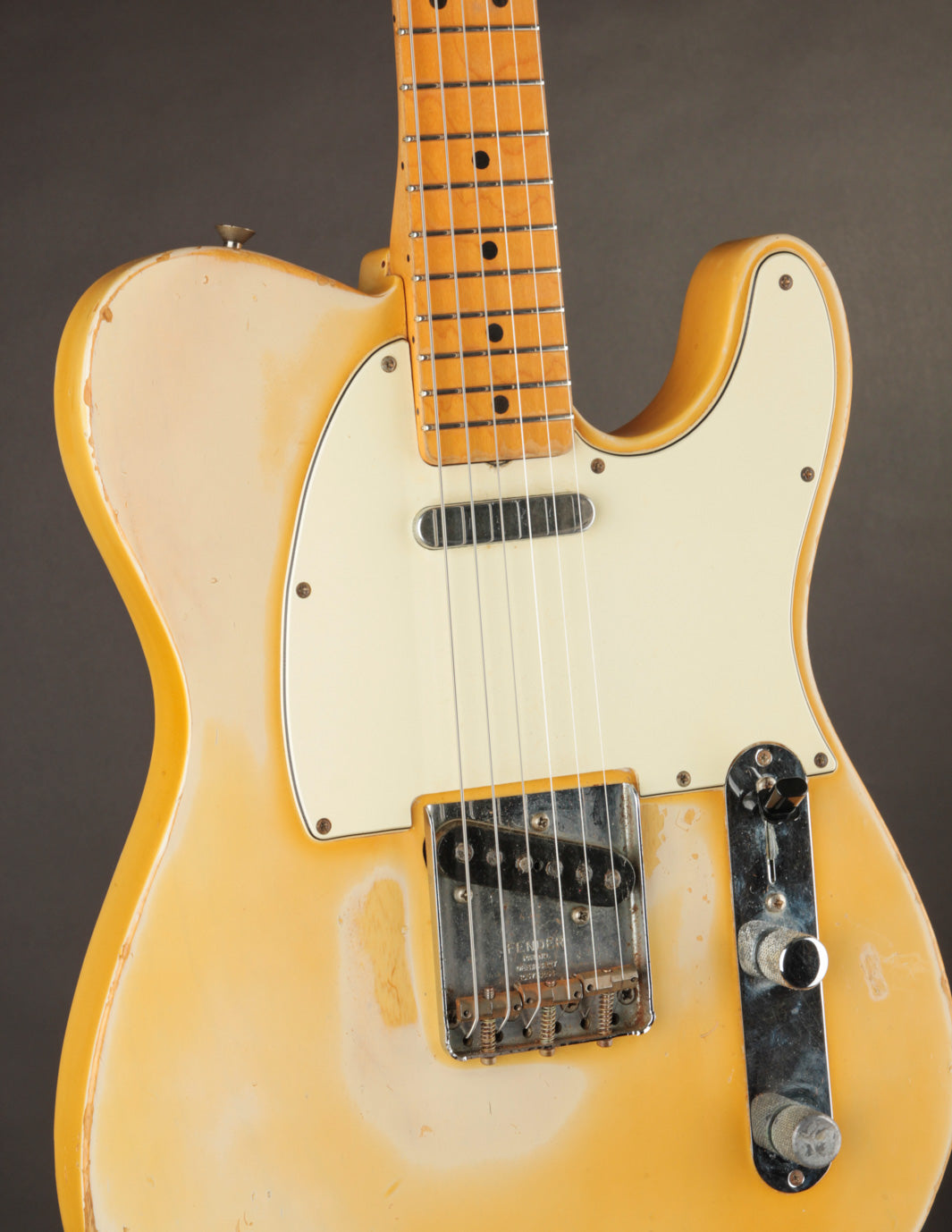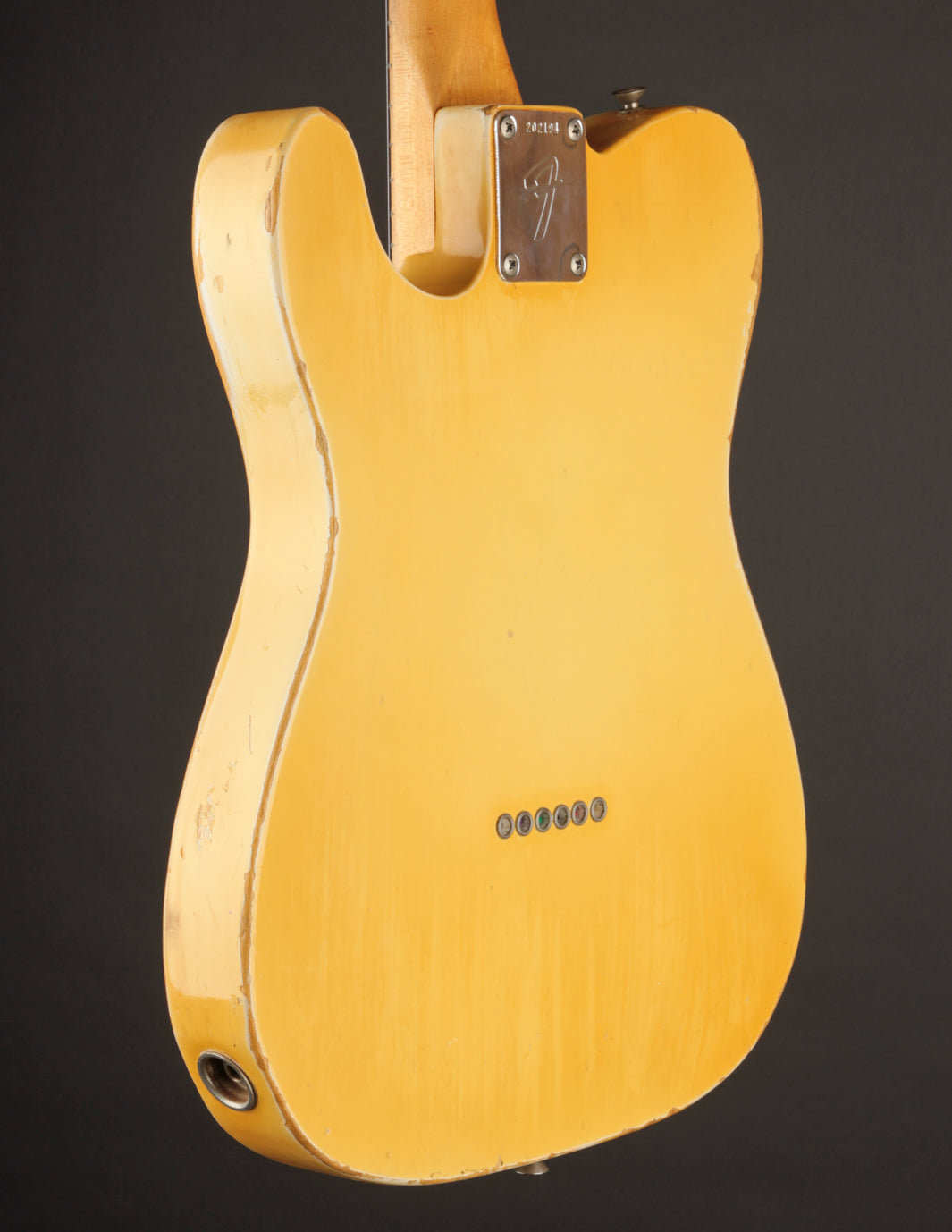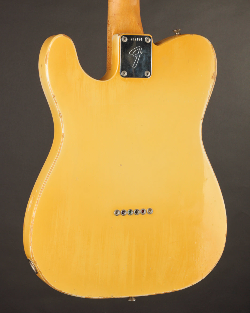 It seems like the folks in Fullerton found a floatway piece of Alder to finish this one off at the end of 1967; it's probably the lightest vintage Telecaster we've ever had in the shop.
