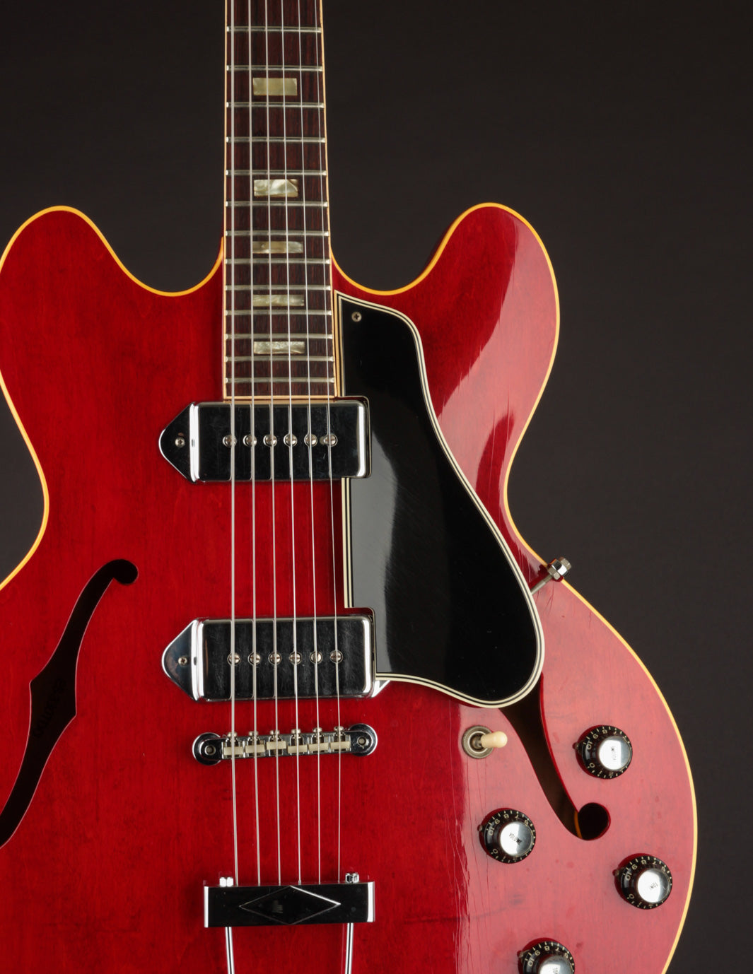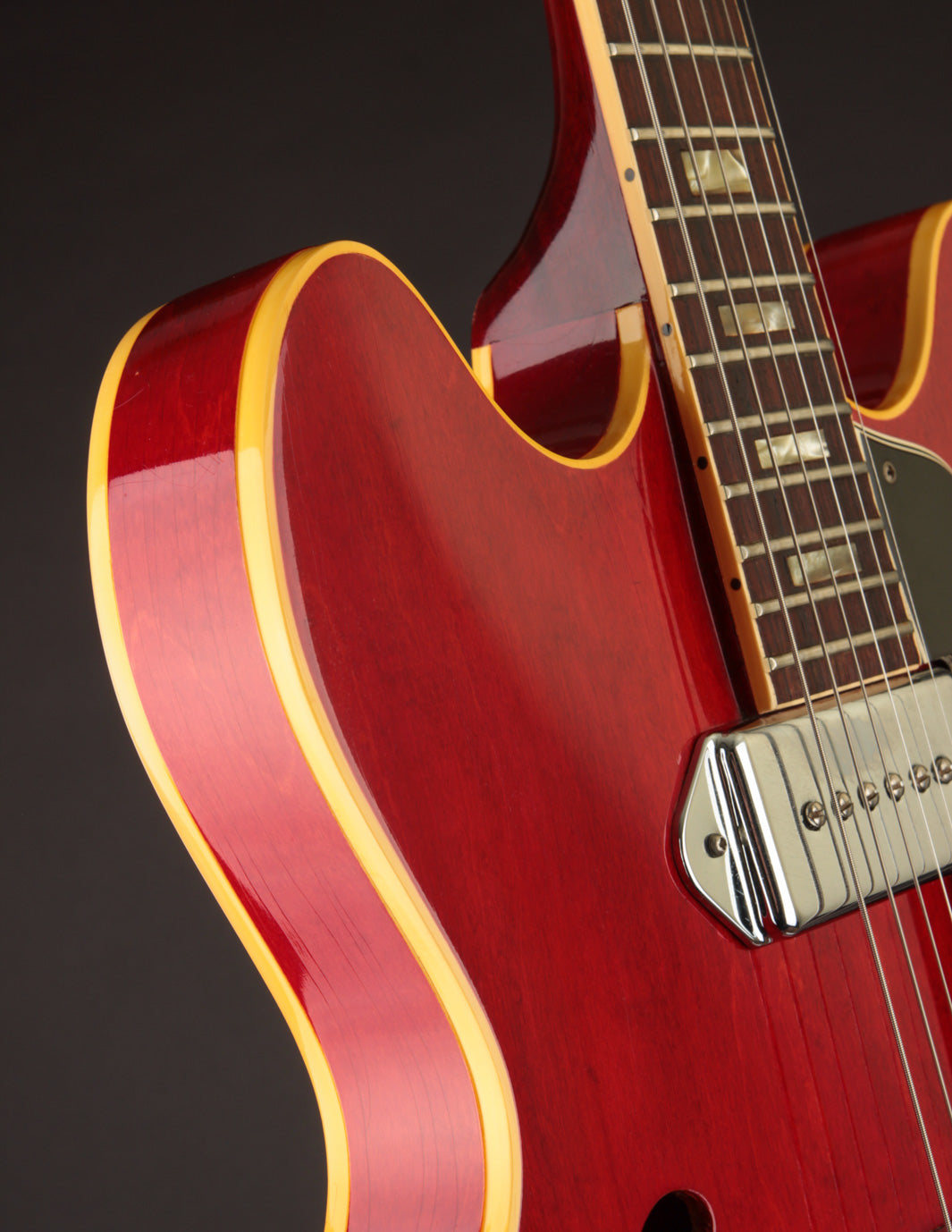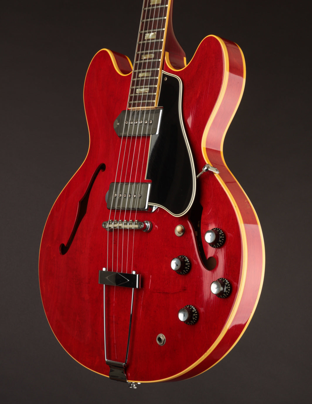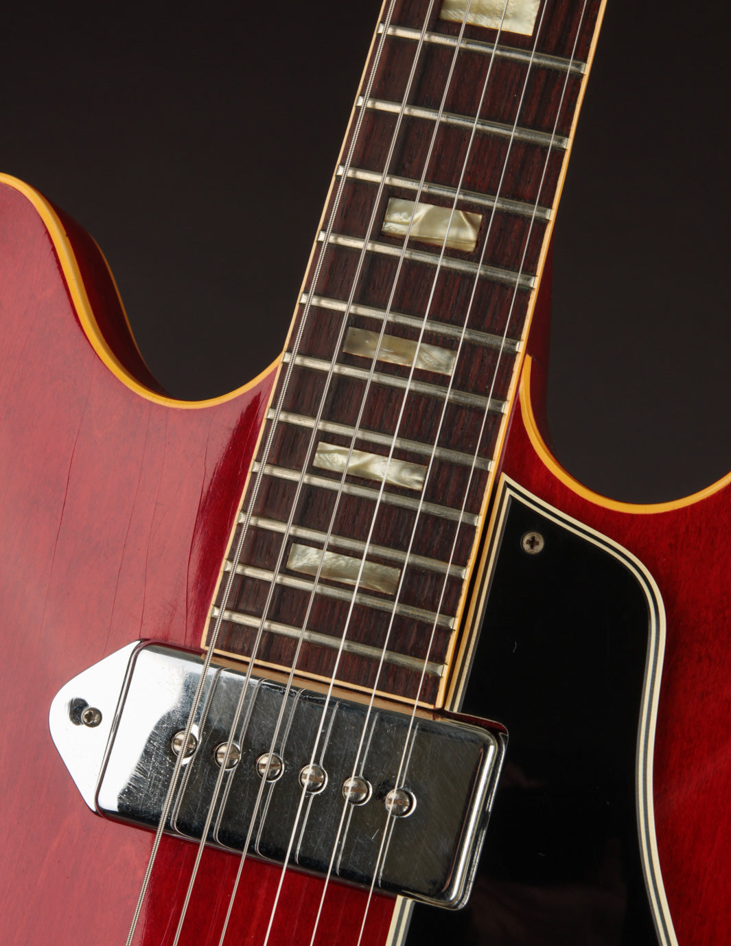 ES-330s are Jazz and Blues favorites for sure, but this ES-330 is a rock and roll guitar, plain and simple. These pickups sound insane - big, clear, and a little more aggressive sounding than your average 60s P90. Into a gained up amp, you might wonder why you still need your solidbody P90-loaded guitars. We're not kidding...