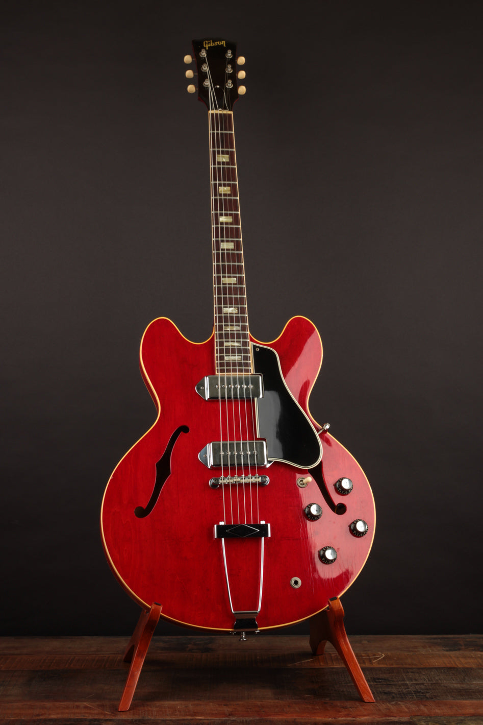 This 1966 Gibson ES-330TDC in its original Cherry finish is in full factory formation from headstock to endpin. It's the perfect representation of the classic mid 60s thinline hollowbody in every way.