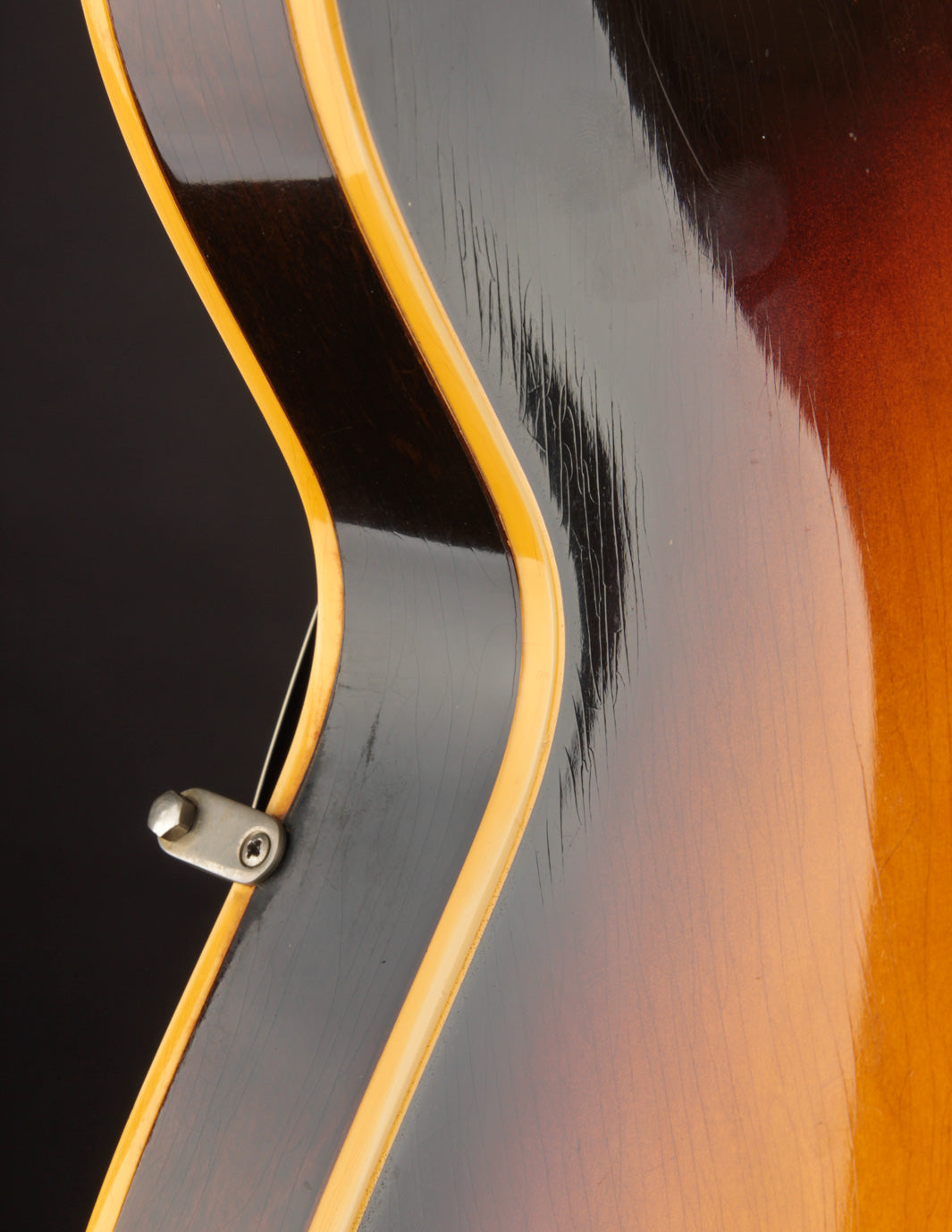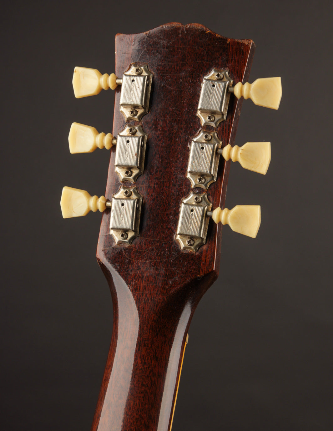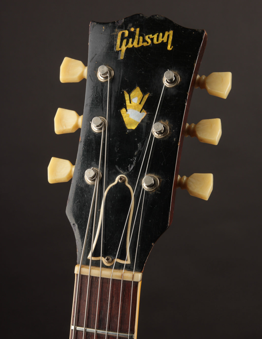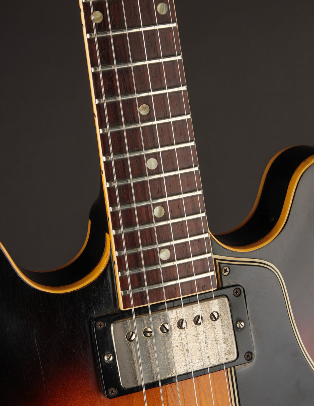 Likely completed towards the end of 1960, it represents the second iteration of the 'Dot Neck' ES. The fast-playing slim taper neck profile had been introduced earlier in the year, along with small but meaningful design changes to the plastics - the new "reflector" knobs and double-ring Kluson tuner buttons replaced the bonnet style knobs and single-ring tuner buttons, respectively. Still, the guitar is outfitted with the first-generation "long" pickguard that extends to the edge of the no-wire ABR-1 bridge - the pickguard would be shortened in 1961, effectively shedding the entirety of the '58-'60 aesthetic.