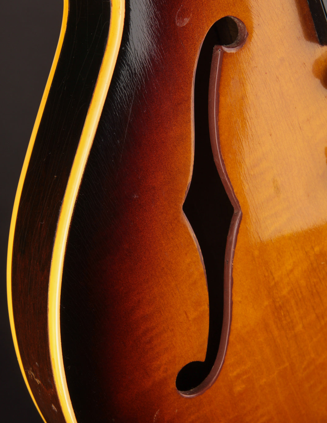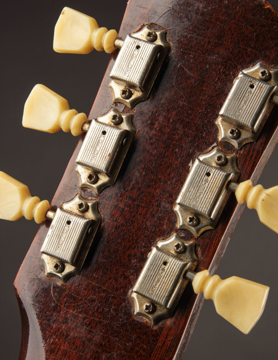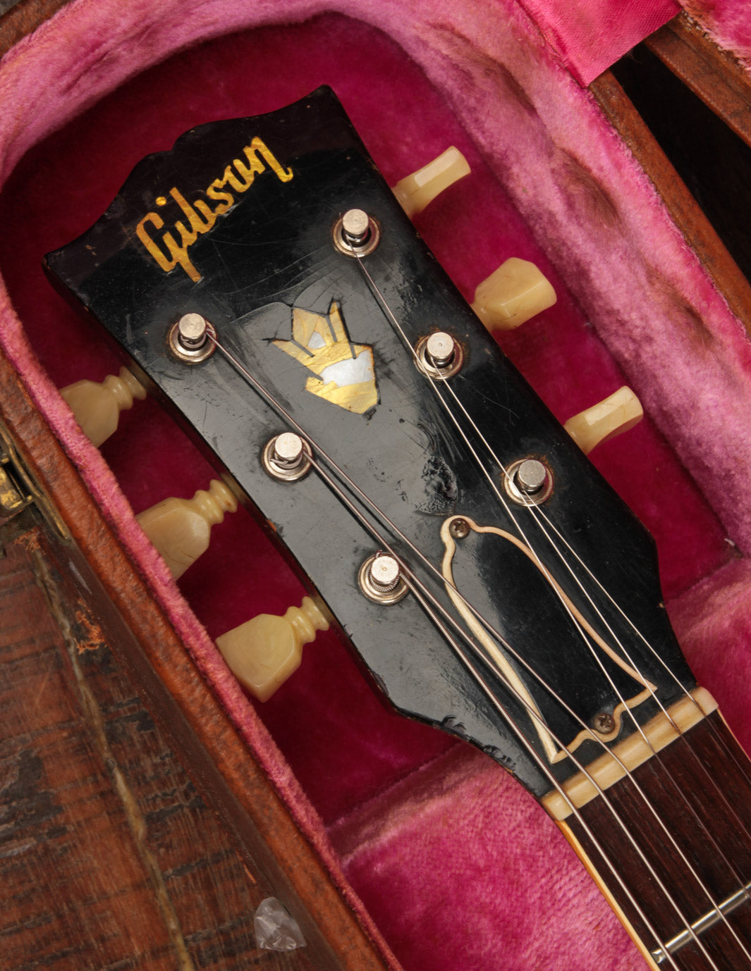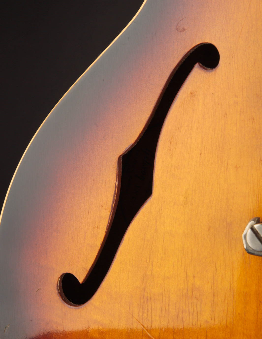 Likely completed towards the end of 1960, it represents the second iteration of the 'Dot Neck' ES. The fast-playing slim taper neck profile had been introduced earlier in the year, along with small but meaningful design changes to the plastics - the new "reflector" knobs and double-ring Kluson tuner buttons replaced the bonnet style knobs and single-ring tuner buttons, respectively. Still, the guitar is outfitted with the first-generation "long" pickguard that extends to the edge of the no-wire ABR-1 bridge - the pickguard would be shortened in 1961, effectively shedding the entirety of the '58-'60 aesthetic.