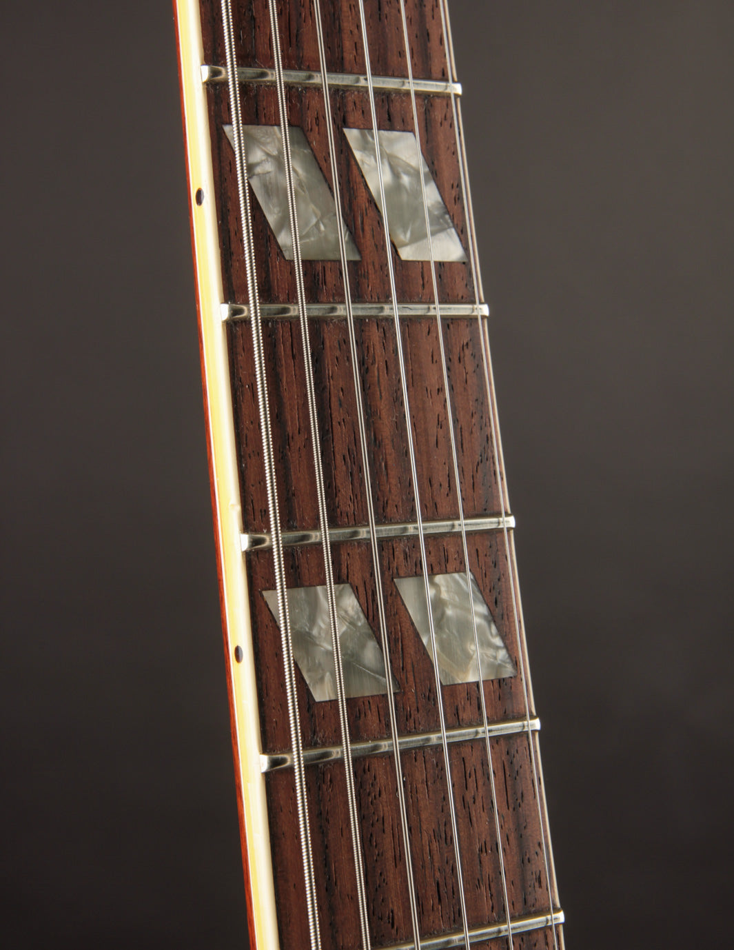 With the varitone circuit removed, this ES-345 weighs in at only 7lb 9oz - quite light for a Gibson semi-hollow! It's got a super comfortable Slim/Medium C neck that resembles the 62/63 carve to some degree, allowing for some speedy lead work and clean rhythm.