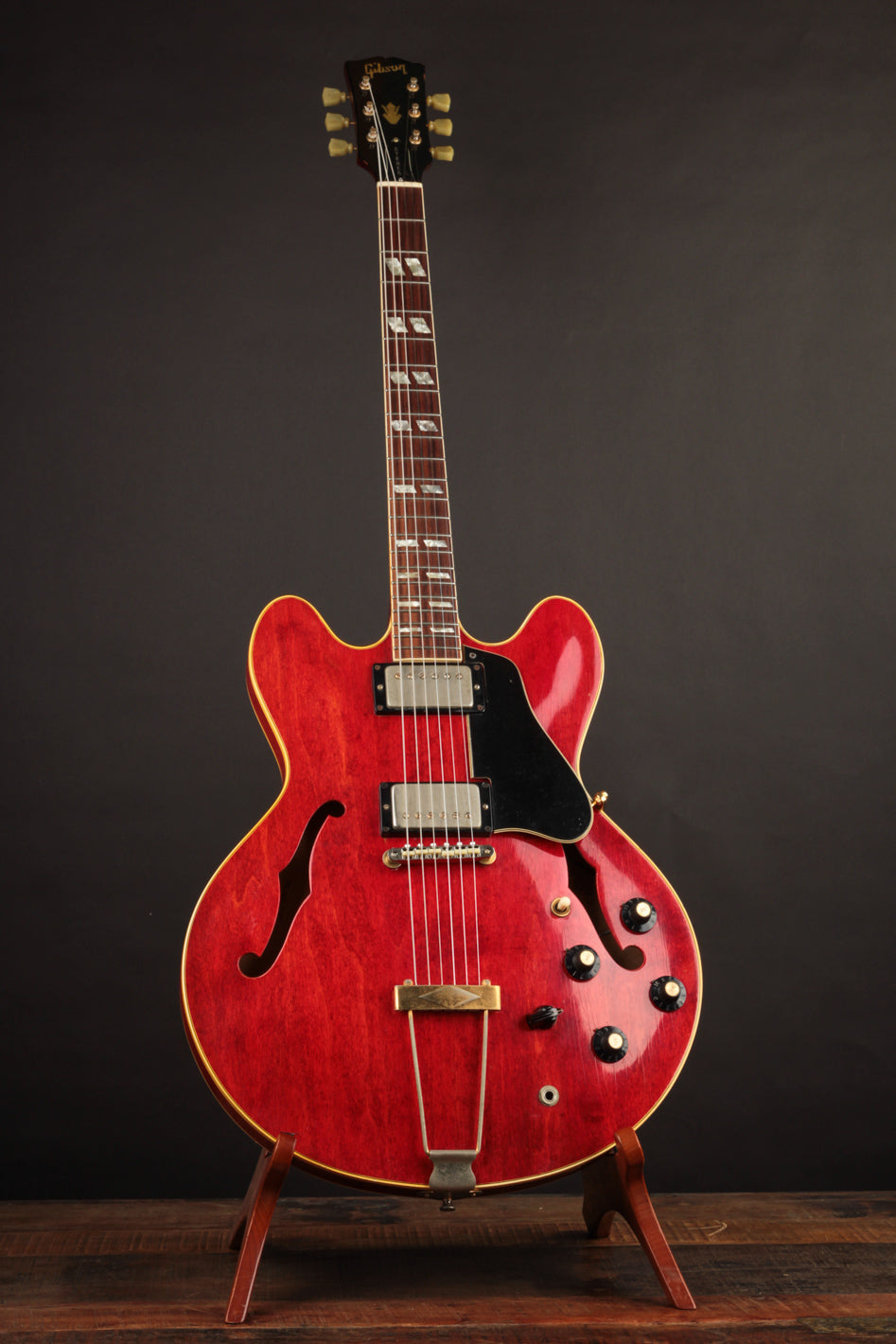 If the stereo wiring and varitone circuit aren't quite your bag, but you love the look of a dressed up ES-335, this is the one for you. This ES-345 was converted from its factory stereo configuration to a mono wiring setup, and along with an amazing refret by vintage guitar guru Holger Notzel, it delivers some serious playability.