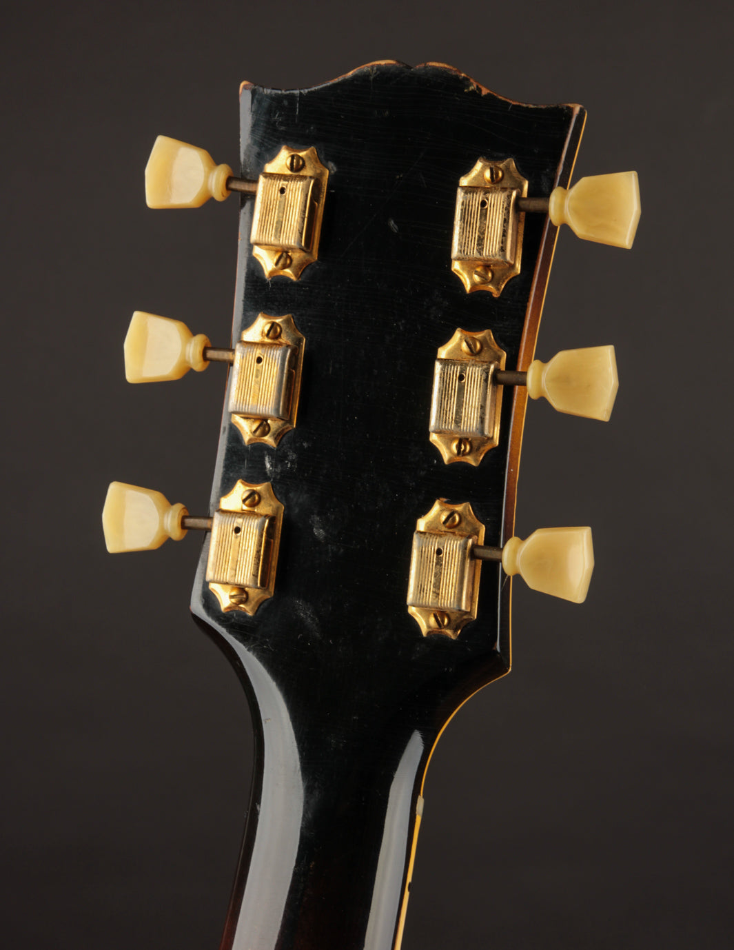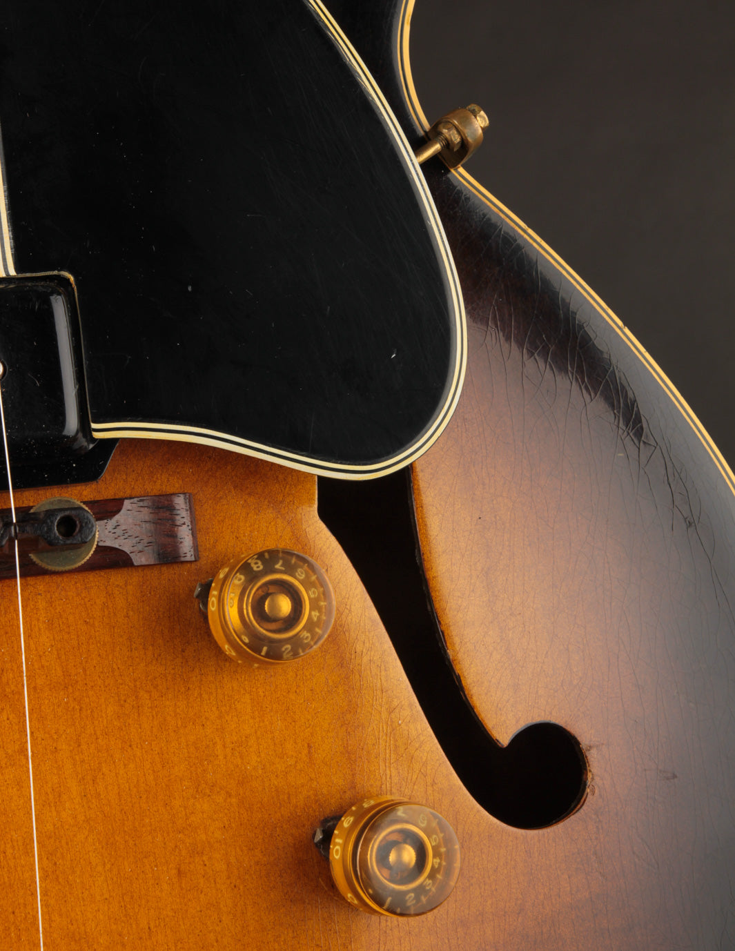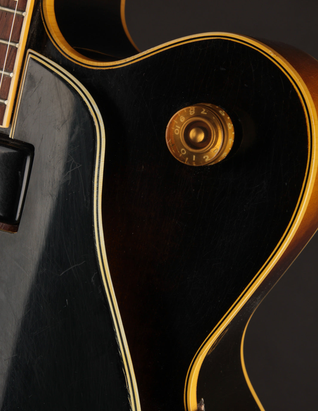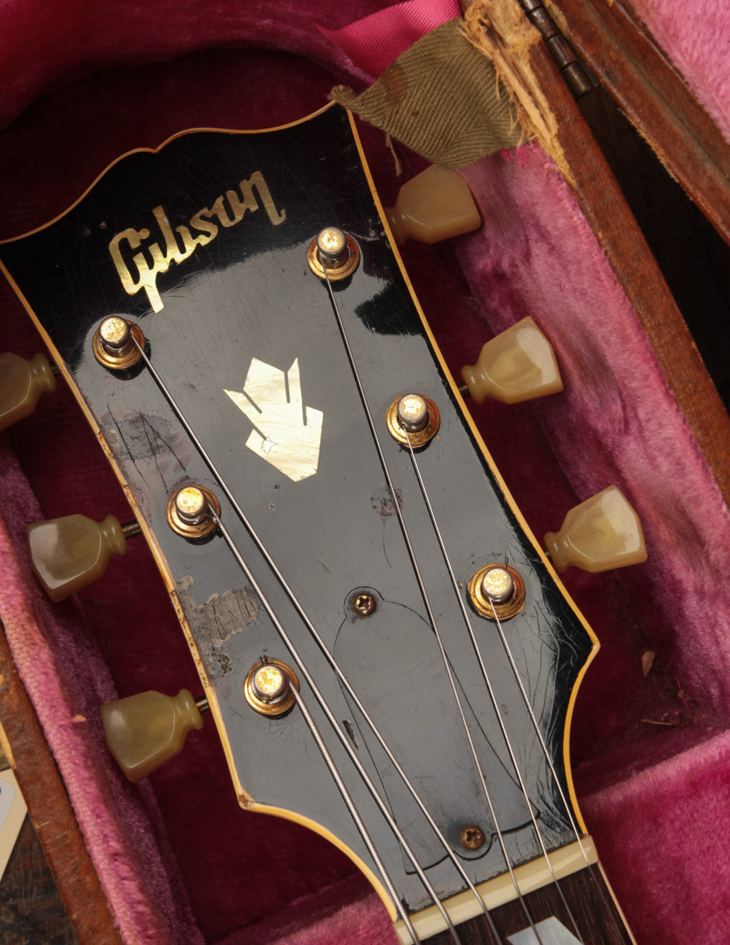 This is a great example of one of the last iterations of the dual-volume and master tone control arrangement, and offers a more simplified approach to blending and/or isolating the original P90 pickups to suit your preference. Well-played but also well-maintained, it's a supremely playable example that is lightweight and robust sounding. The original small frets were replaced with slightly larger fretwire some time ago, along with a new nut. The pickguard was also replaced while using the same mounting hardware. The tailpiece is a replacement, but the original rests inside the case.