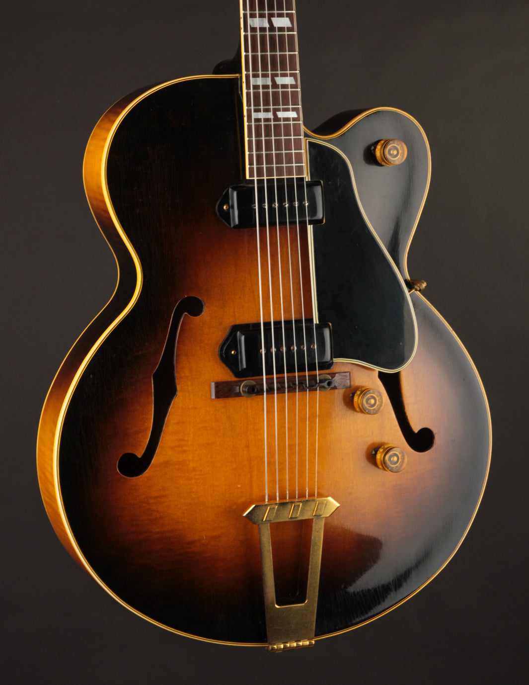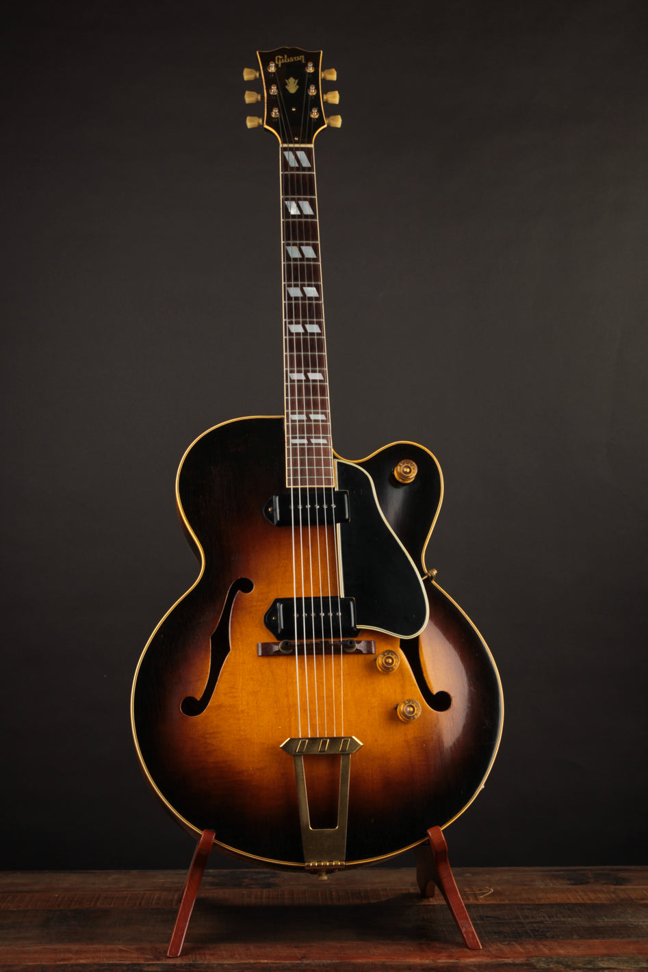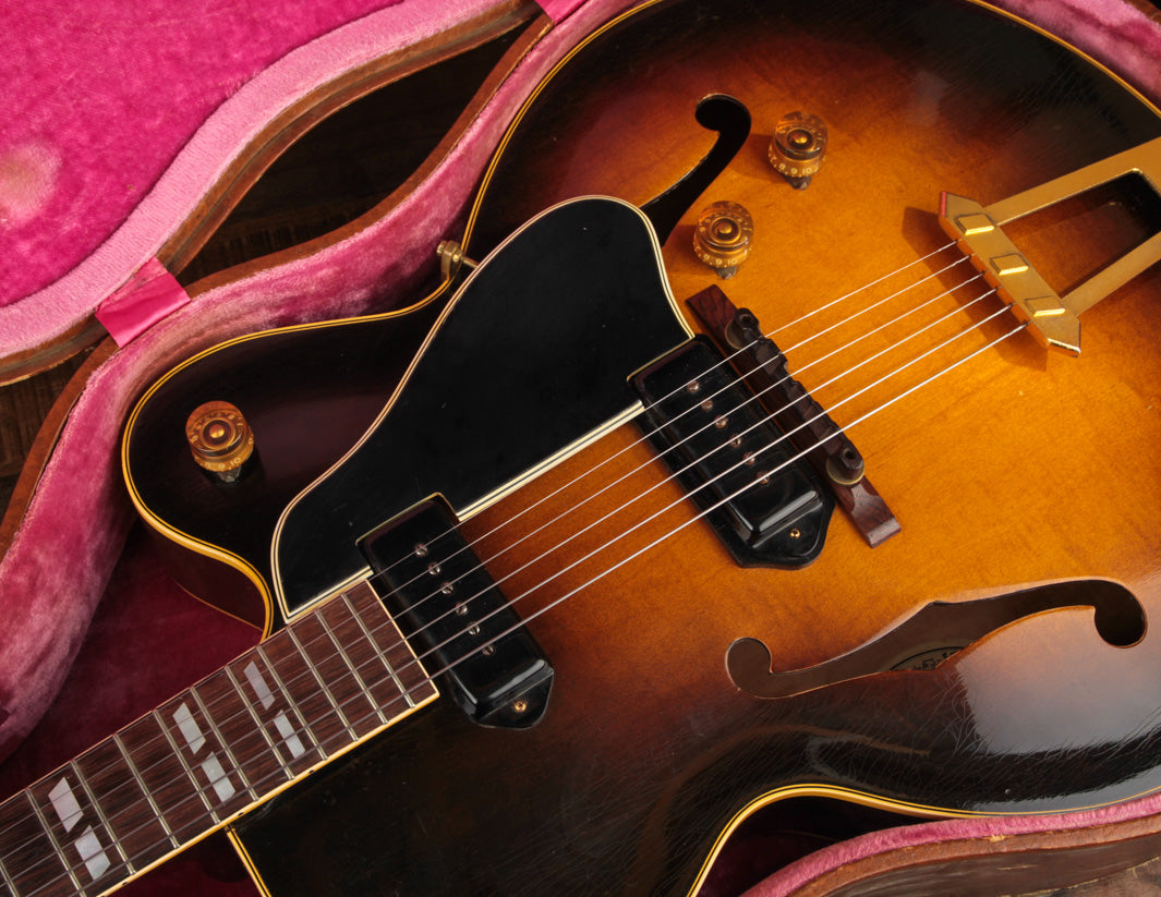 Fans of early blues and R&B will recognize this Golden Era Gibson hollowbody electric made famous by T Bone Walker, the much heralded ES-350. With its long scale, twin P90 pickups, and large maple laminate 3 1/2" deep body, the ES-350 represents the advancement of early Gibson electric hollowbodies in an amplified setting.