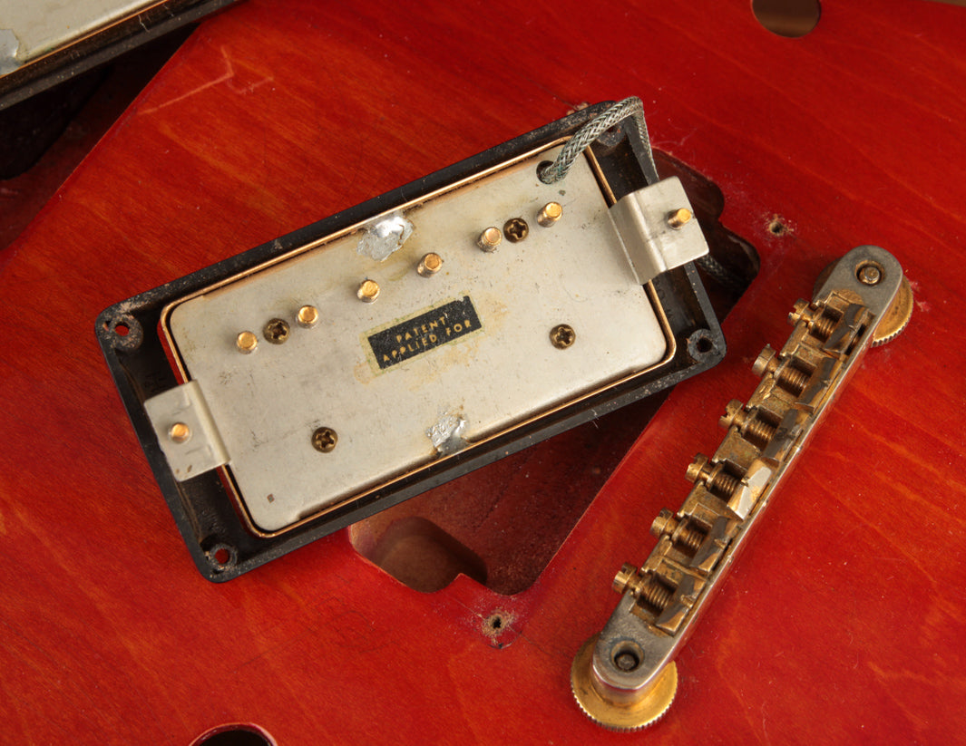 When it comes to originality, this rare beast is about as complete as it gets. The only changes made to the guitar are the pro refret and evidence of some light overspray on the back of the neck. There's a small fingerboard binding crack on the treble side that is stable. All hardware is original to the guitar, including the short seam stop bar tailpiece, no-wire ABR-1, PAFs, pots, switch, and tuners. Plastics are also original to the guitar. There is evidence of a minor stress fracture on the back of the headstock near the edge of the stinger, but it has been evaluated by our team and by Elderly at the time of the refret and has been confirmed as completely stable without any structural implications. Outside of some minor play and handling wear, it's a very clean guitar with a great vibe and other-worldly tone.
