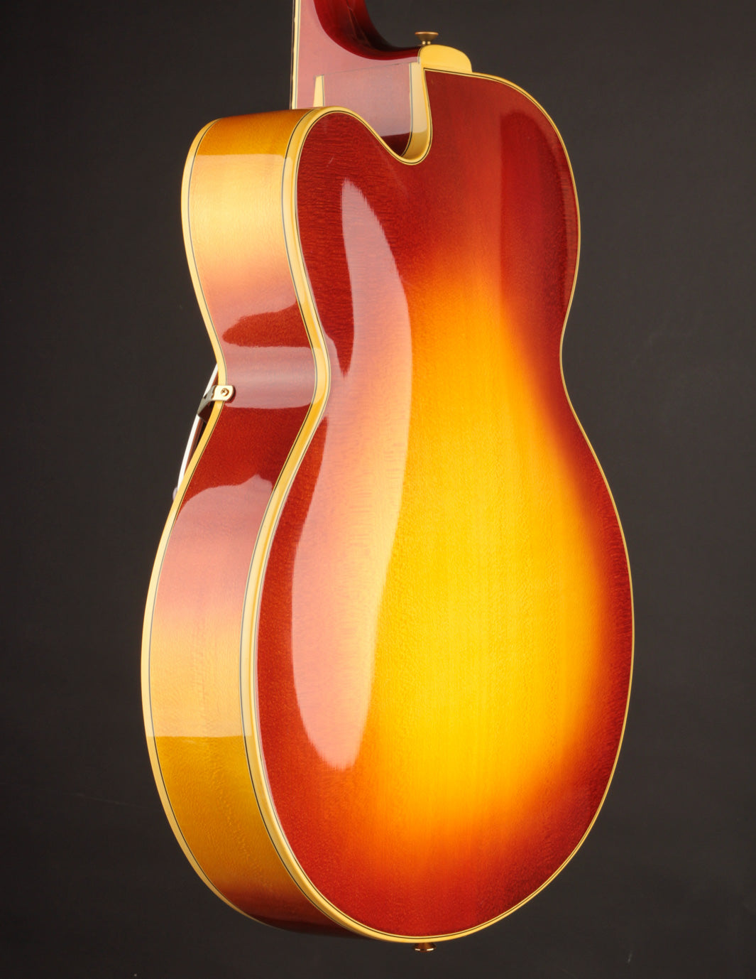 Select carved tonewoods like the silky Spruce top and quarter-sawn Maple work so well with the classic Cherry Sunburst finish against the dark Ebony fingerboard and bridge. With gold hardware and multi-ply binding throughout, it hits all of those great 'Custom' appointments with a distinguished flair.