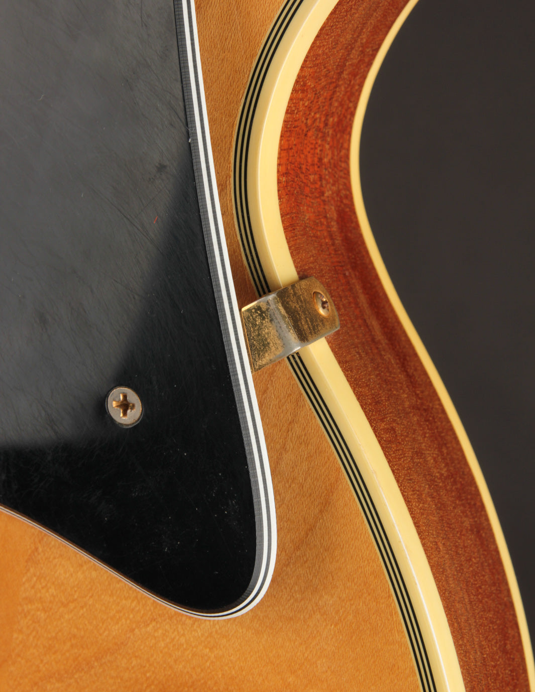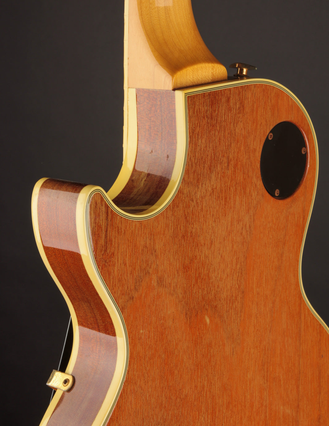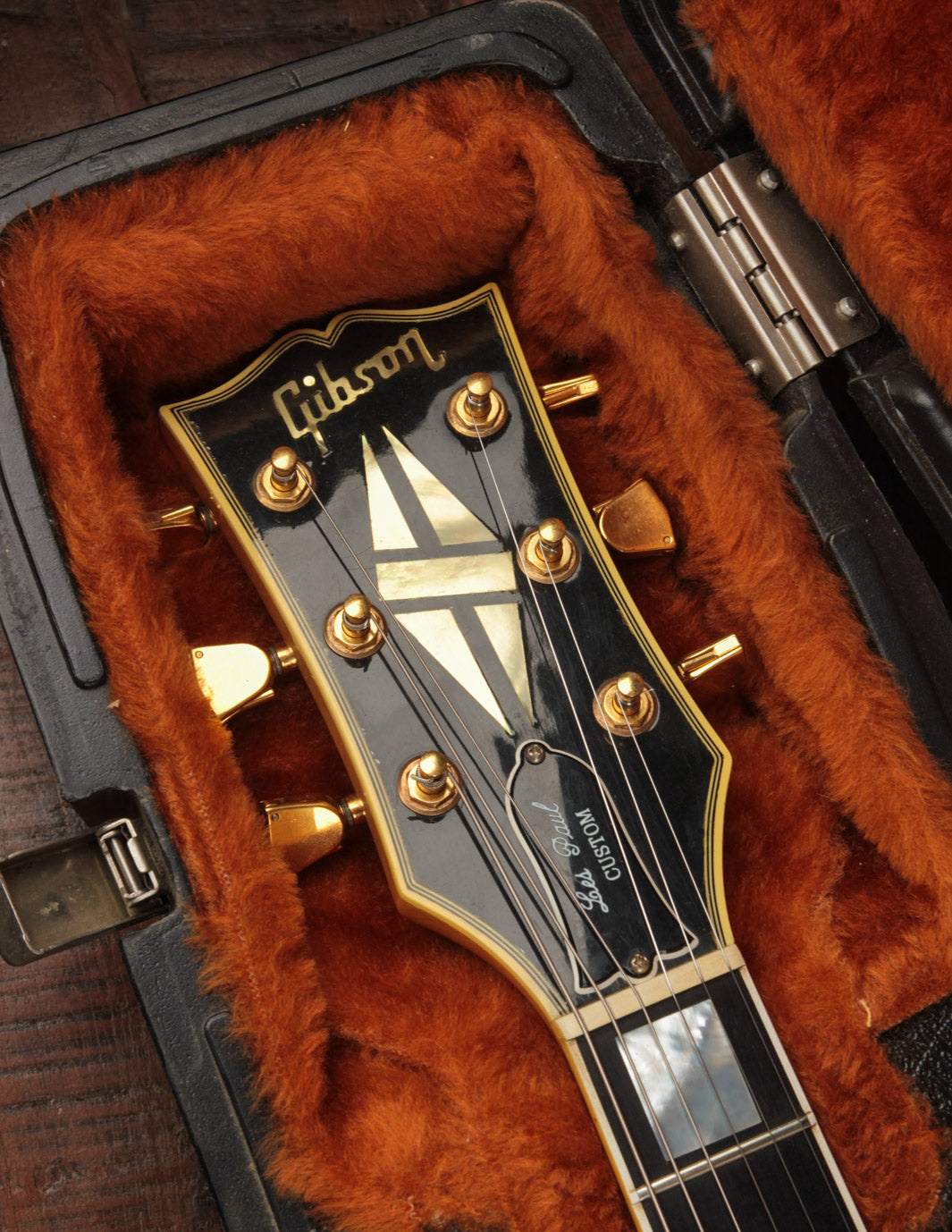 This guitar has survived the guitar modification boom of the 80s and 90s without much change beyond strings. The body is very clean with little signs of wear - just a few small nicks, dings, and scuffs commensurate with age. All of the original gold hardware has maintained its playing with only light patina to show. The original Protector case is also in excellent shape with all three latches properly functioning.