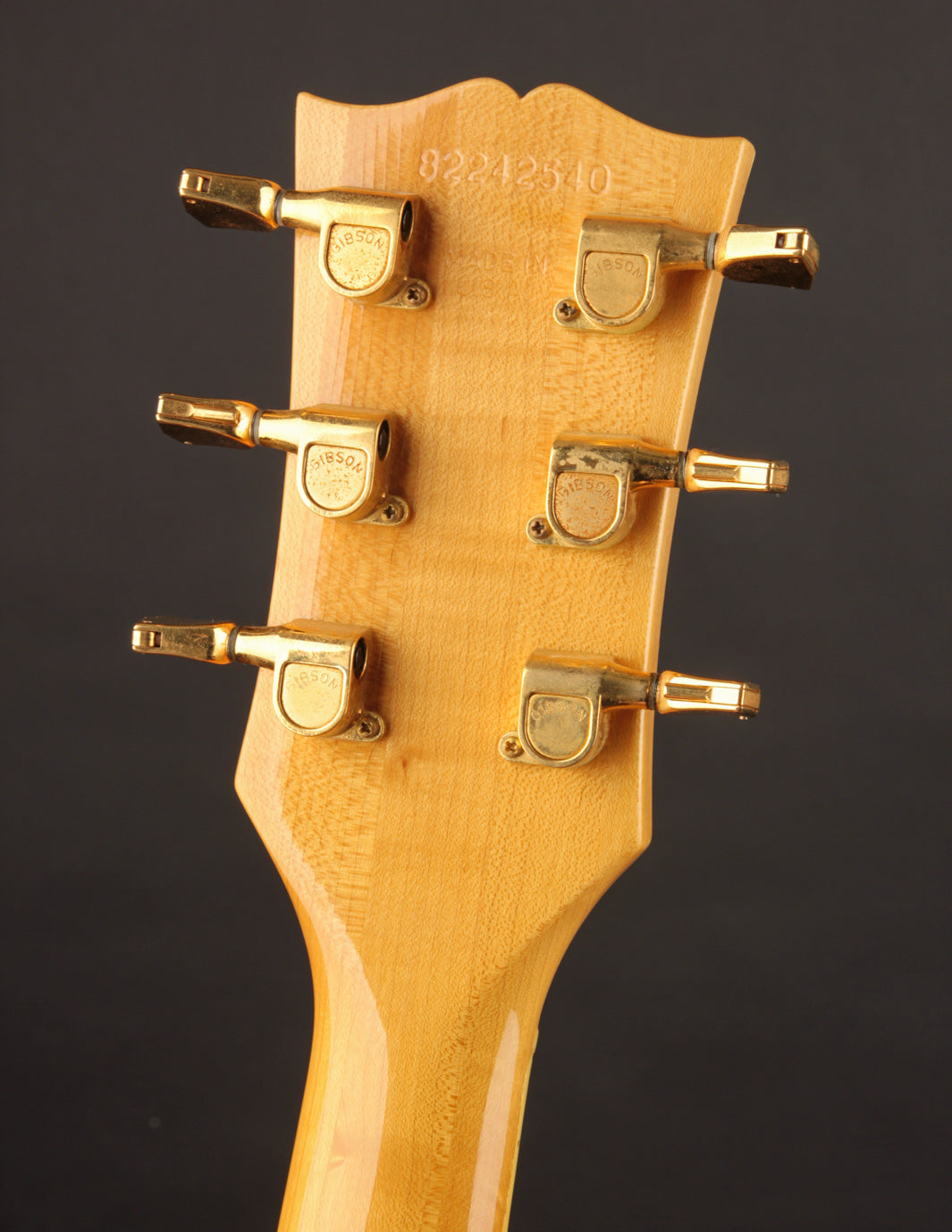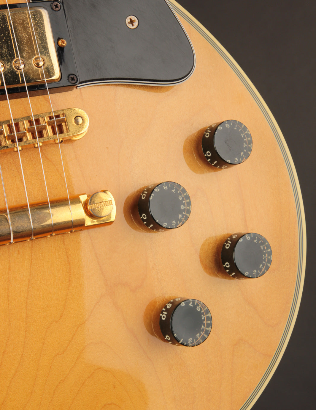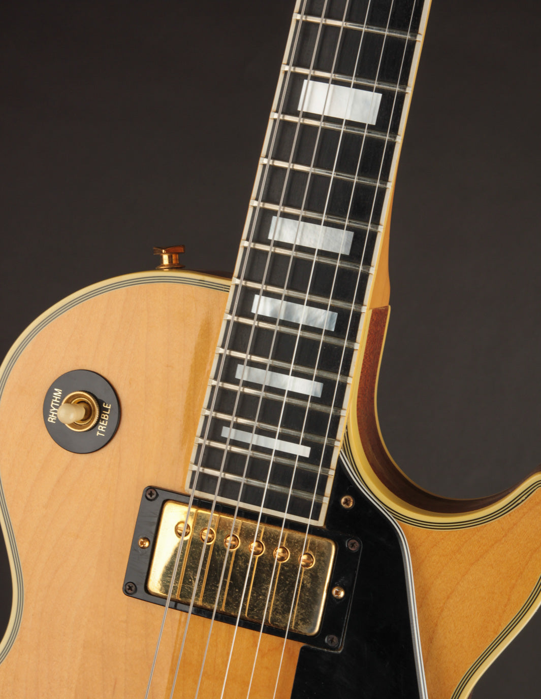 This 1982 Gibson Les Paul Custom is a great example of the short-lived Natural-topped Customs that came about at the beginning of the decade. The "custom" accoutrement like the large block fretboard inlays and gold hardware gives that au naturel top a more unique look than the more conventional Black, White, and Tobacco Sunburst finishes of the period.