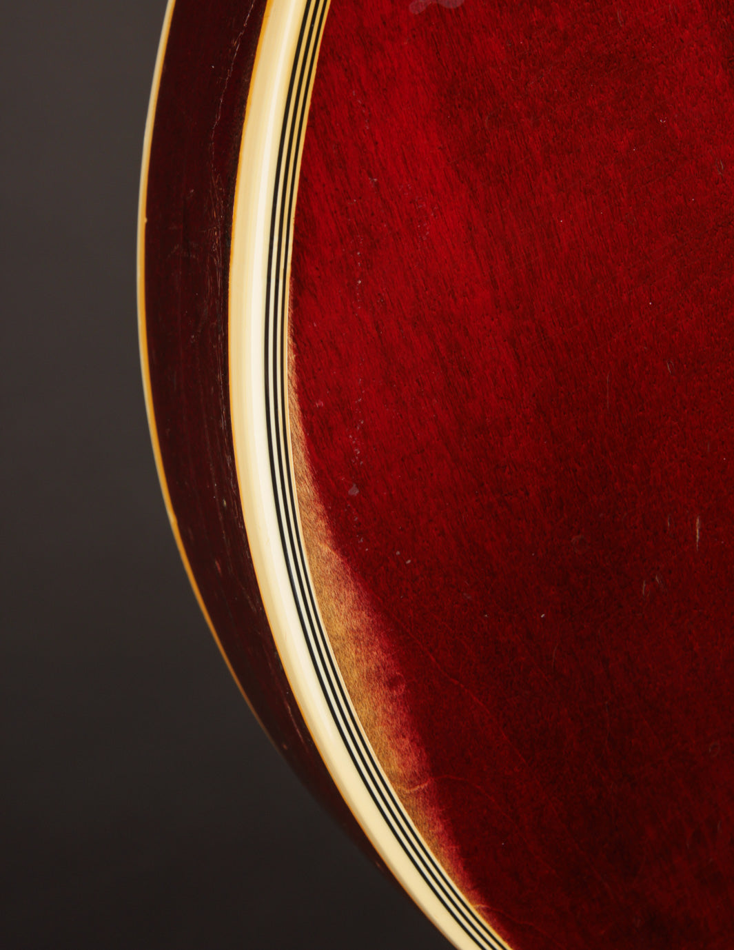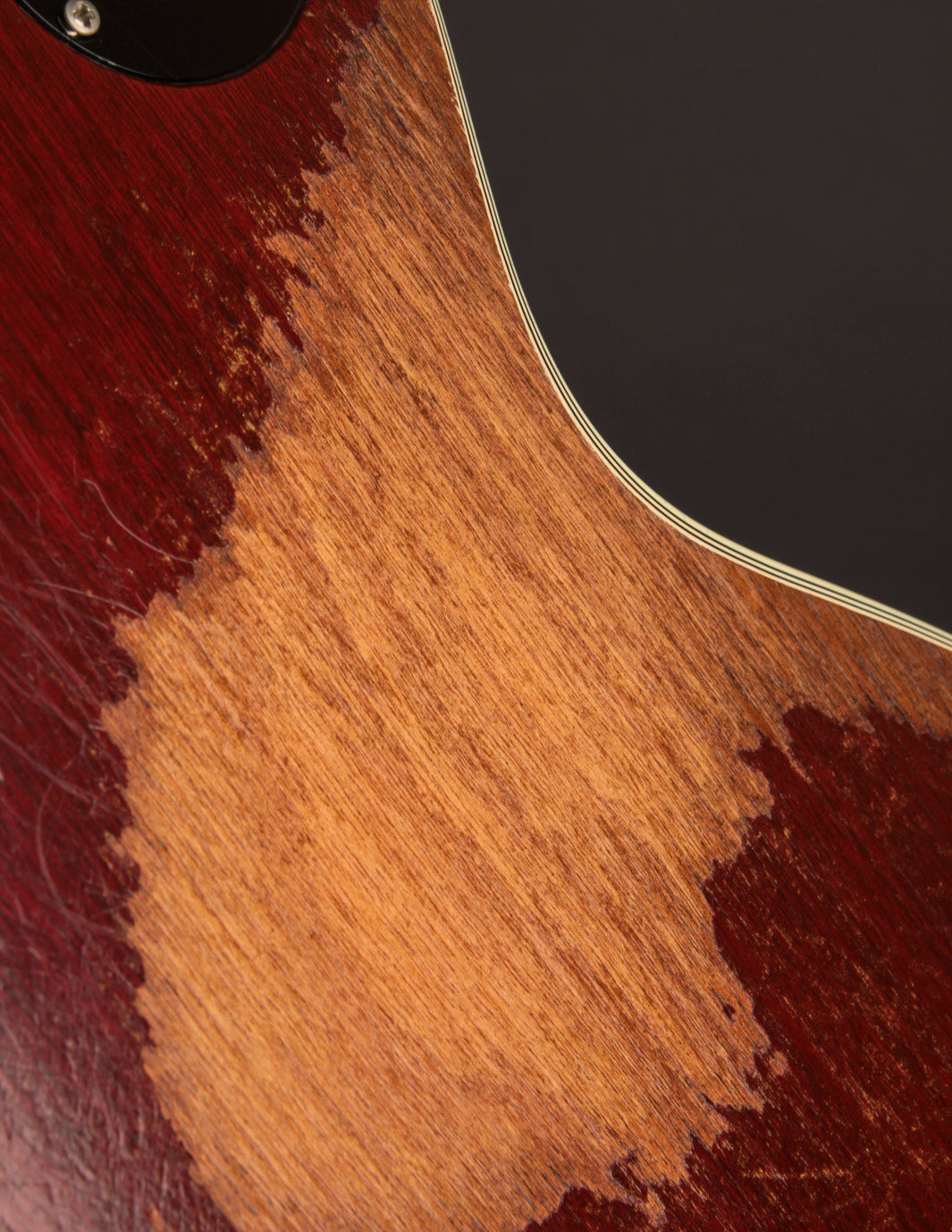 Additional changes include installation of an older MIJ ABR-1 bridge, tuner, pickup ring and knob replacement. The guitar came to us with modern pots but retained its original harness. We found no issues with the harness and elected to reinstall those back into the guitar. The guitar was also refretted with medium jumbo wire.
