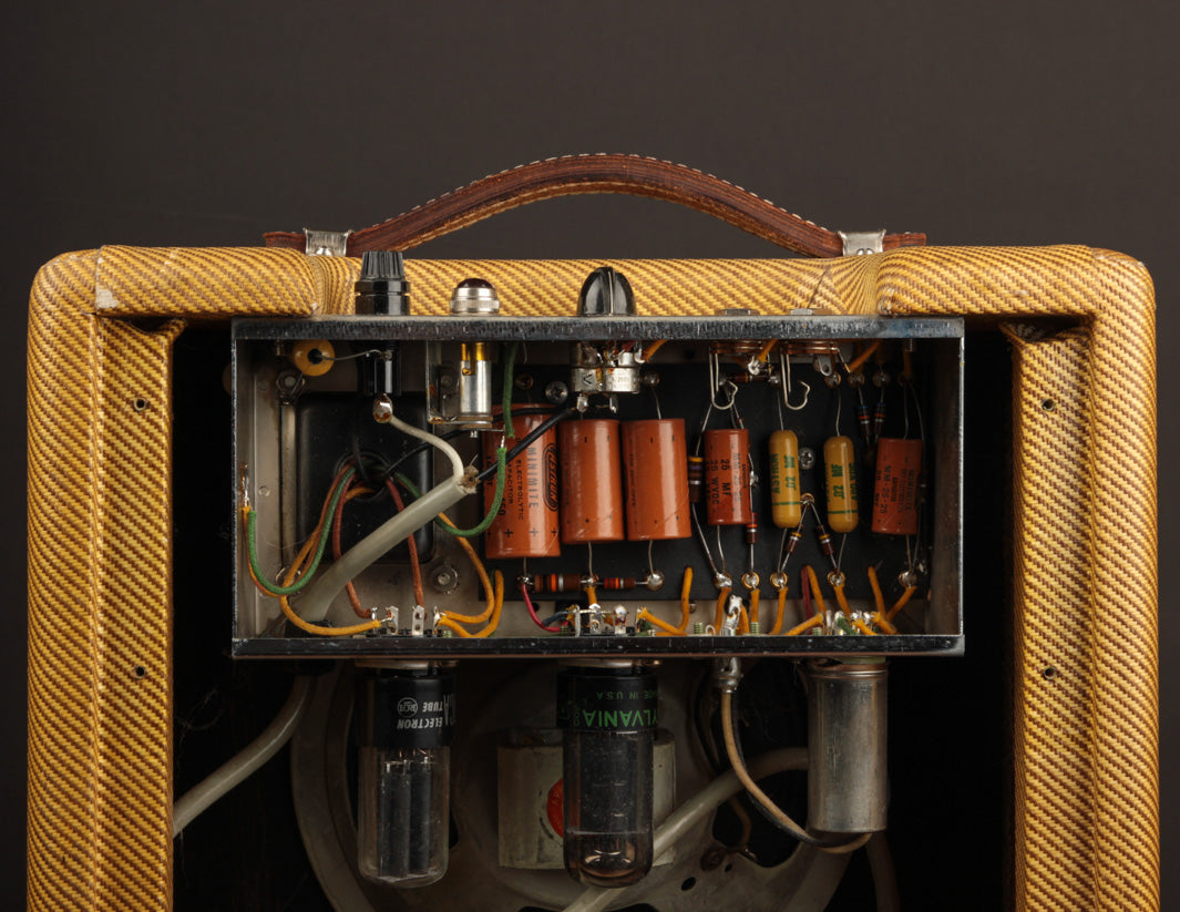 It's not every day that you encounter a piece of musical equipment from this era that gets to be this age without something having been replaced. A screw? A capacitor? Not this one! Every single component is original to this amplifier, including the tubes!