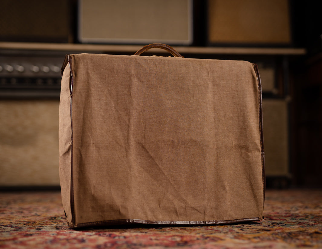 It just recently came through service by the great Stan Day, who installed a fresh set of power tubes, replaced a faulty input jack, along with some caps and installation a 3-prong power cord. He also replaced what was an incorrect output transformer with a new Soursound layer wound output transformer, faithfully restoring the tone of the original. The amp has a defunct speaker jack installed long ago on the lower corner of the back panel, which we've elected to leave in place. The original Victoria slipcover remains, and it's in excellent shape!