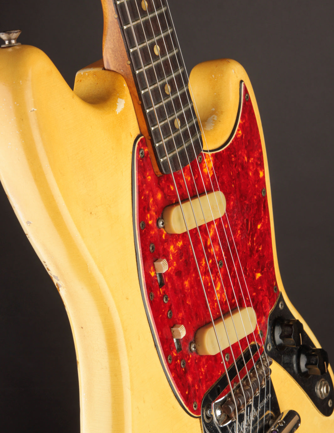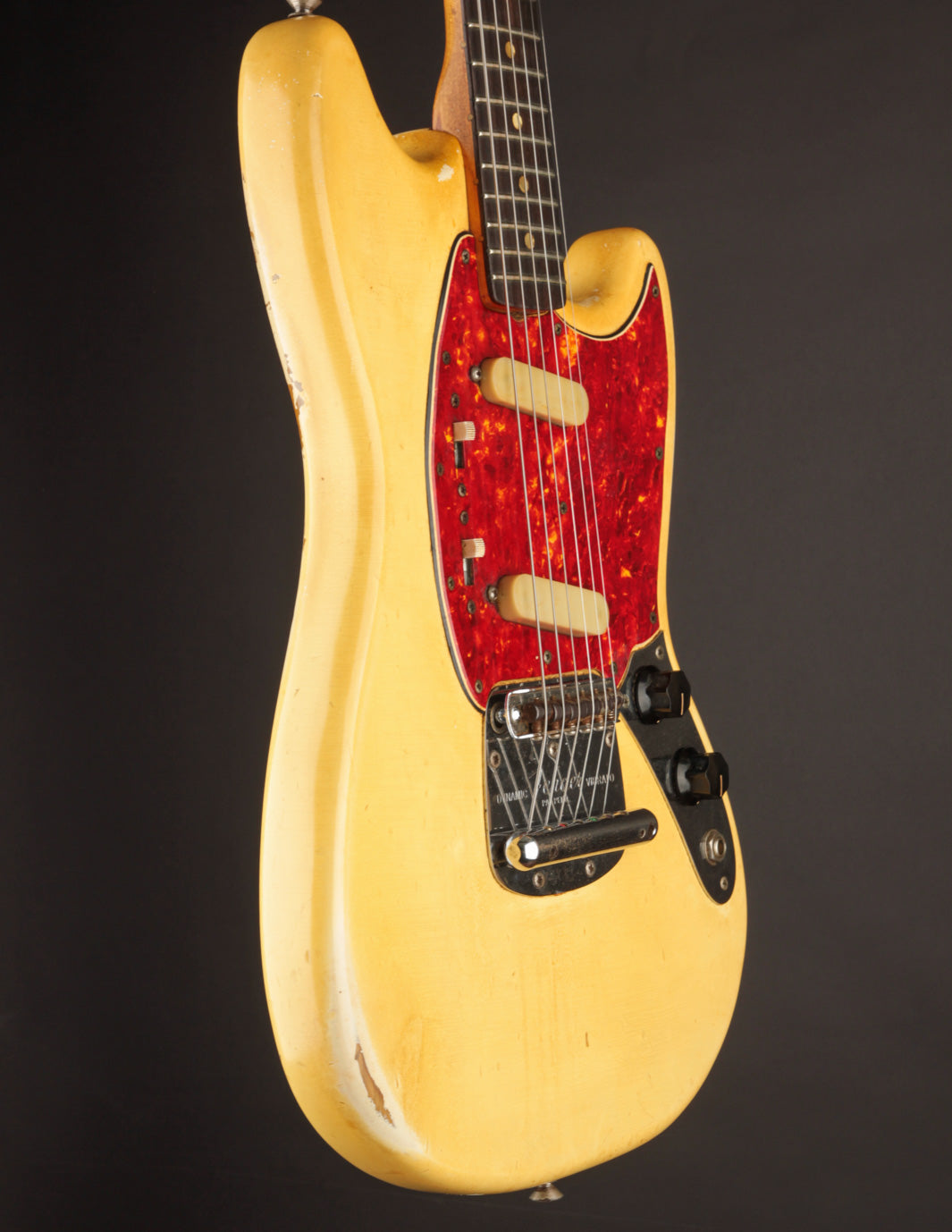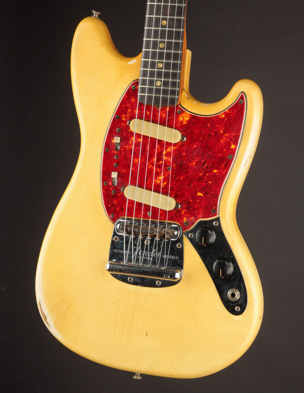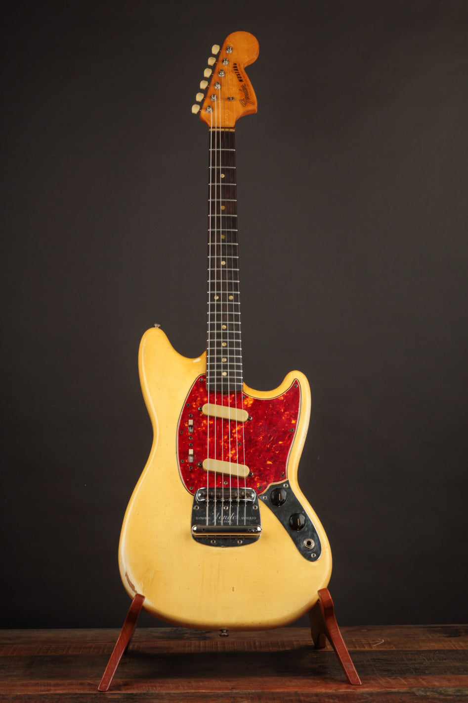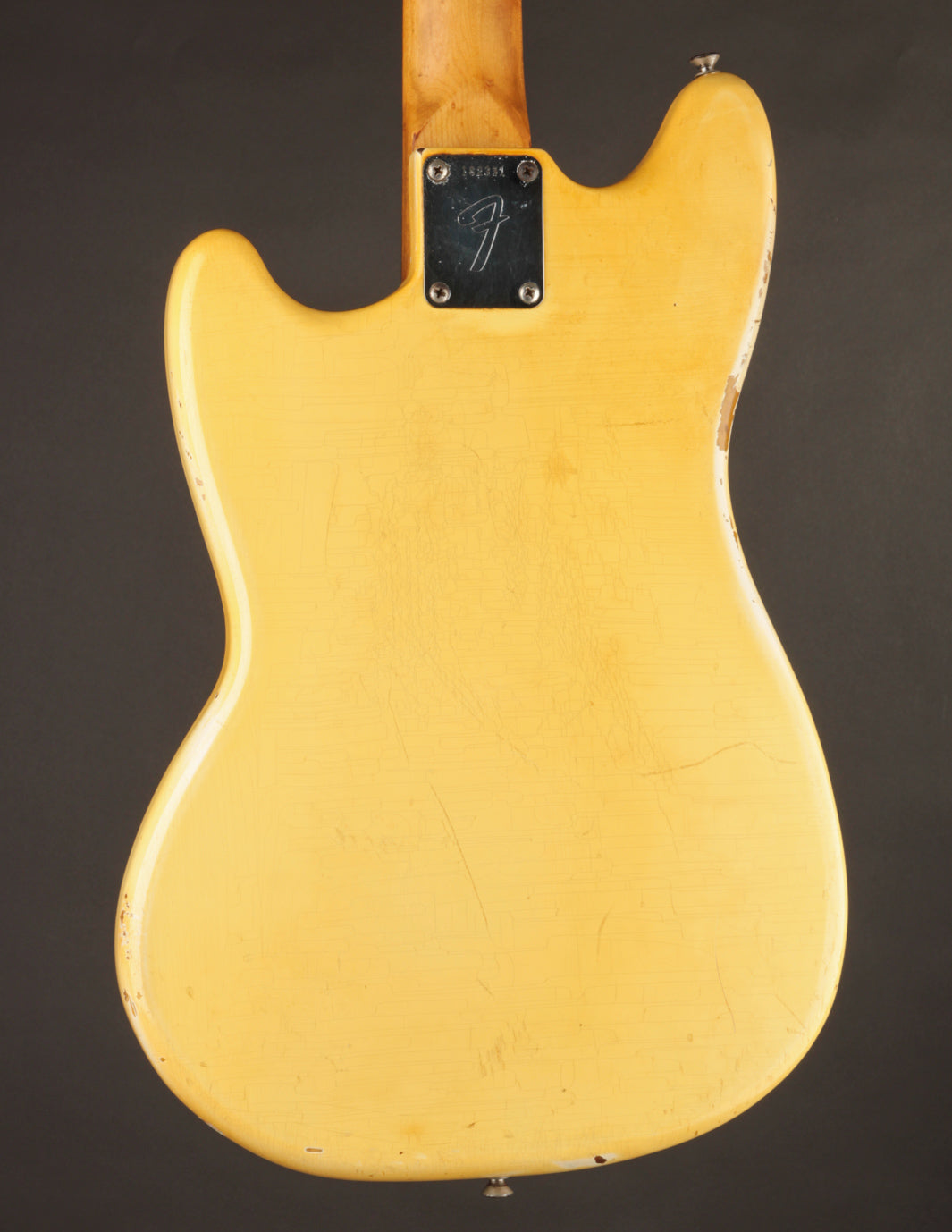 1967 Fender Mustang in original Olympic White finish just into the shop! We love these short scale student model electrics - they offer some of the familiarity of their bigger siblings while creating a voice all their own.