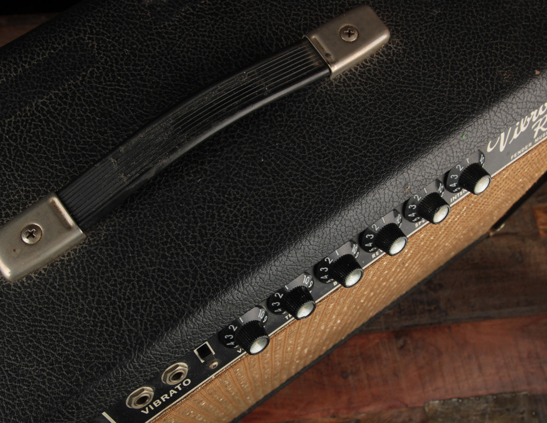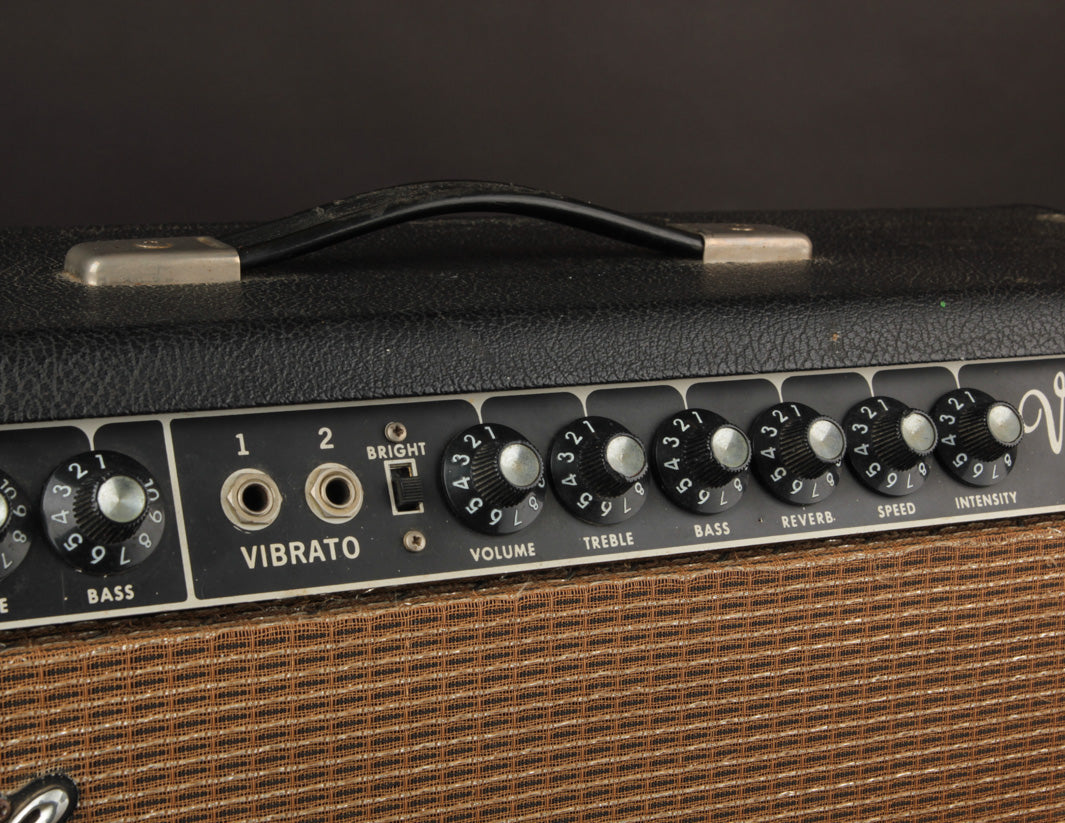 This Blackface Era 2x10 combo features a dual 6L6 power section that combines for tight, punchy low end and top end sparkle. The Vibrolux Reverb sounds great at pretty much any position on the volume control, making it a formidable studio and stage amplifier.
