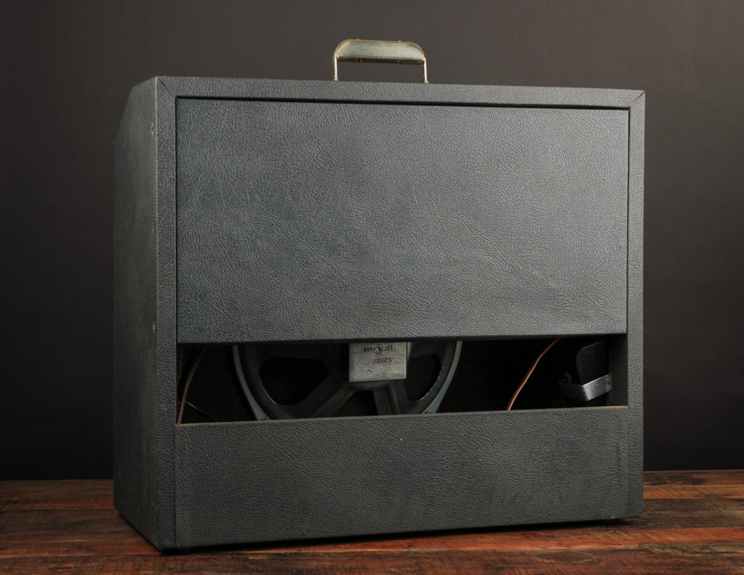 The amp is in Excellent condition for its age, with a quite clean exterior tolex wrap, grill cloth, and chassis. The original Lucite handle (inset with matching Grey tolex) is also in great shape and looks quite sharp! The original late '64 CTS speaker is fitting for the circuit and still sounds great.