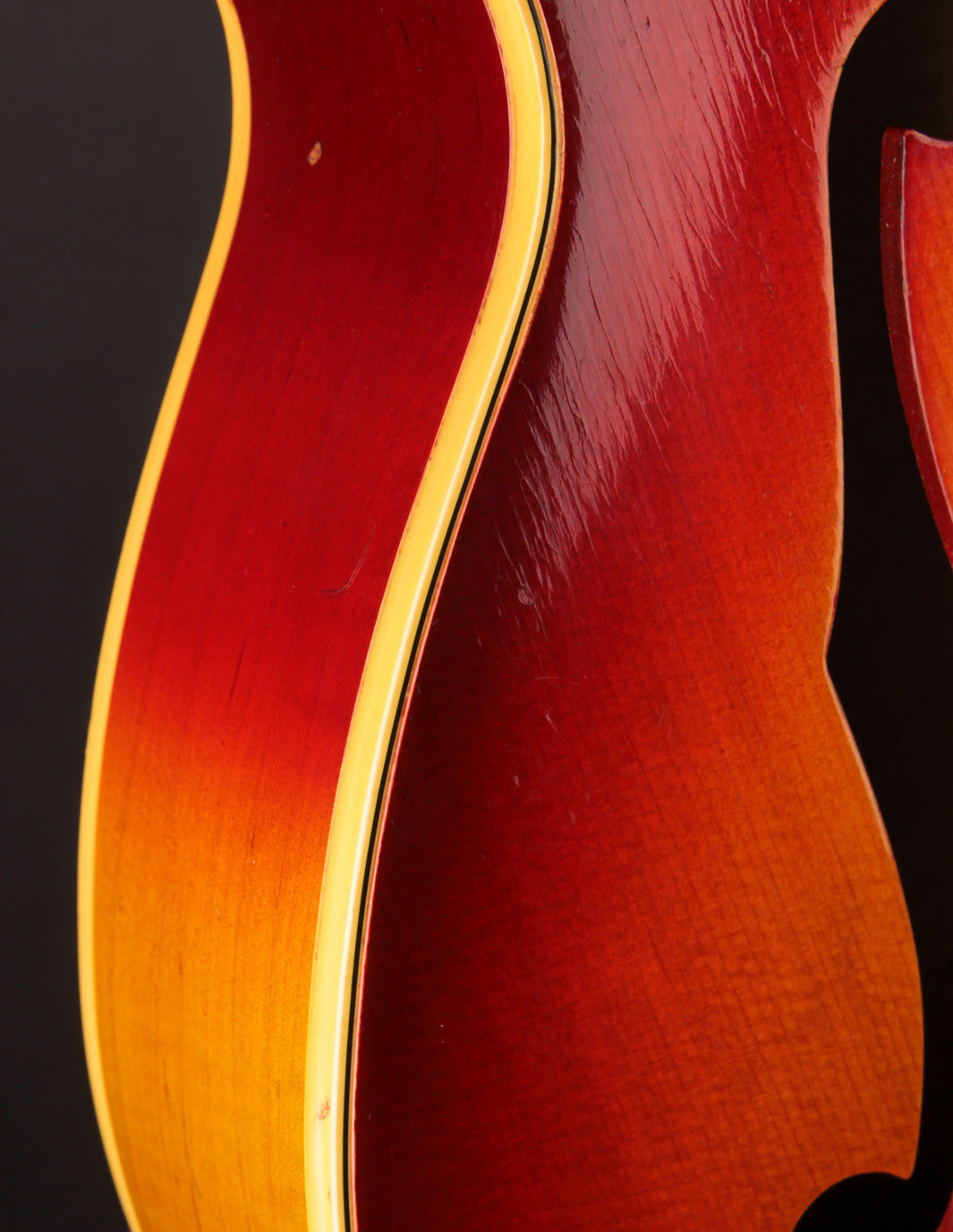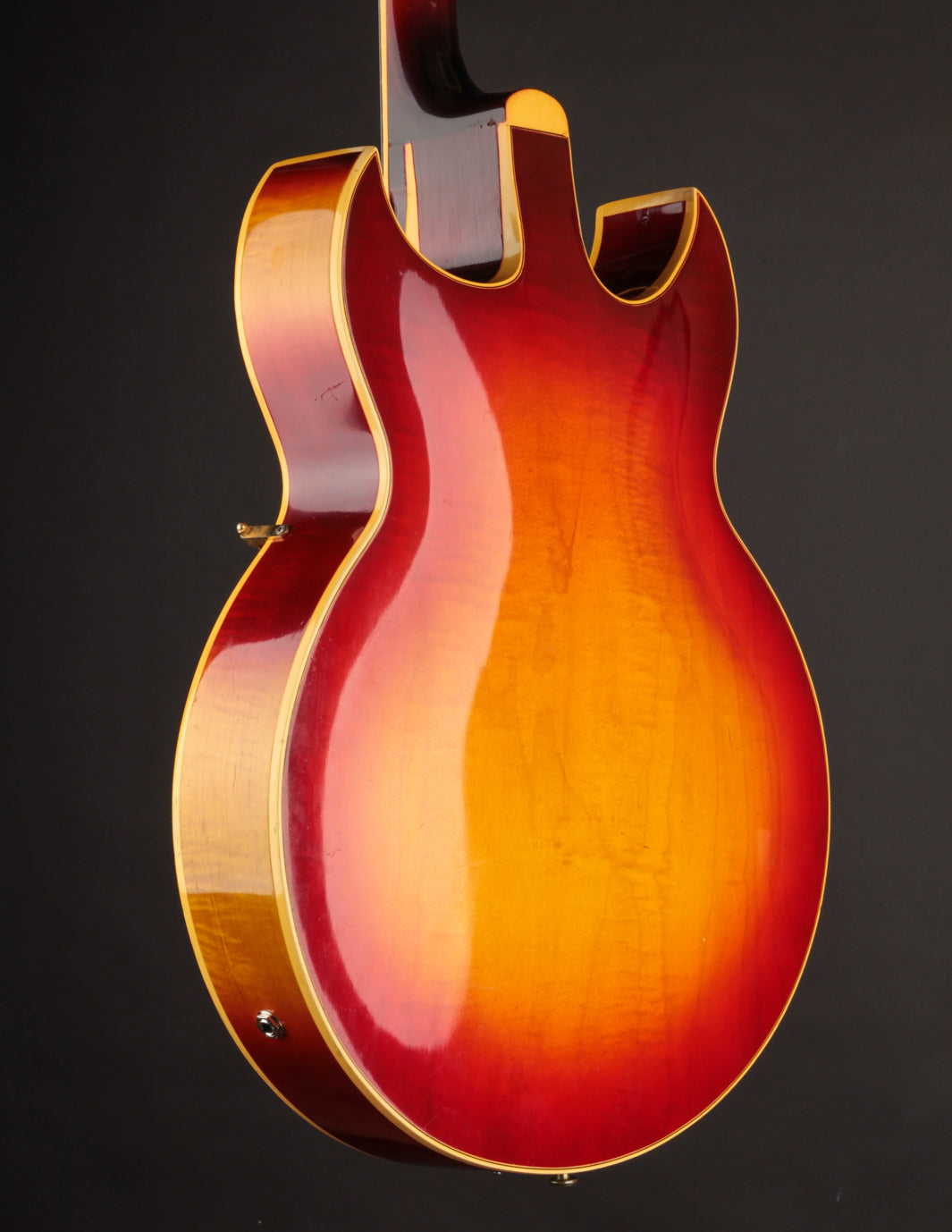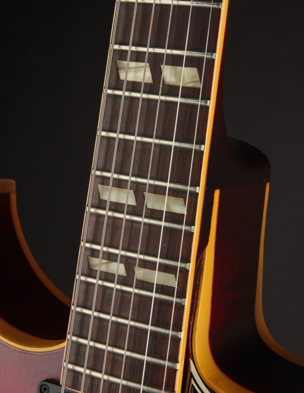 Structurally speaking, the guitar is in excellent condition, with no evidence of cracks or damage. All body and fingerboard binding is intact. The input jack area - a common weak point on many of the guitars built in this stlye - is also stable.