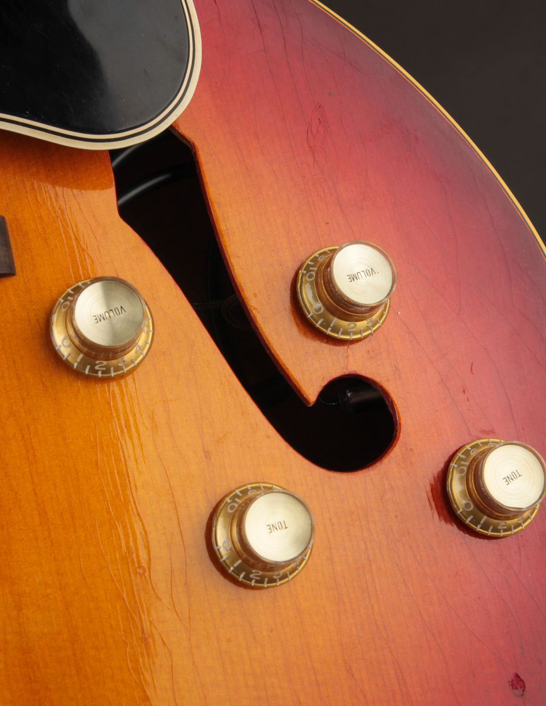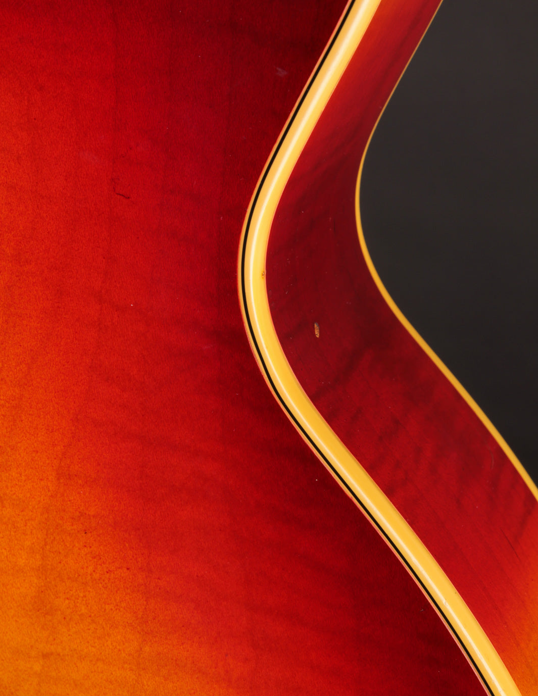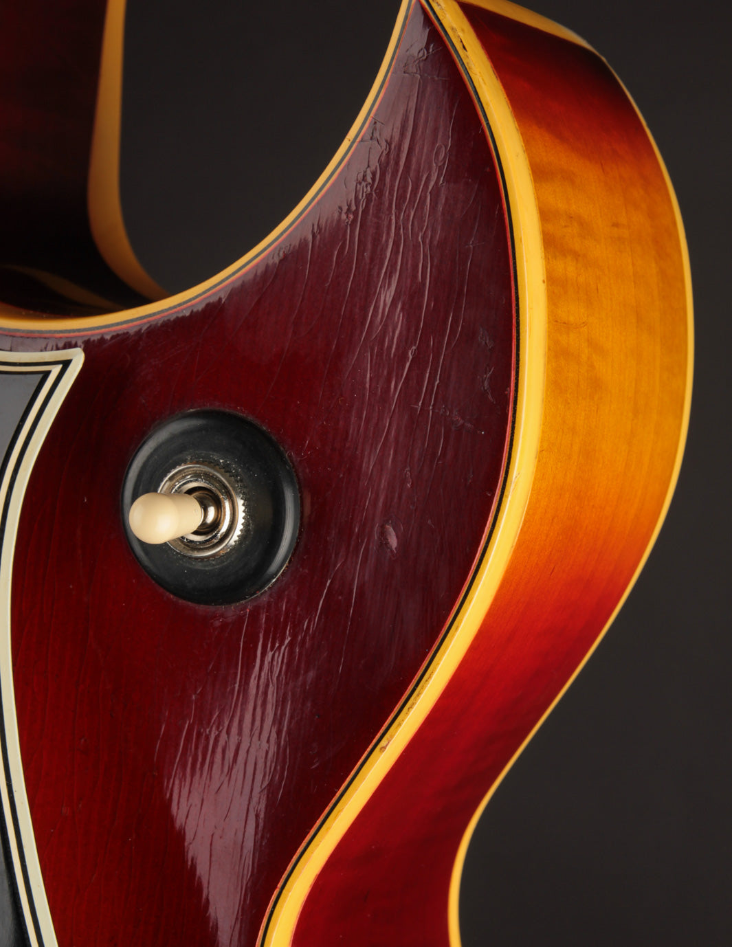 Structurally speaking, the guitar is in excellent condition, with no evidence of cracks or damage. All body and fingerboard binding is intact. The input jack area - a common weak point on many of the guitars built in this stlye - is also stable.