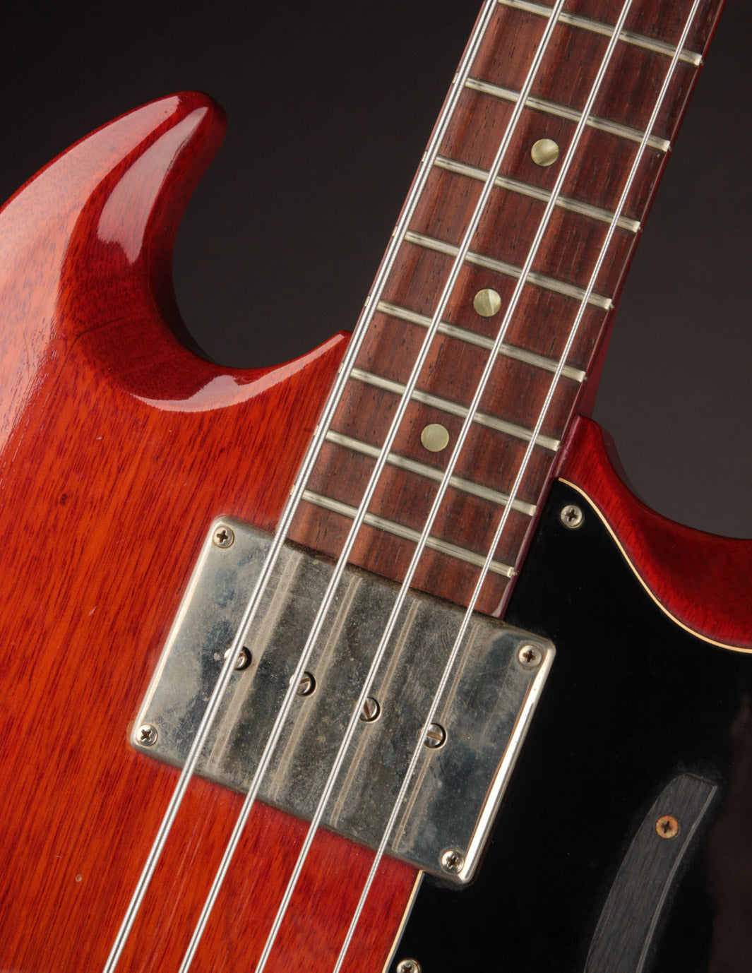 This is simply an exquisite example of this model, with desirable features like nickel hardware and a very comfortable C neck that mimics many of the great electric guitars Gibson produced in 1959. The original fretwire is in nice shape, and the overall geometry of the guitar is great.