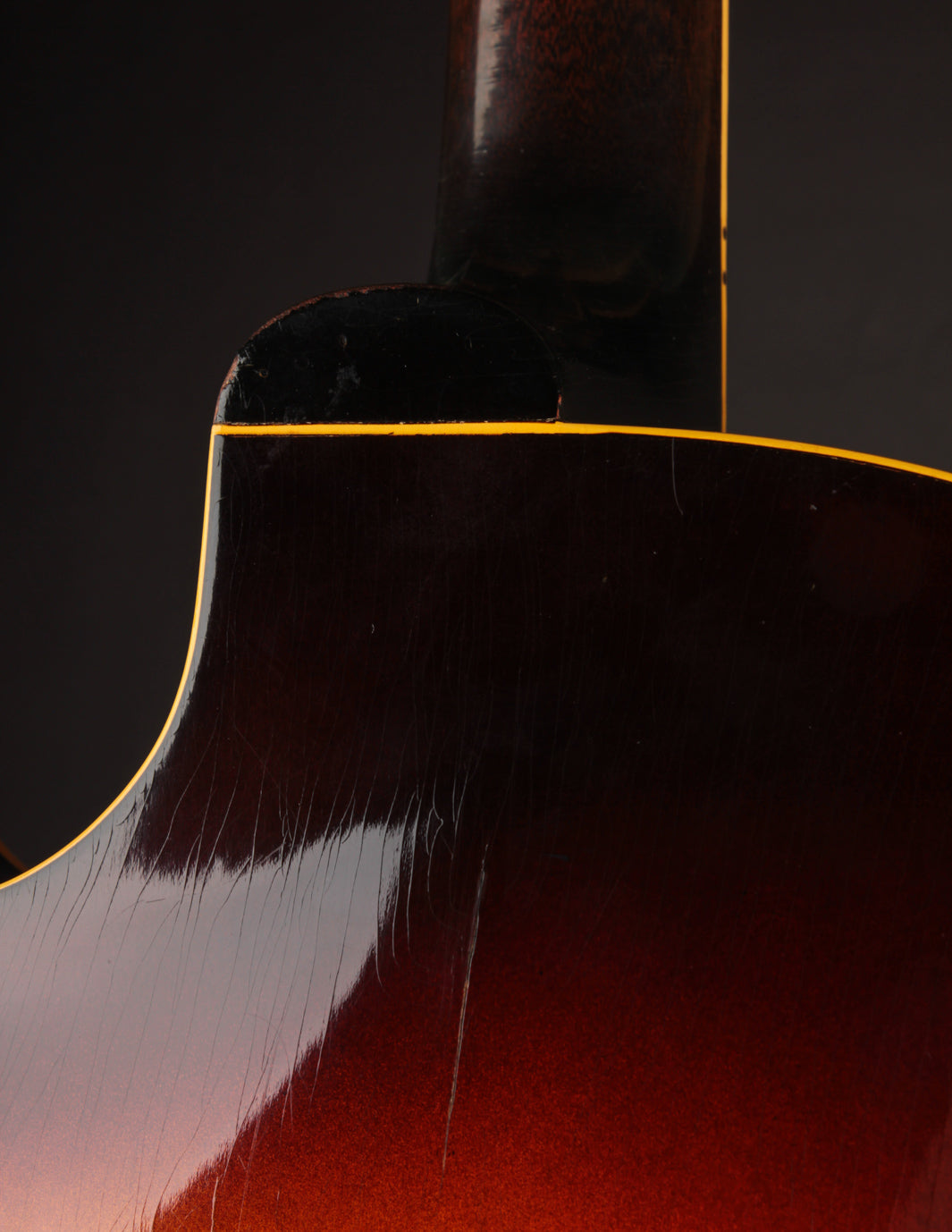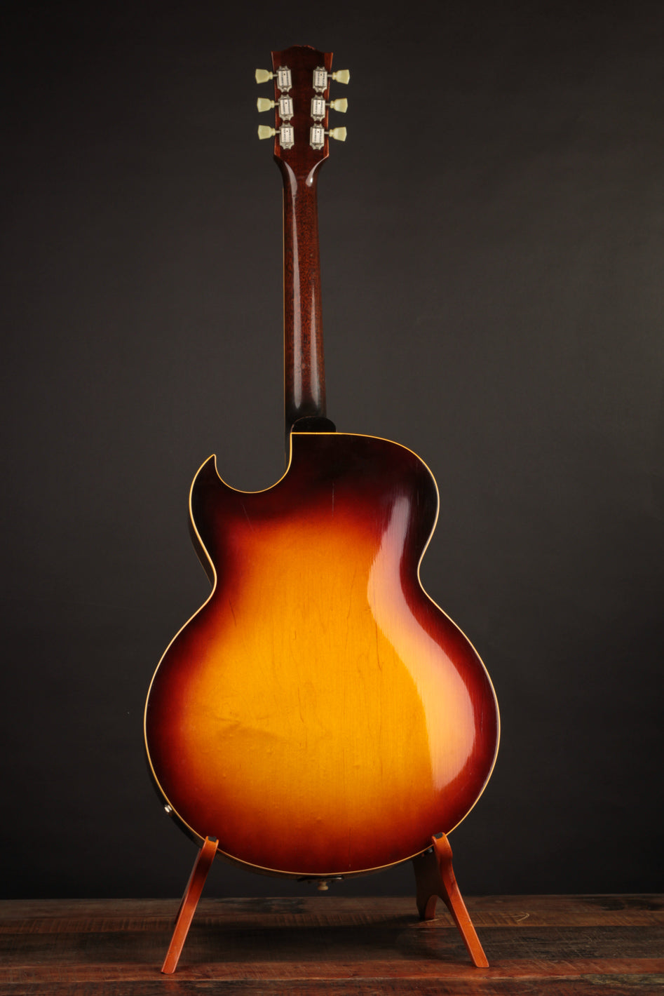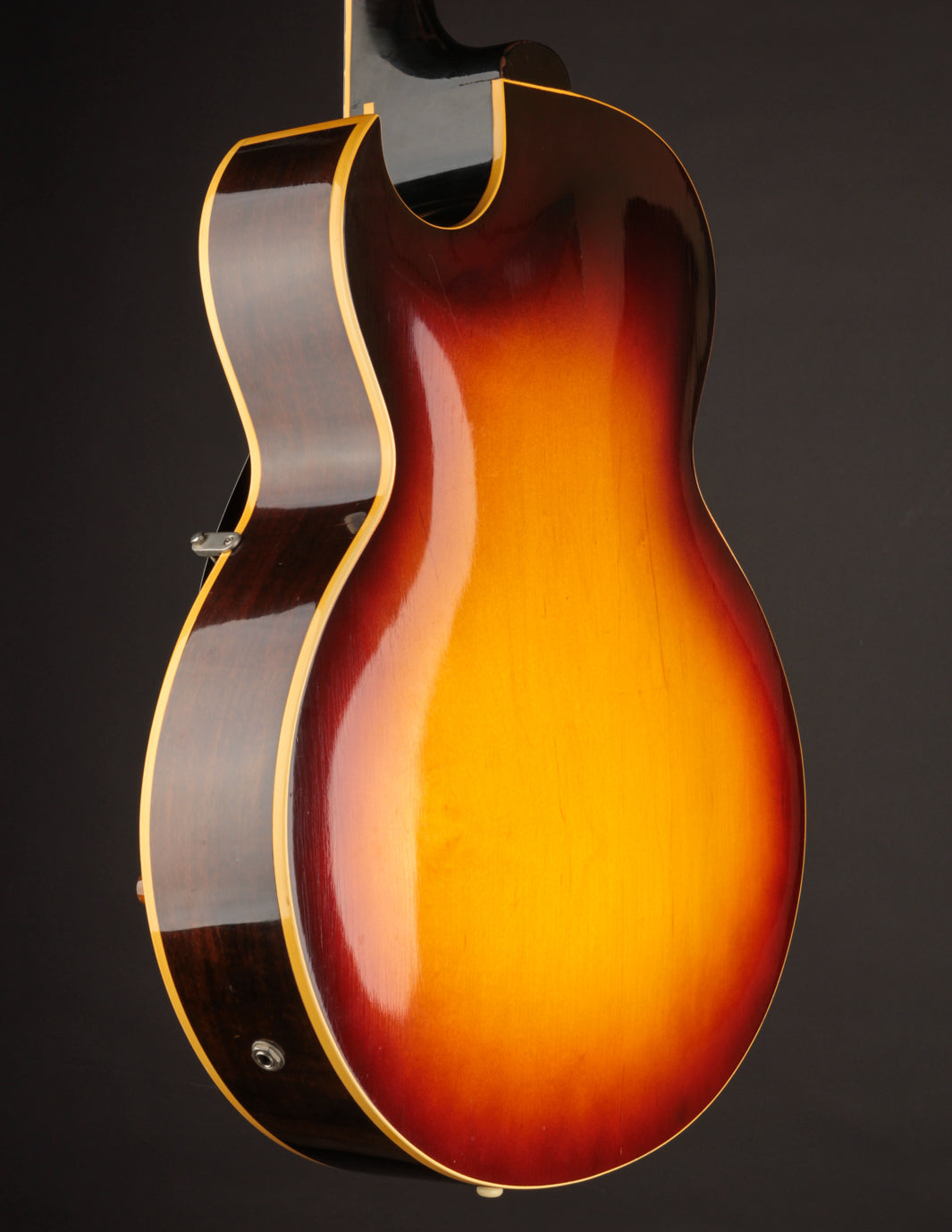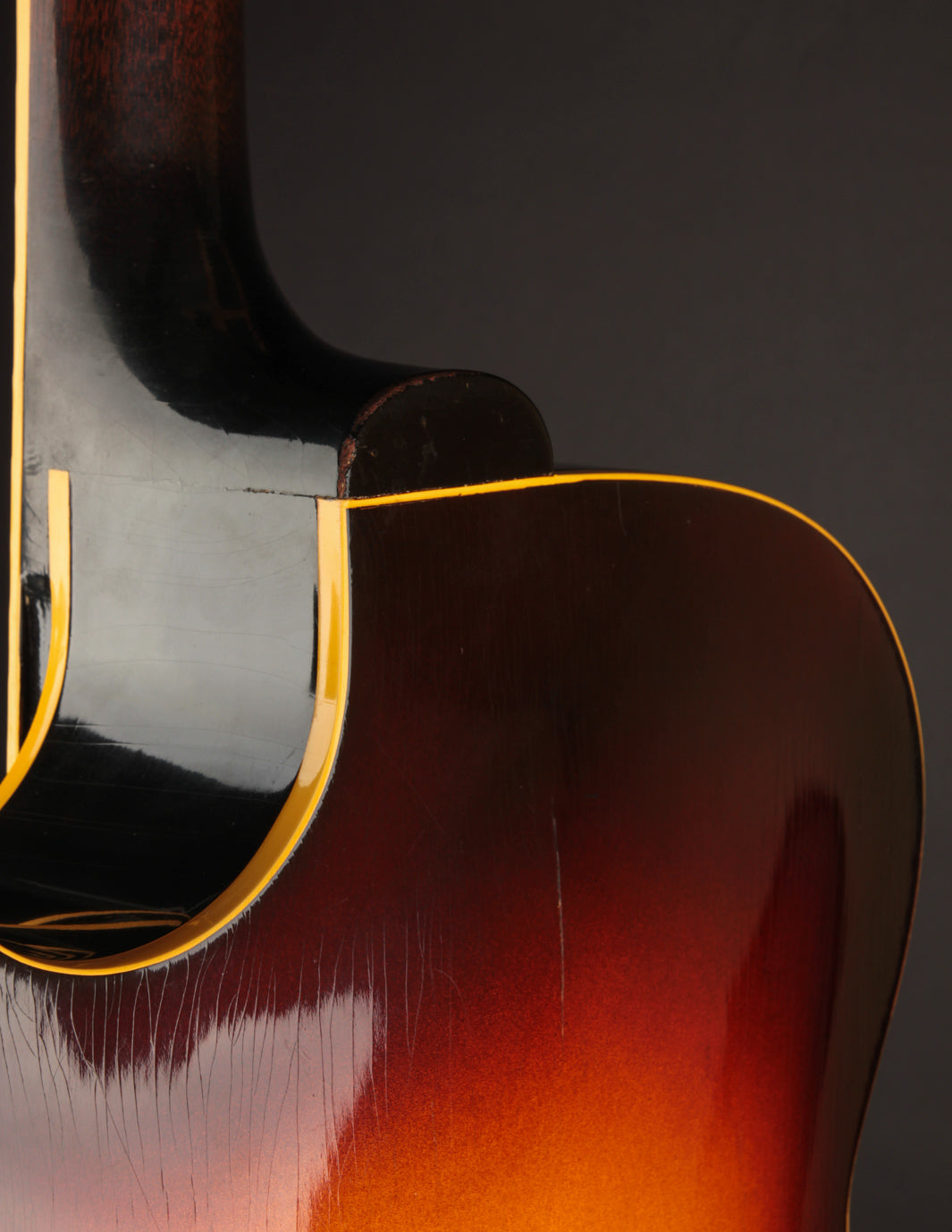 As you can tell from the photos, this ES-175 is exceptionally clean. If it weren't for the replaced tuners and a small repaired laminate crack on the back, in fact, this would be very close to being NOS. The 3-tone Sunburst is superb, with all hues wonderfully represented without any real fading. The original nitrocellulose lacquer is also very clean, with light lacquer checking throughout.