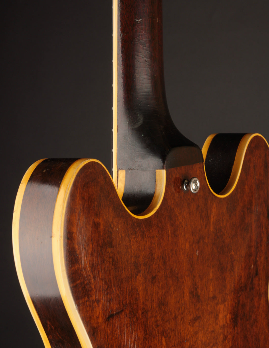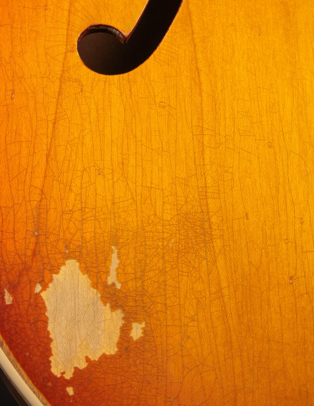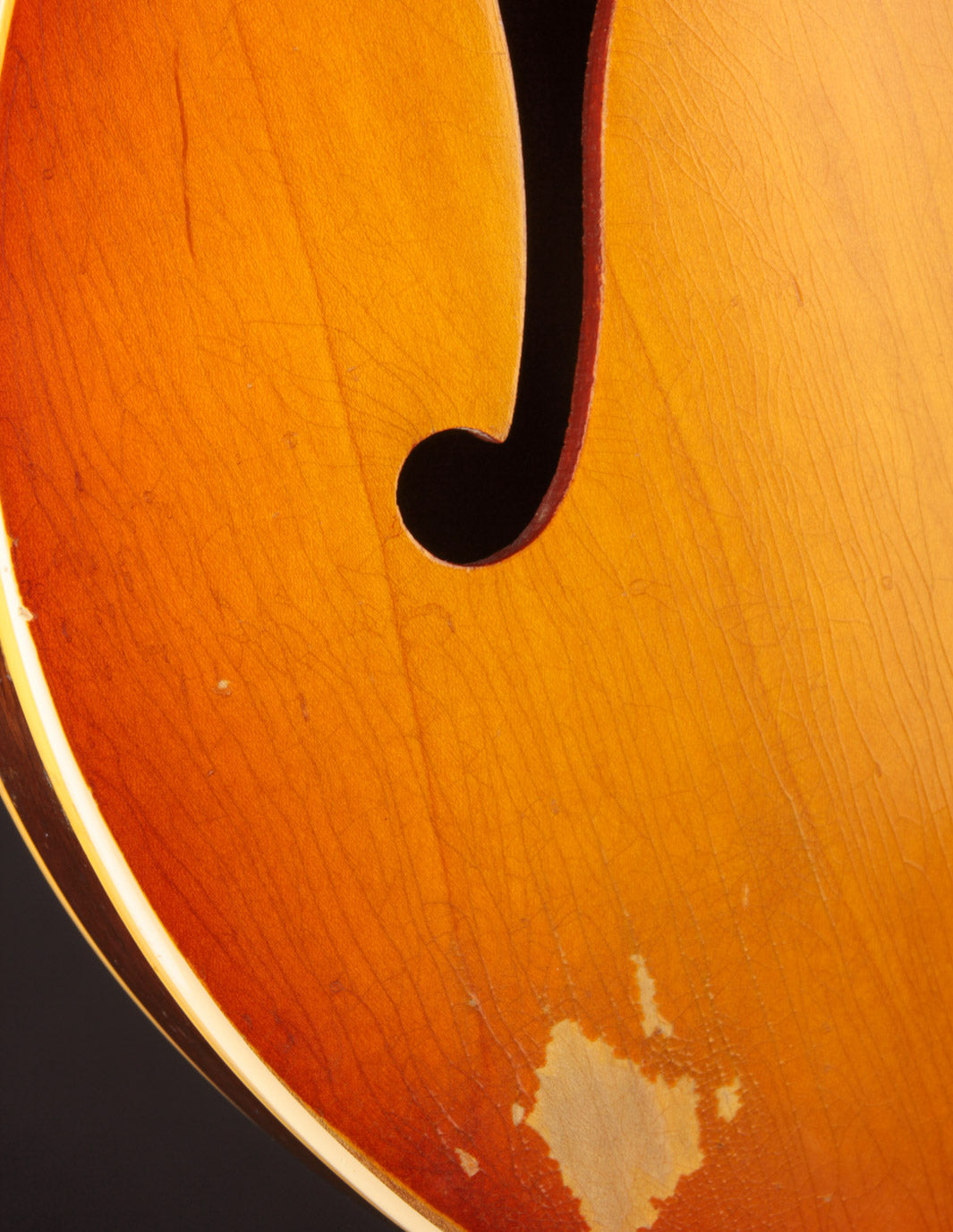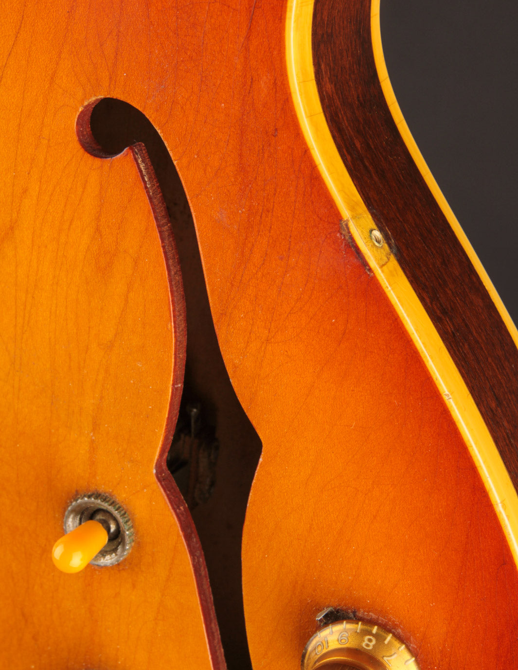 The original pickguard is long gone, but that just means there's more of the original Cherry Sunburst finish to show off. There's one small laminate crack on the back that's been glued up and remains nice and stable, but the guitar is otherwise structurally sound.