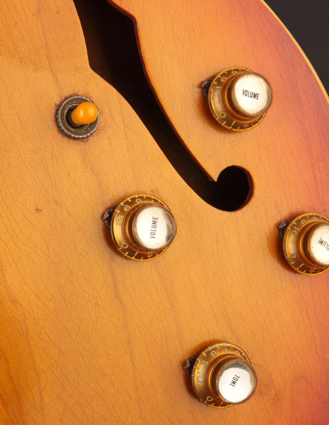 This 1965 Gibson ES-330TD in Cherry Sunburst recently came into the shop with one of the cooler vintage mods you can find on an old Gibson.