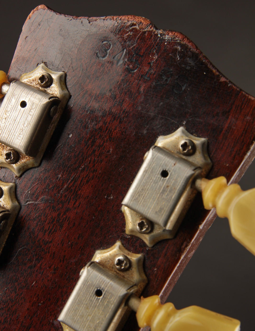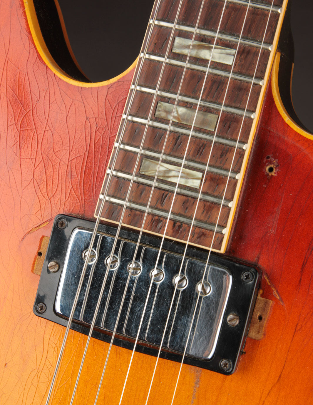 The slim C neck with large taper feels fantastic, especially with brand new Jescar frets installed in-house. A recent set of nylon saddles, saddle screws, and a toggle switch tip are the replacement parts, while the ABR-1, wiring harness, knobs, tailpiece, and tuners remain original to the guitar.