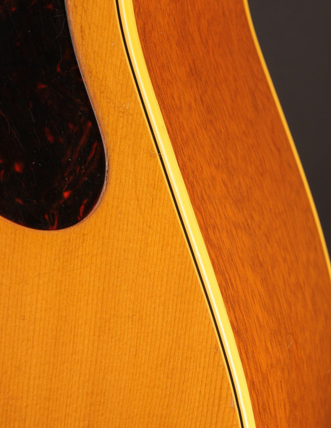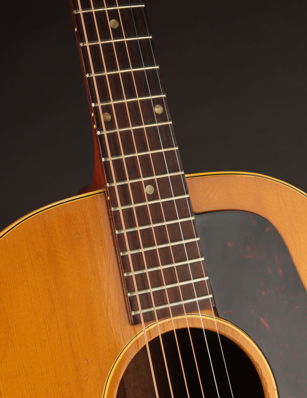 On the vintage guitar scale, we'd put the condition of this instrument somewhere between "very good" and "excellent." It's in beautiful cosmetic shape, with no unsightly blemishes and only the standard finish checking one would expect. The neck has never been reset, and the original adjustable saddle still leaves plenty of room to maneuver. Our shop has given it a fresh setup, and it plays easily. Priced with a period hardshell case.