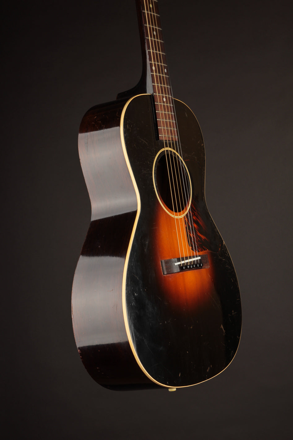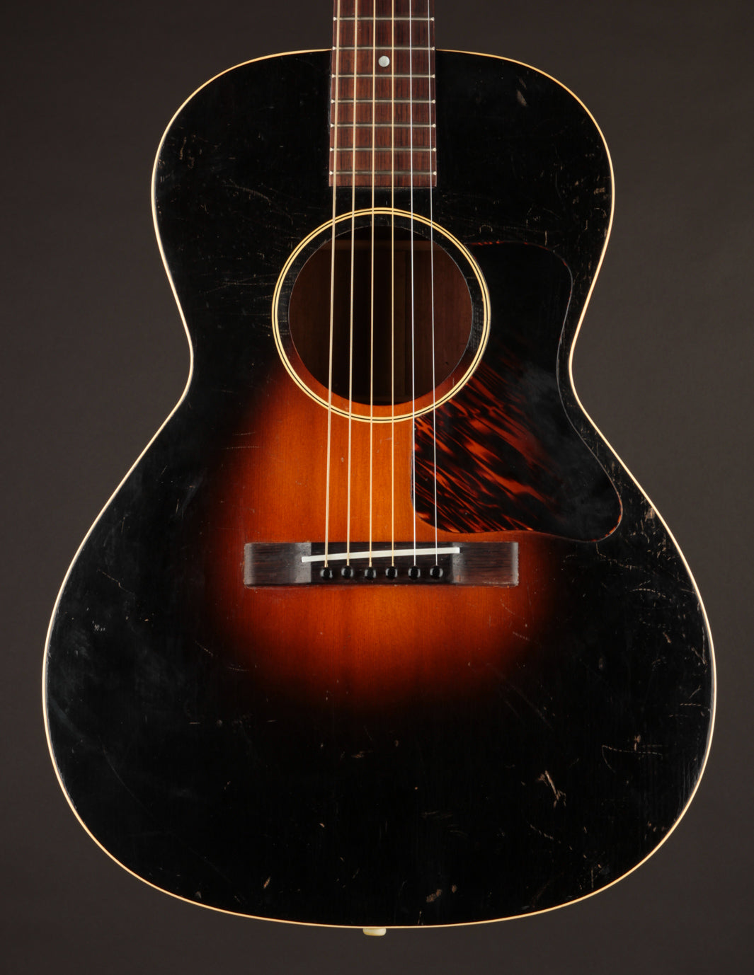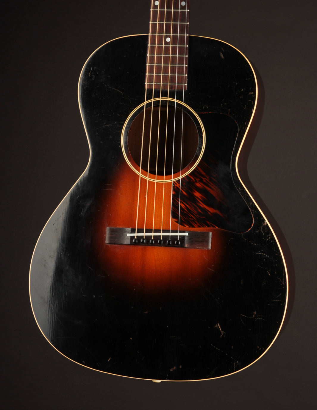 The condition of this guitar is as close to exemplary as 90-year old guitars get. It's completely original, except for the tuner buttons and saddle. The bridge has been sanded down ever so slightly, but is stable and structurally sound. The guitar looks amazing, with a clean, original finish and no unsightly blemishing. Priced with its original case!