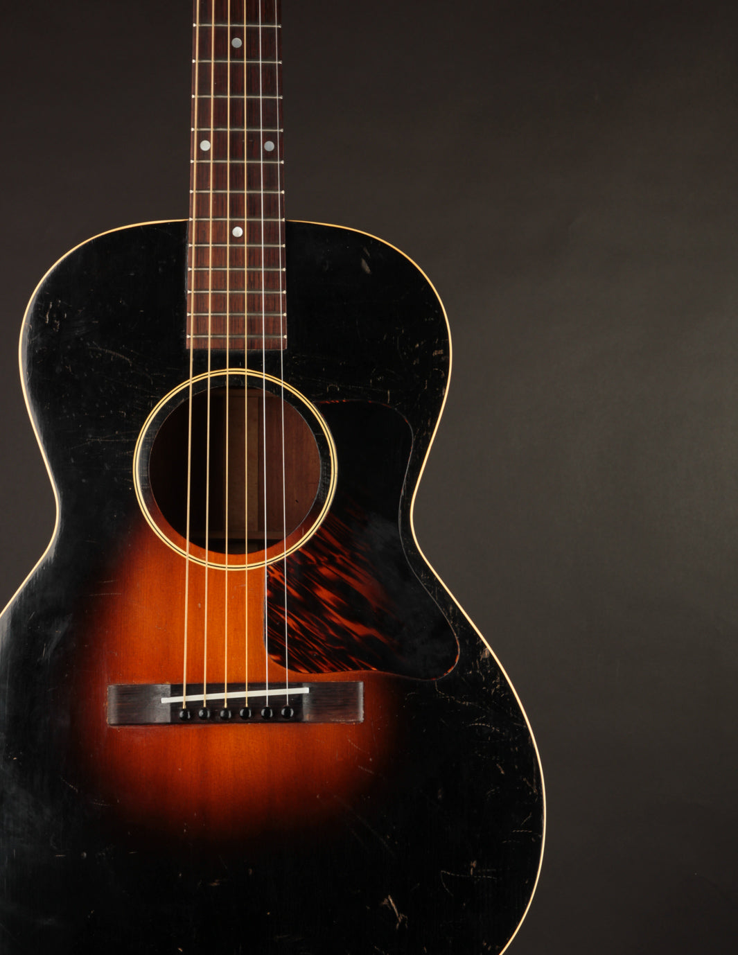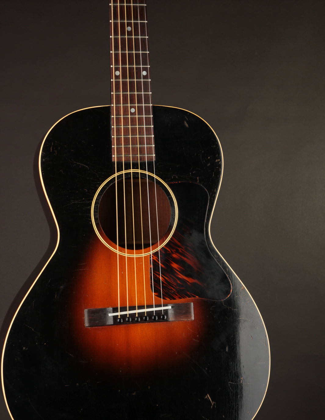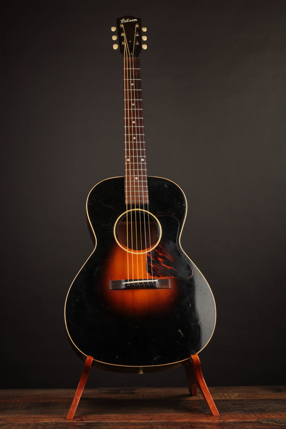 The condition of this guitar is as close to exemplary as 90-year old guitars get. It's completely original, except for the tuner buttons and saddle. The bridge has been sanded down ever so slightly, but is stable and structurally sound. The guitar looks amazing, with a clean, original finish and no unsightly blemishing. Priced with its original case!