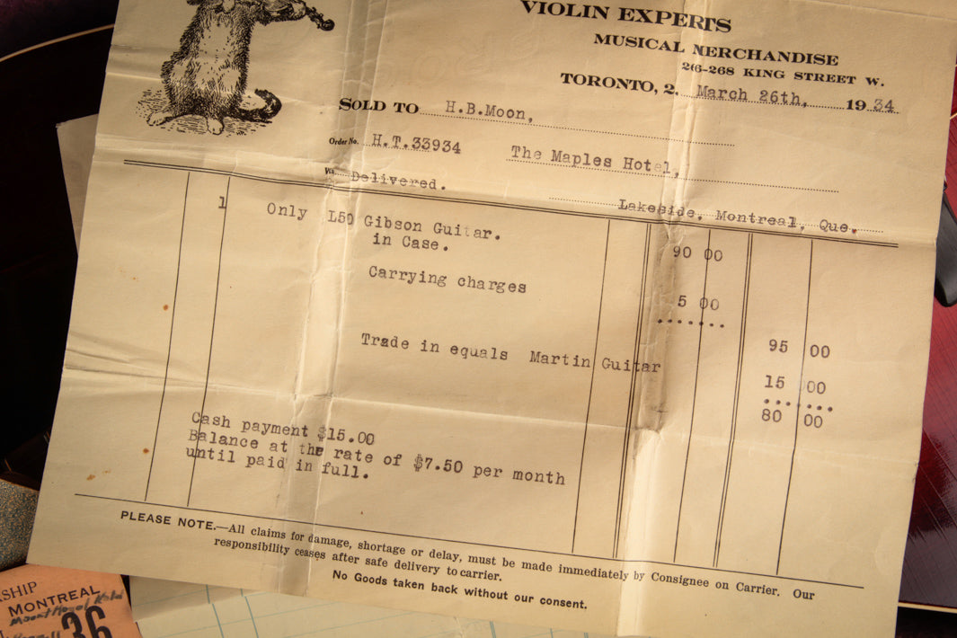 This insanely charming 1934 Gibson L-50 has just arrived for consignment! In the small-bodied archtop niche, Gibsons don't get any more attractive than this one. Its structure is entirely original, with a recent refret by Folkway Music. The classic red-Mahogany sunburst finish retains its original luster; and it's only been warmed by the threads of time. The voice of the guitar is round, thick, and ultra-present ~ a perfect choice for the lead guitar player operating in a duo context accompanying a large-bodied flattop. To complete the package, the instrument is accompanied by its original hard case (also in excellent condition), which includes the original bill of sale! A highly collectible guitar, with beautiful tone and playability.