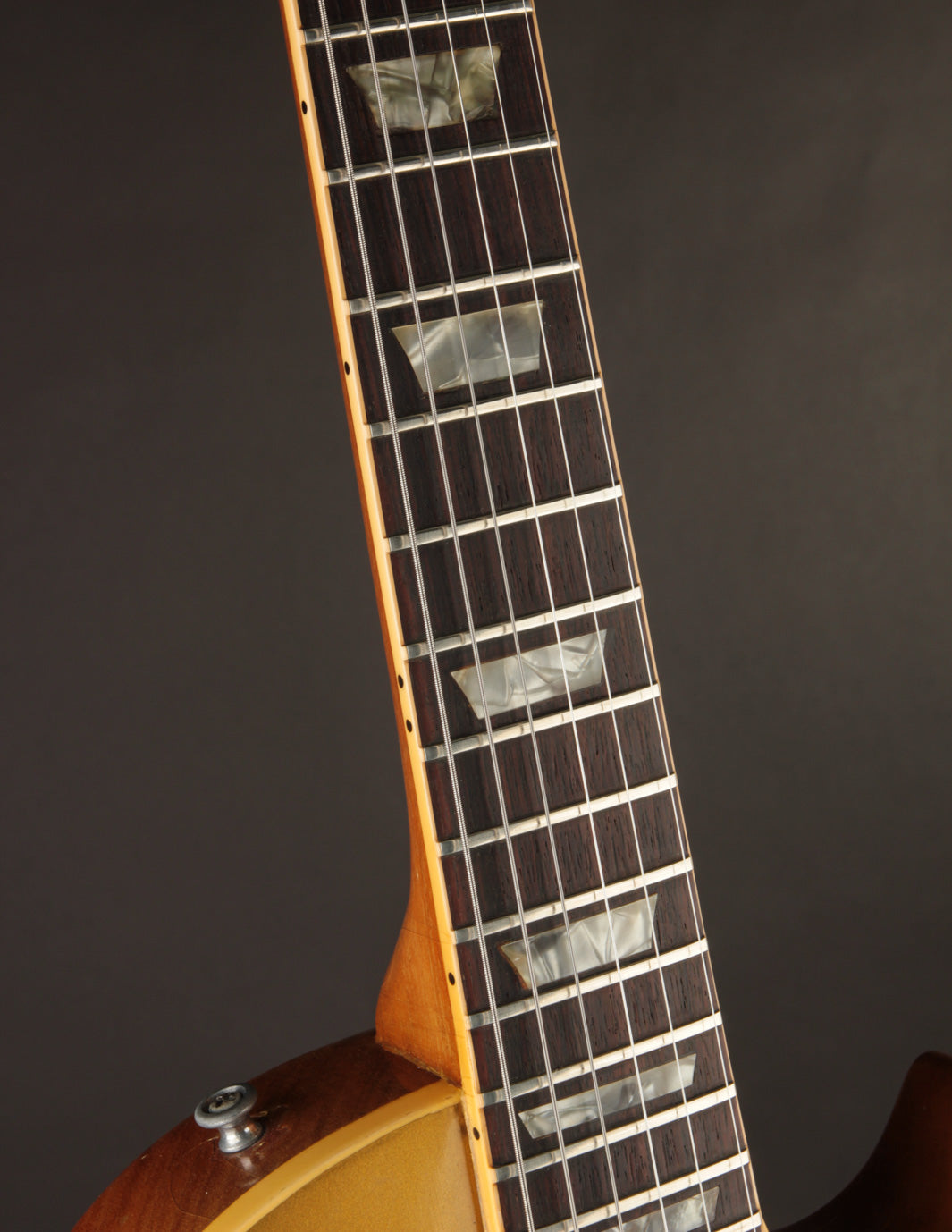 Most of the hardware has remained original, including the double-line Kluson tuners, Pat # ABR-1 bridge (with replaced saddles), and thick seam stopbar tailpiece. The frets are original and in great shape, and the neck feels much more like a late 50s carve with a slightly meatier taper. Notice this neck also predates Gibson's incorporation of the volute - another desirable trait of these earlier '69 builds. Smit's handwound humbuckers are currently in the guitar; both are spec'ed with Alnico 2 magnets and sound excellent in the guitar.