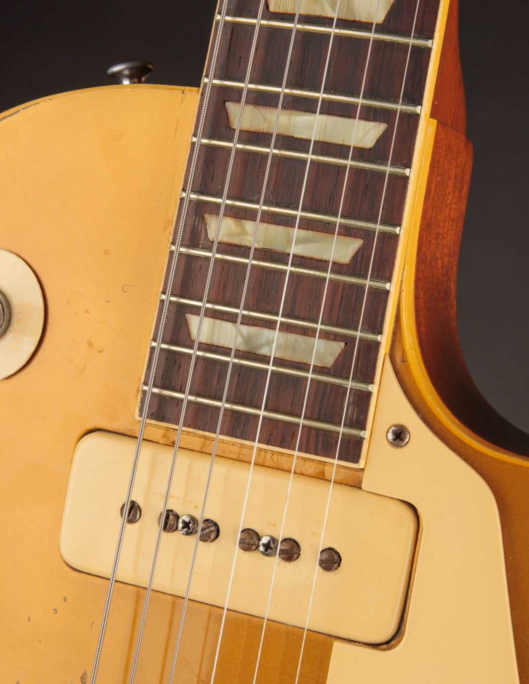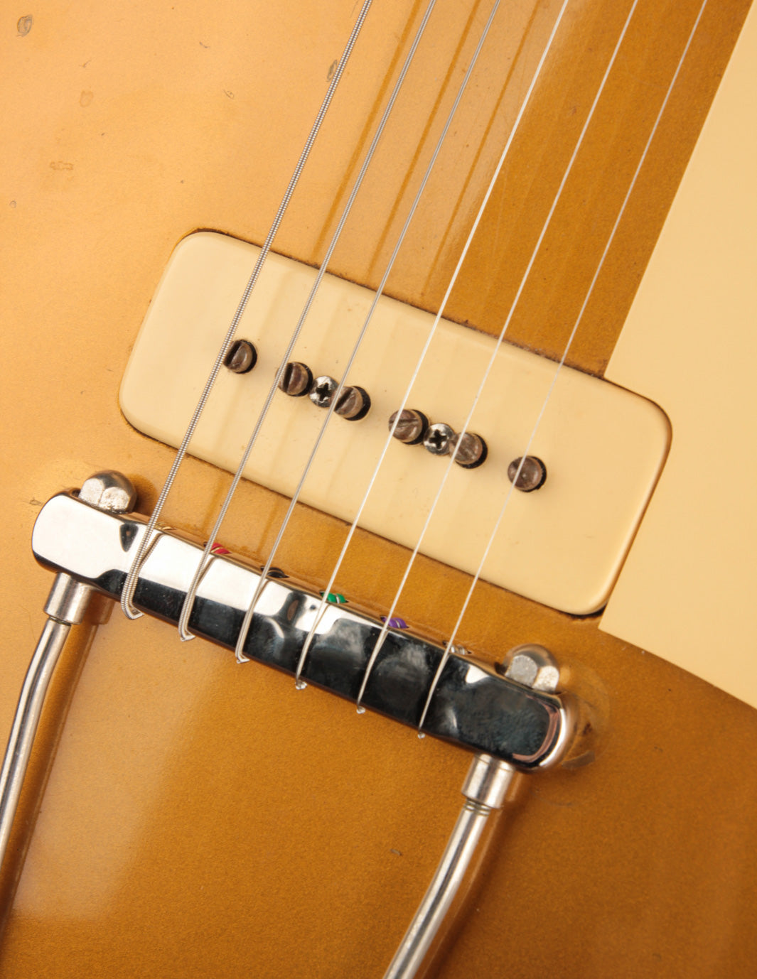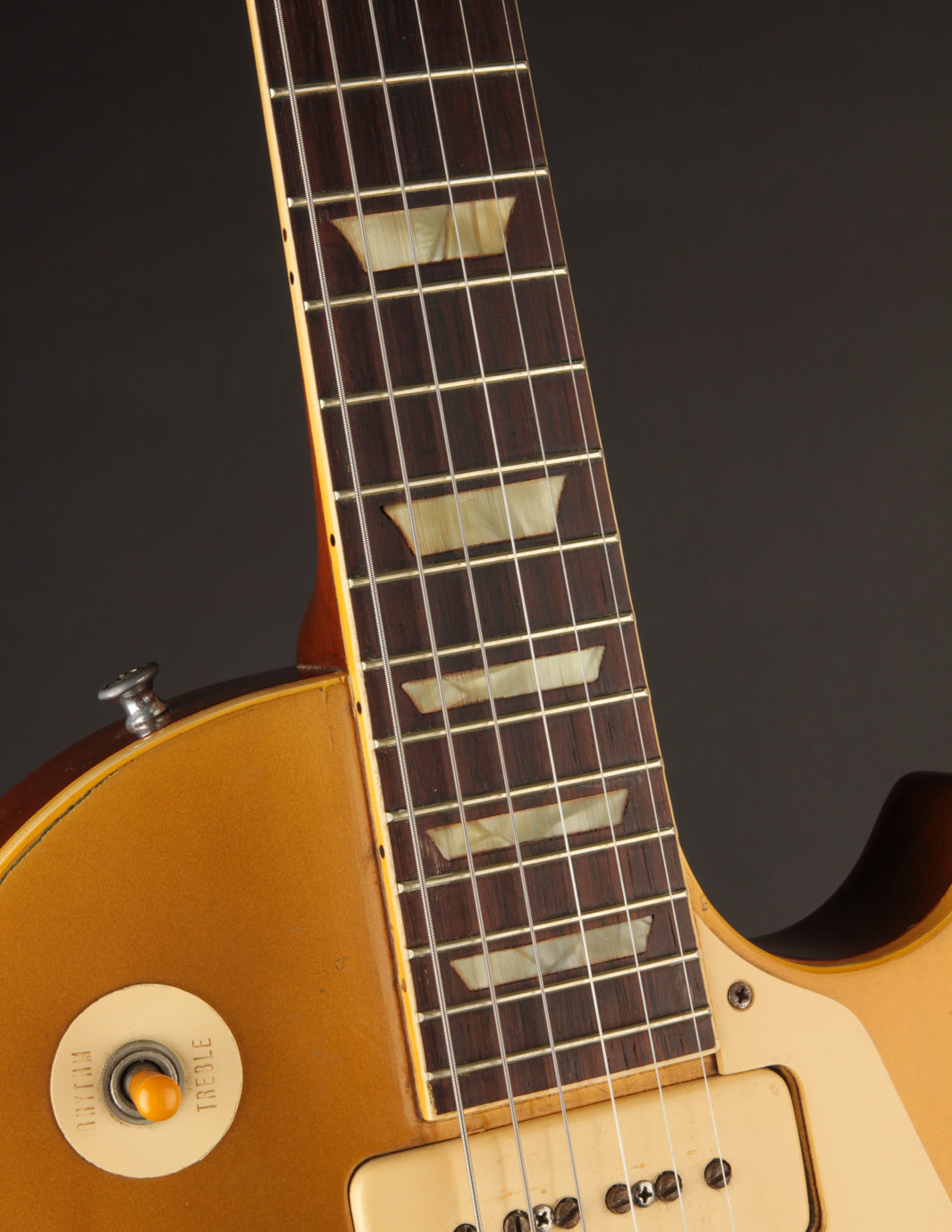 Let's talk about these P90s for a minute. It's quite common for P90s from this period to register in the low to mid 7k range for output, and this LP punches a lot harder due to a higher wind in each respective position. The neck pickup is full sounding with great warmth overall, and yet still remains quite clear. The bridge pickup is ripe with midrange punch and top end sizzle - an absolute monster sounding pickup through a pushed amp or with some overdrive in the mix.