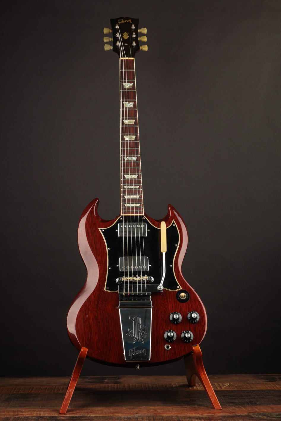 The late 60s SG Standard model remains one of Gibson's most legendary solidbodies, with the likes of Angus Young perhaps being its most notable endorser. The larger pickguard and long vibrola gave it a distinctive look as a bookend to a successful decade with the slim-bodied rock machine.