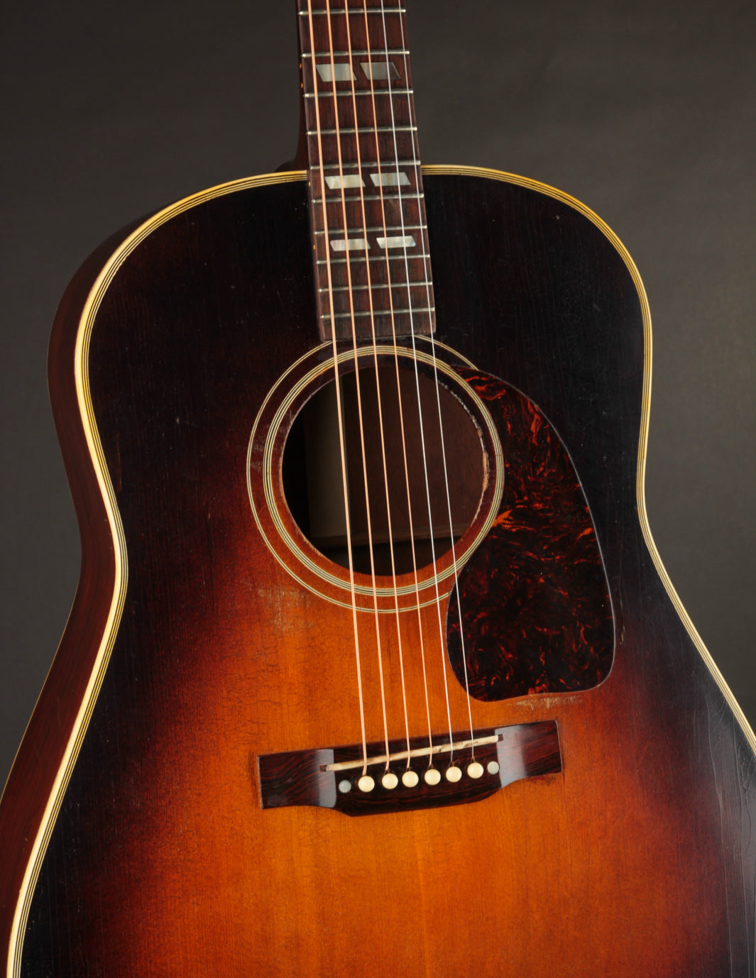 As far as player-grade Gibson Southern Jumbos go, this '46 is about as good as it gets. Fat neck? Yes. Great sound? Check. Good setup & playability, with no need for work to get it where it needs to be? Roger that. There are a couple small issues, sure, but they're basically invisible to anyone looking at the front of the guitar; and those same people likely wouldn't care a lick once they hear the textbook sound pumping out of this guitar. Plenty of low end, with the woody balance and high-midrange chime that characterizes a good Gibson in spades. Several TME staffers are currently conspiring to own this guitar, so you may need to beat us to the punch if you're interested.