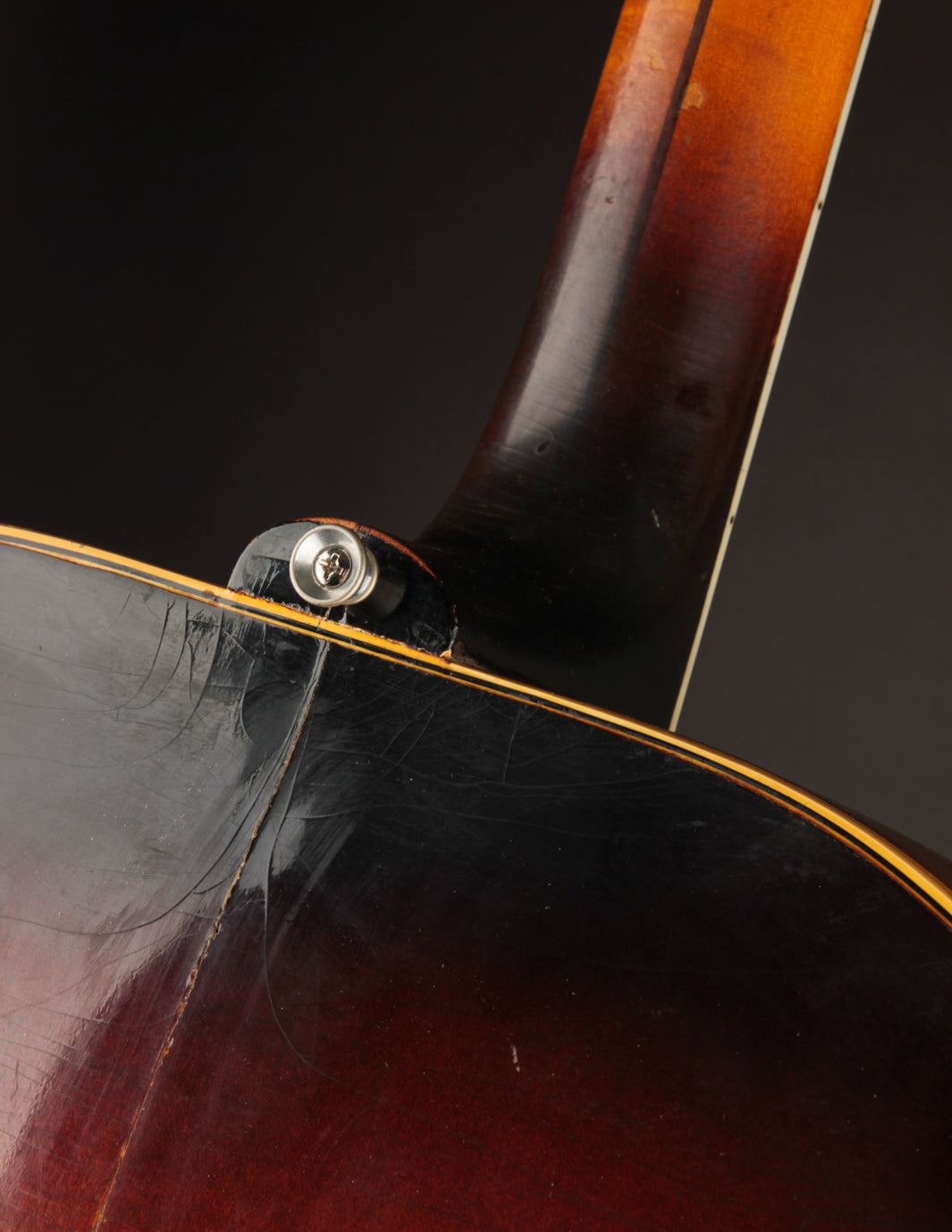We installed some Gotoh vintage style tuners for a more appropriate look (it had been outfitted with Grovers once before) and cleaned up some minor binding repair. The guitar is set up very well with comfortable action and full round C neck profile that is nicely worn in.