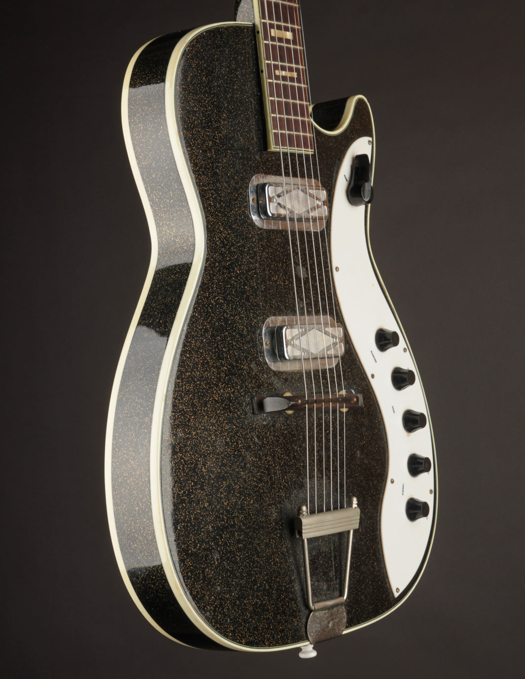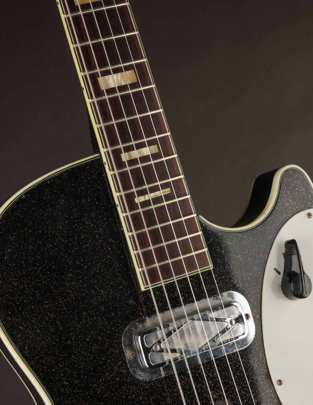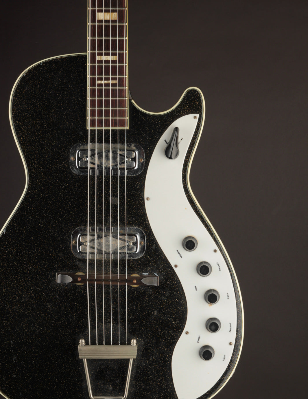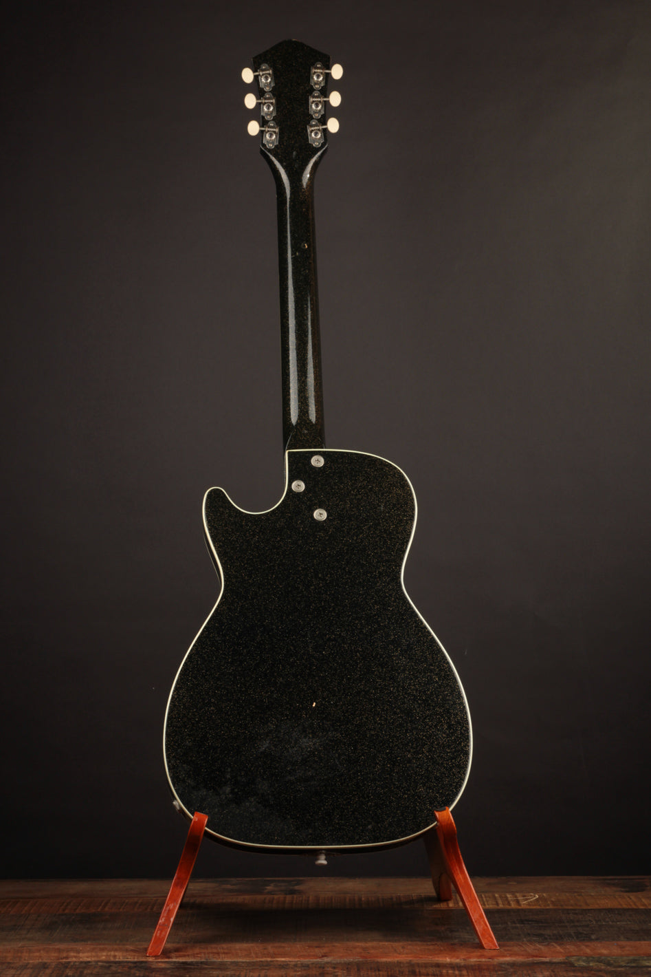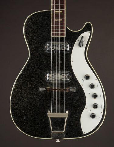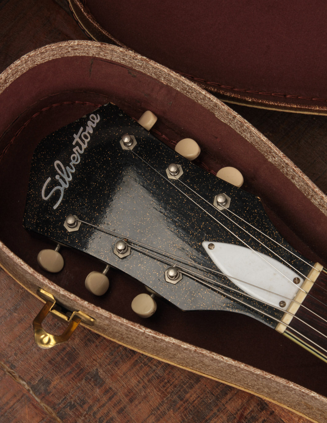 In our humble opinion, these Jupiter models are some of the very best electrics that Harmony/Silvertone ever put out. The classic Black Sparkle finish, bound body and neck, and large block fingerboard inlays paired with some truly incredible sounding original Dearmond Gold Foil pickups - it's just the ultimate mid-century catalog guitar.