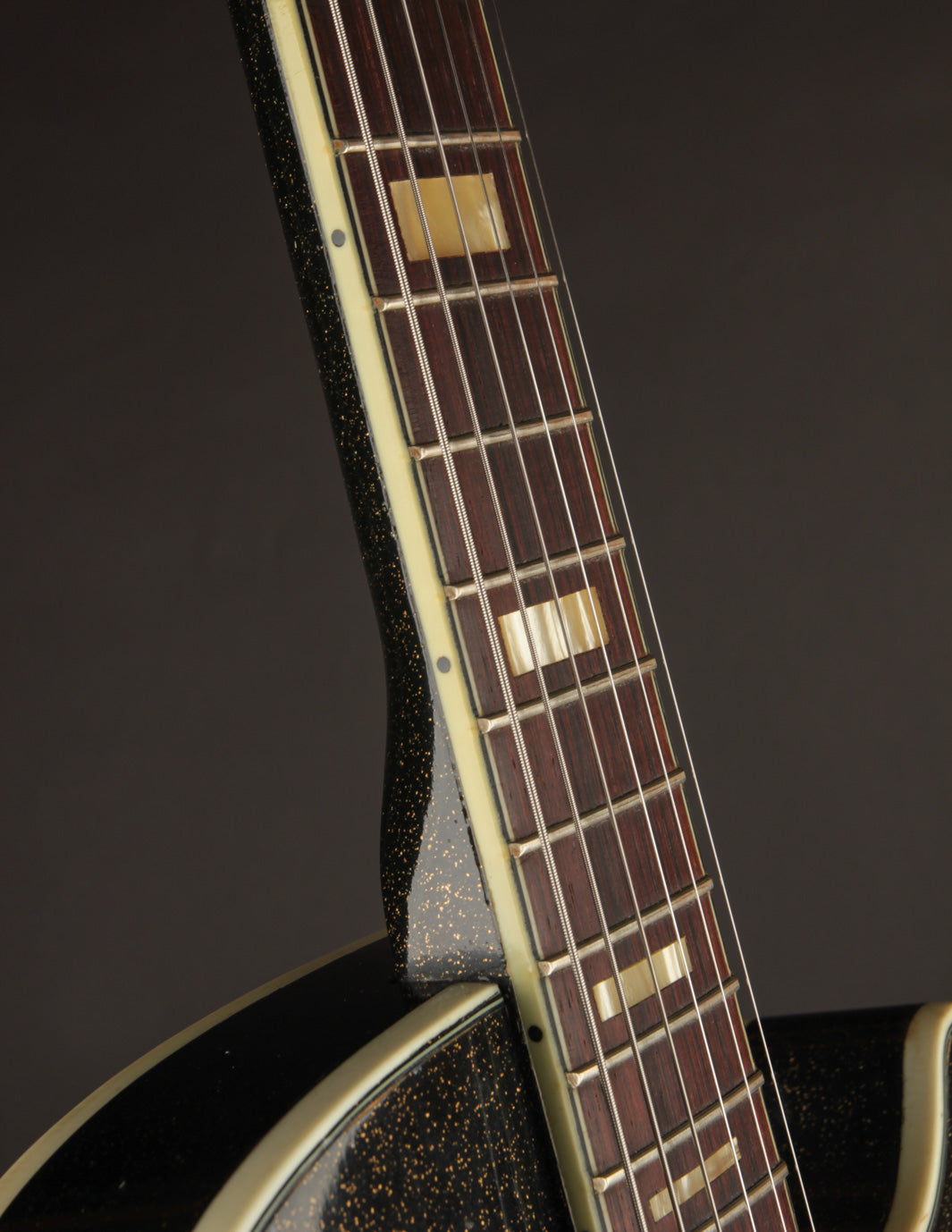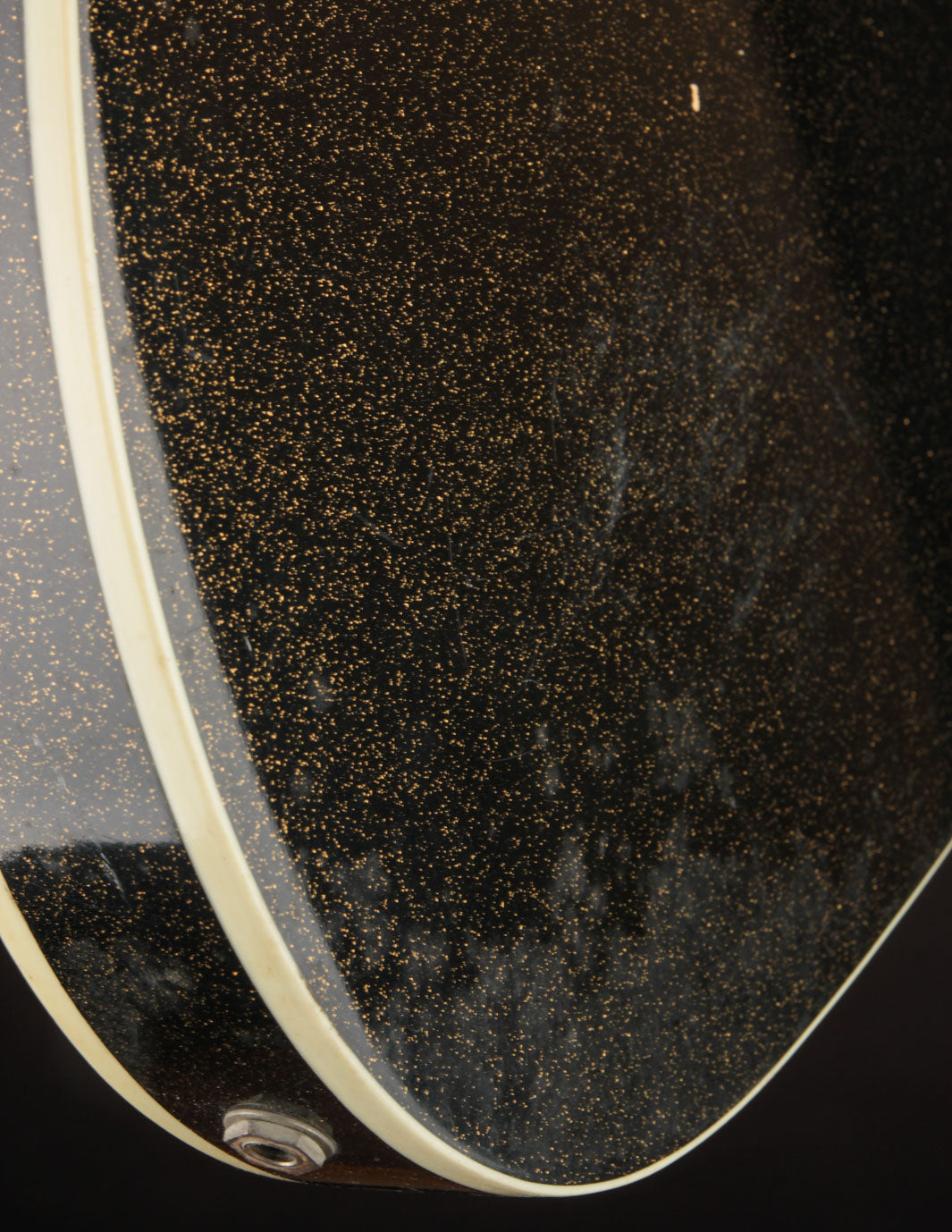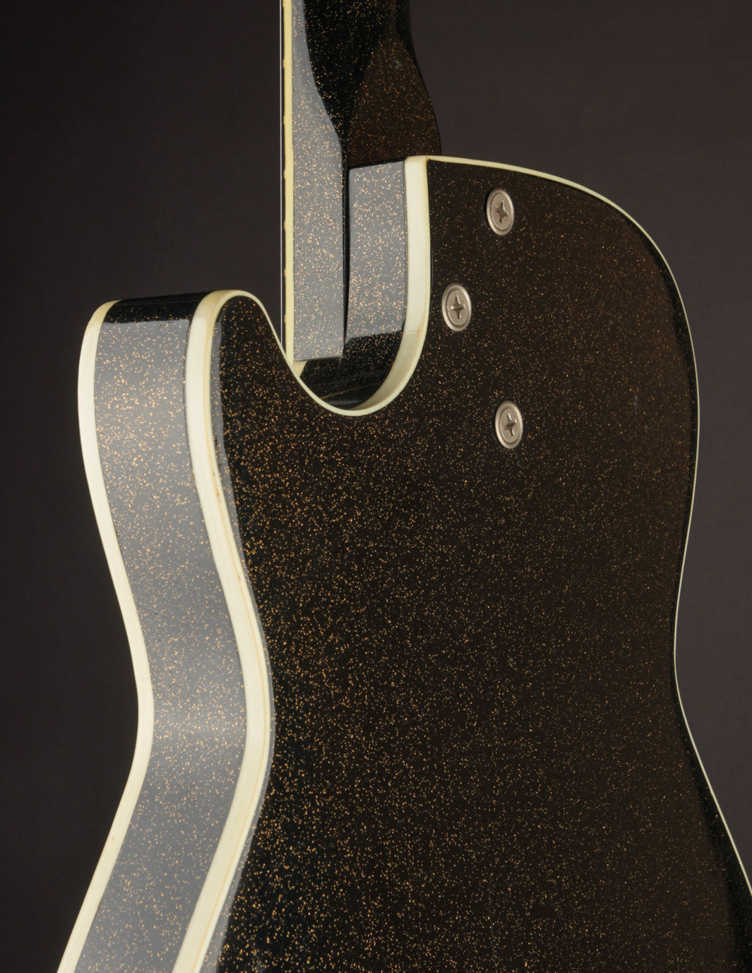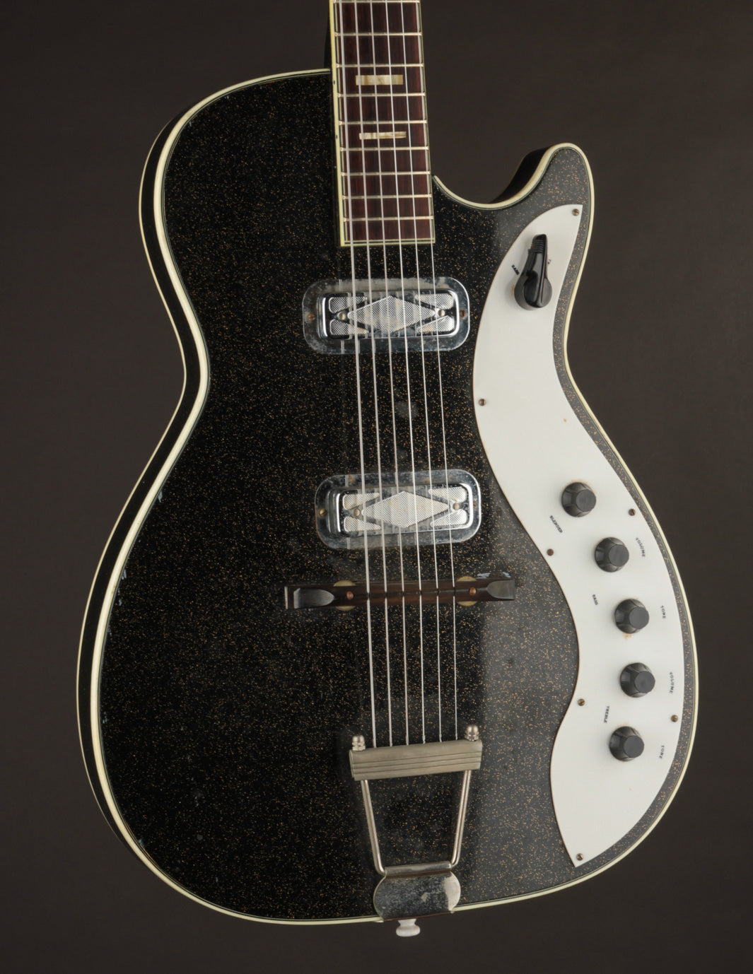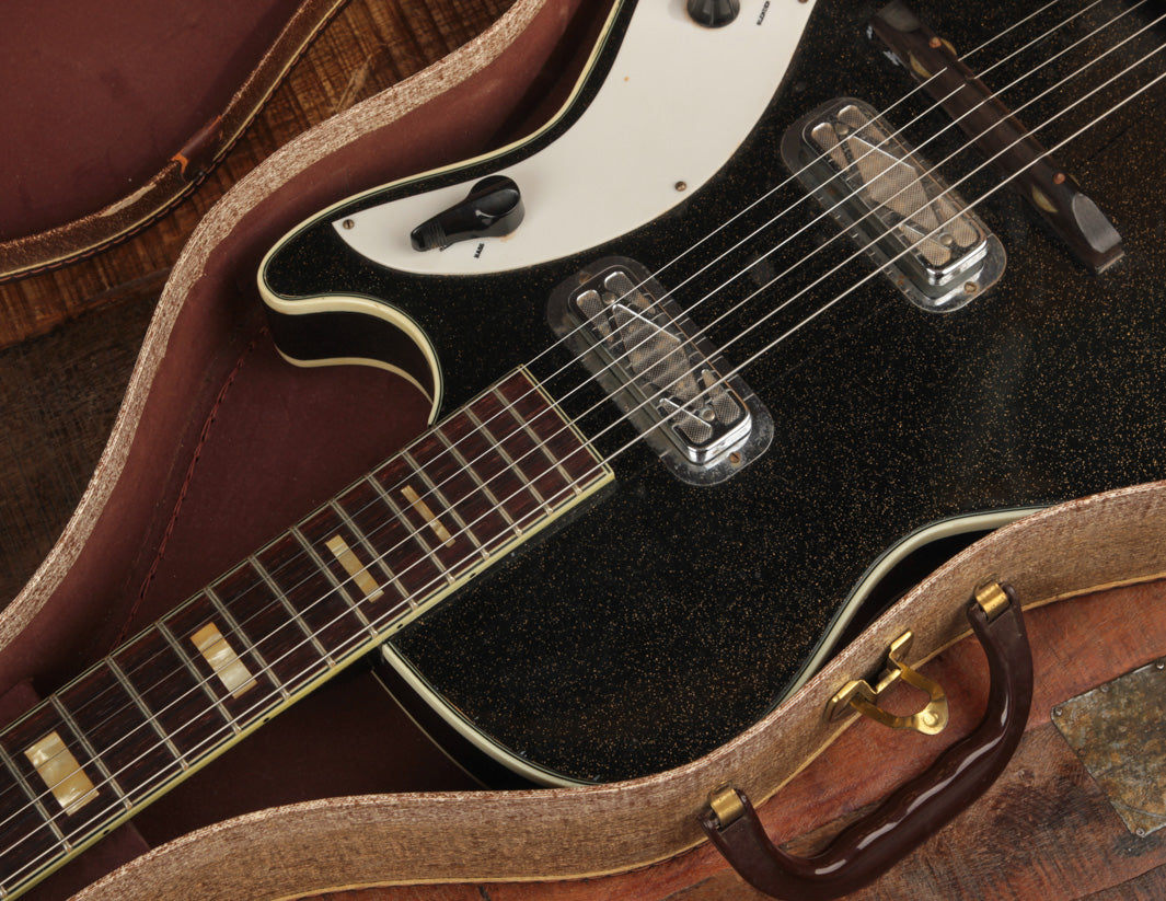 In our humble opinion, these Jupiter models are some of the very best electrics that Harmony/Silvertone ever put out. The classic Black Sparkle finish, bound body and neck, and large block fingerboard inlays paired with some truly incredible sounding original Dearmond Gold Foil pickups - it's just the ultimate mid-century catalog guitar.