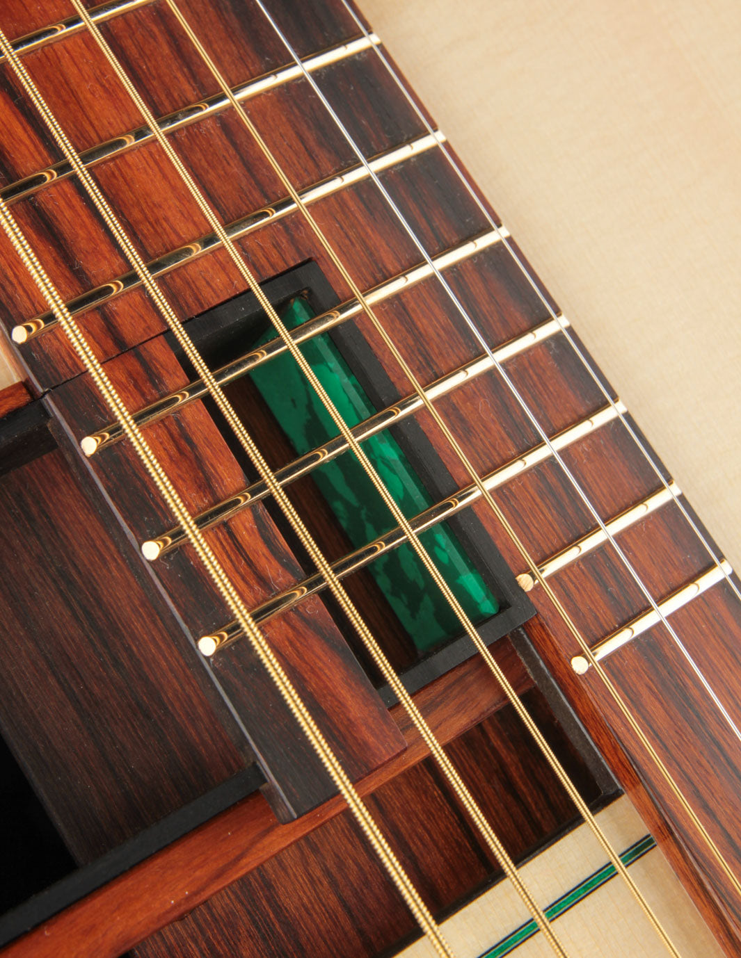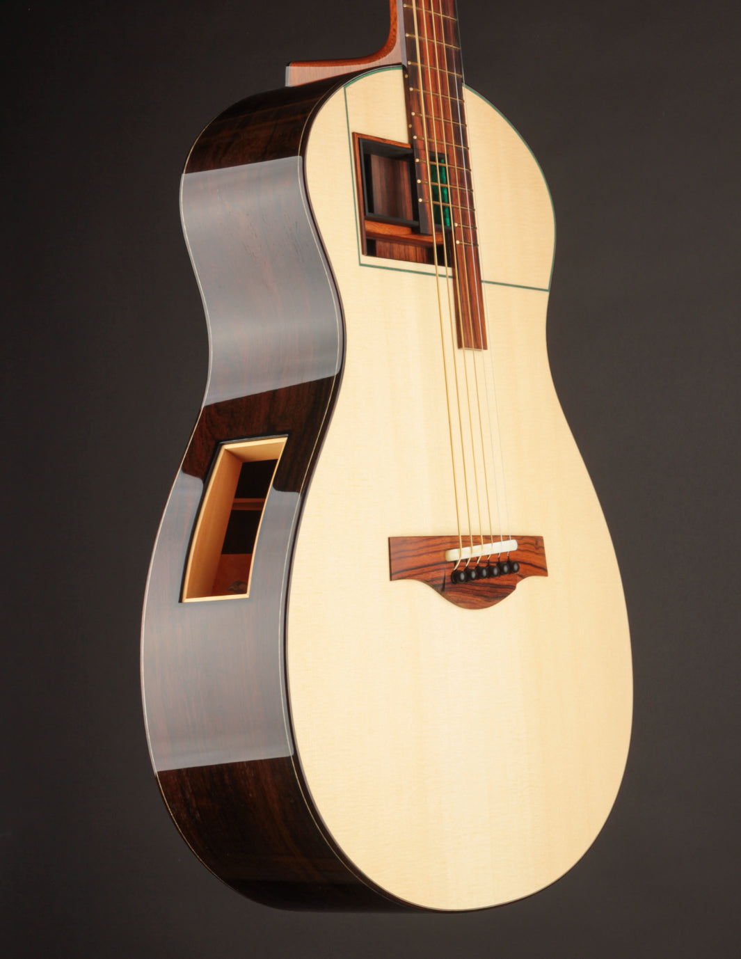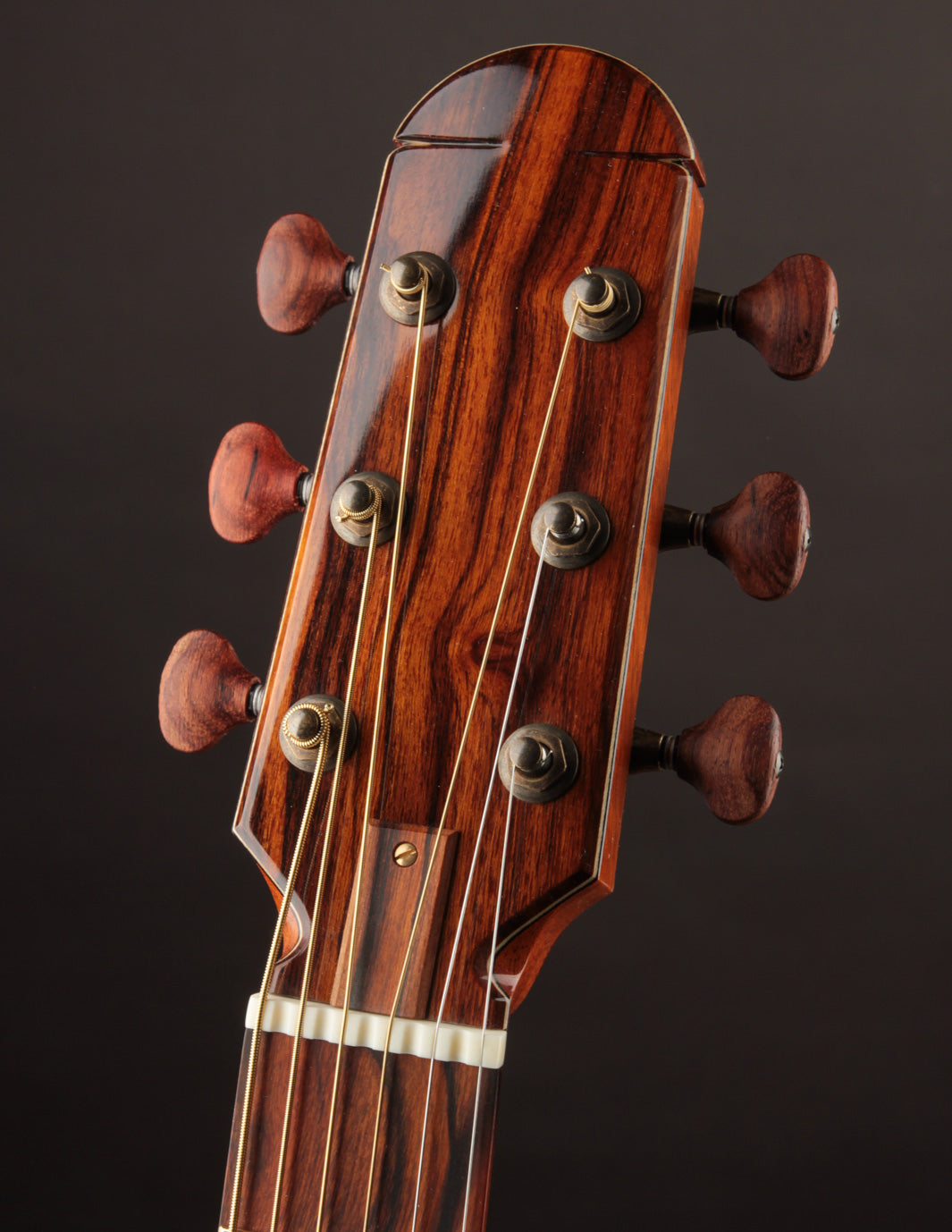 Demand for Ray's guitars surged in the years between then and now. And if anyone deserves the cliched accolades we've read in a hundred laudatory online write-ups, it's Ray. His ethos is now simplified: he builds what inspires him and offers completed instruments for sale. All guitars are priced the same way regardless of tonewoods or design. And if we're allowed a moment of indulgence ~ that model makes sense. These instruments are not about specs, they're about the excitement that comes along with the discovery of something new. These are guitars for the player who wants the work of a master--someone who's as skilled a visual artist as he is an instrument voicer.