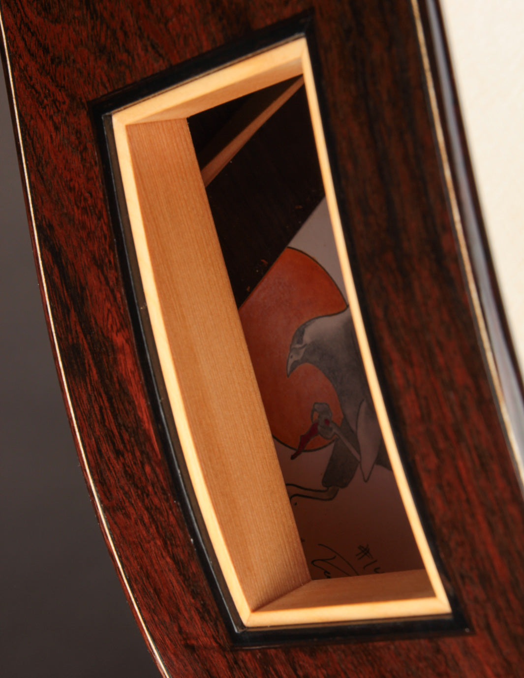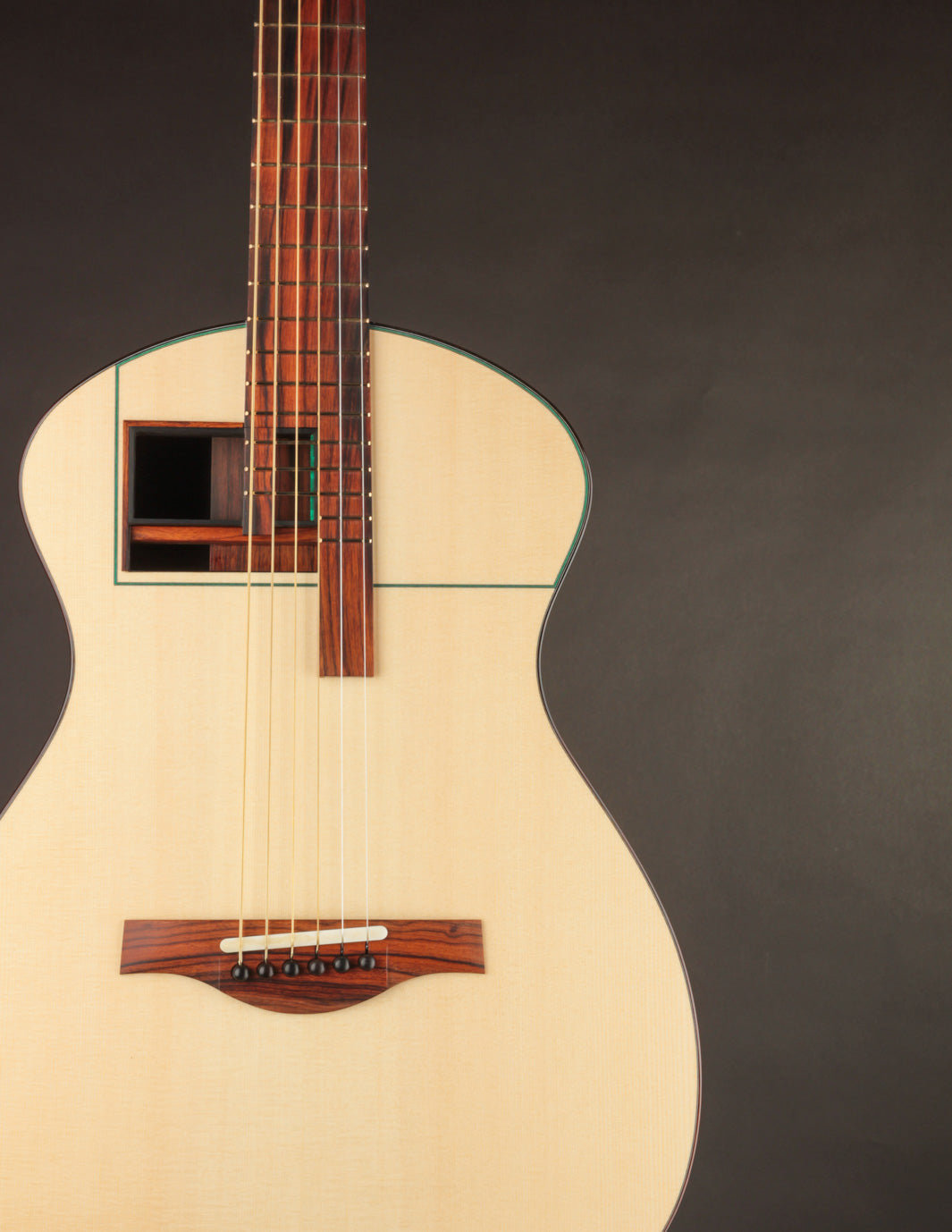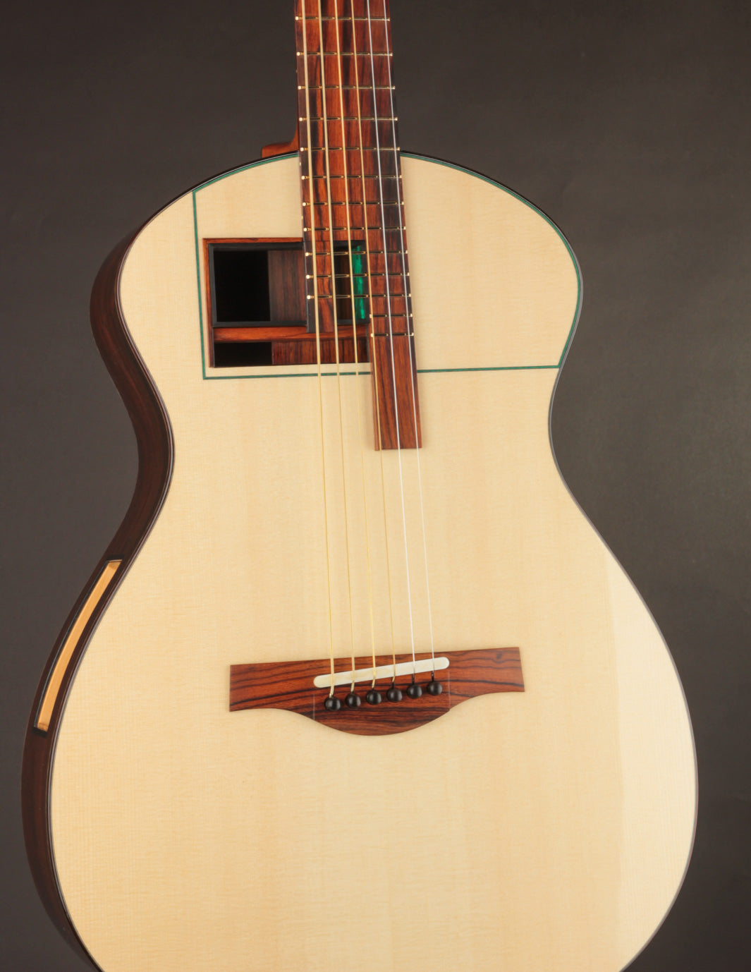 Demand for Ray's guitars surged in the years between then and now. And if anyone deserves the cliched accolades we've read in a hundred laudatory online write-ups, it's Ray. His ethos is now simplified: he builds what inspires him and offers completed instruments for sale. All guitars are priced the same way regardless of tonewoods or design. And if we're allowed a moment of indulgence ~ that model makes sense. These instruments are not about specs, they're about the excitement that comes along with the discovery of something new. These are guitars for the player who wants the work of a master--someone who's as skilled a visual artist as he is an instrument voicer.